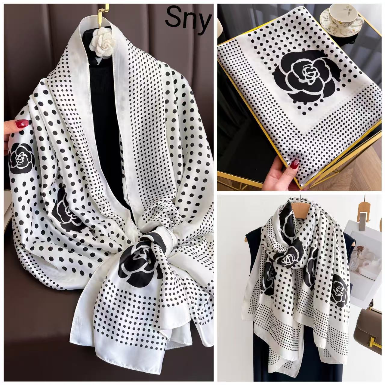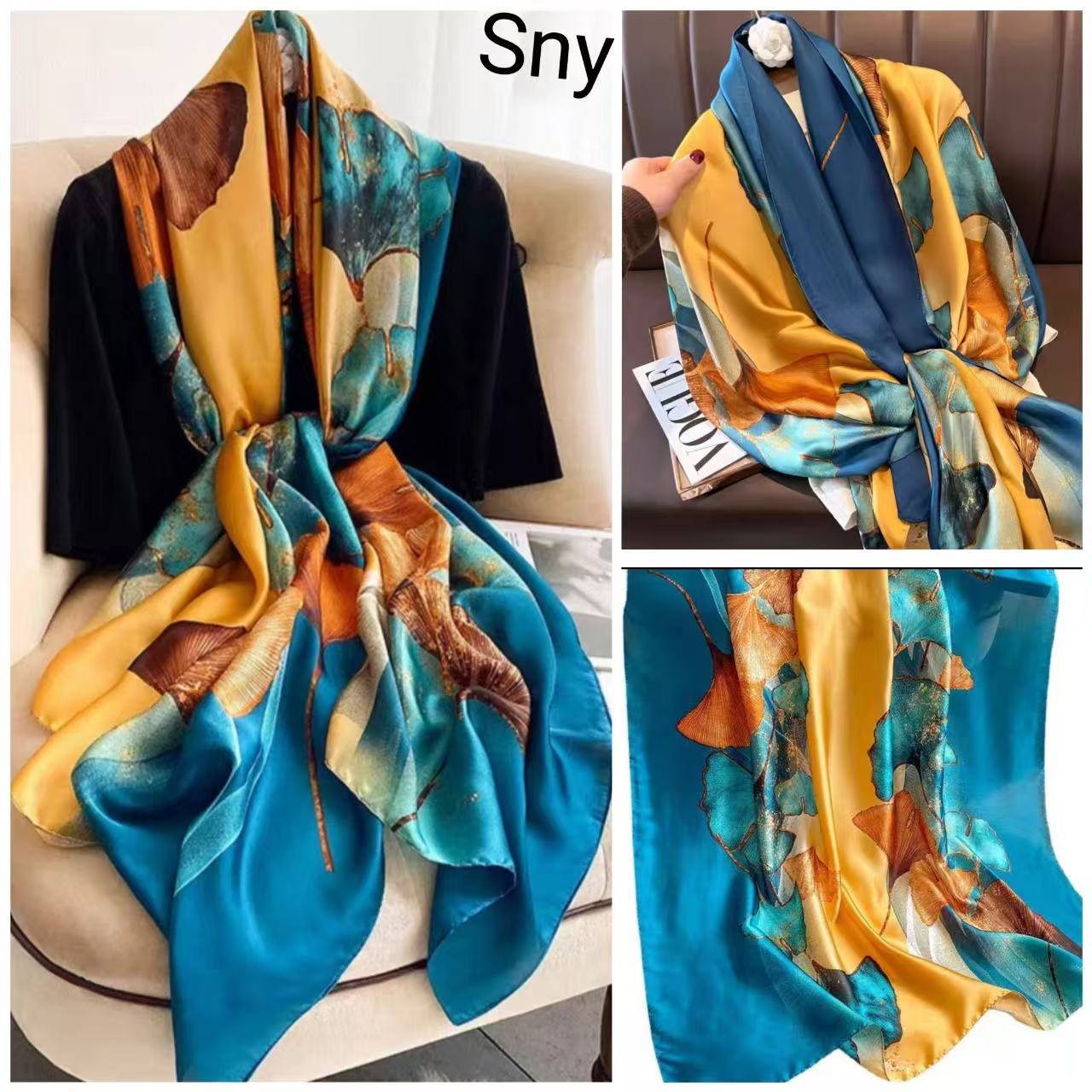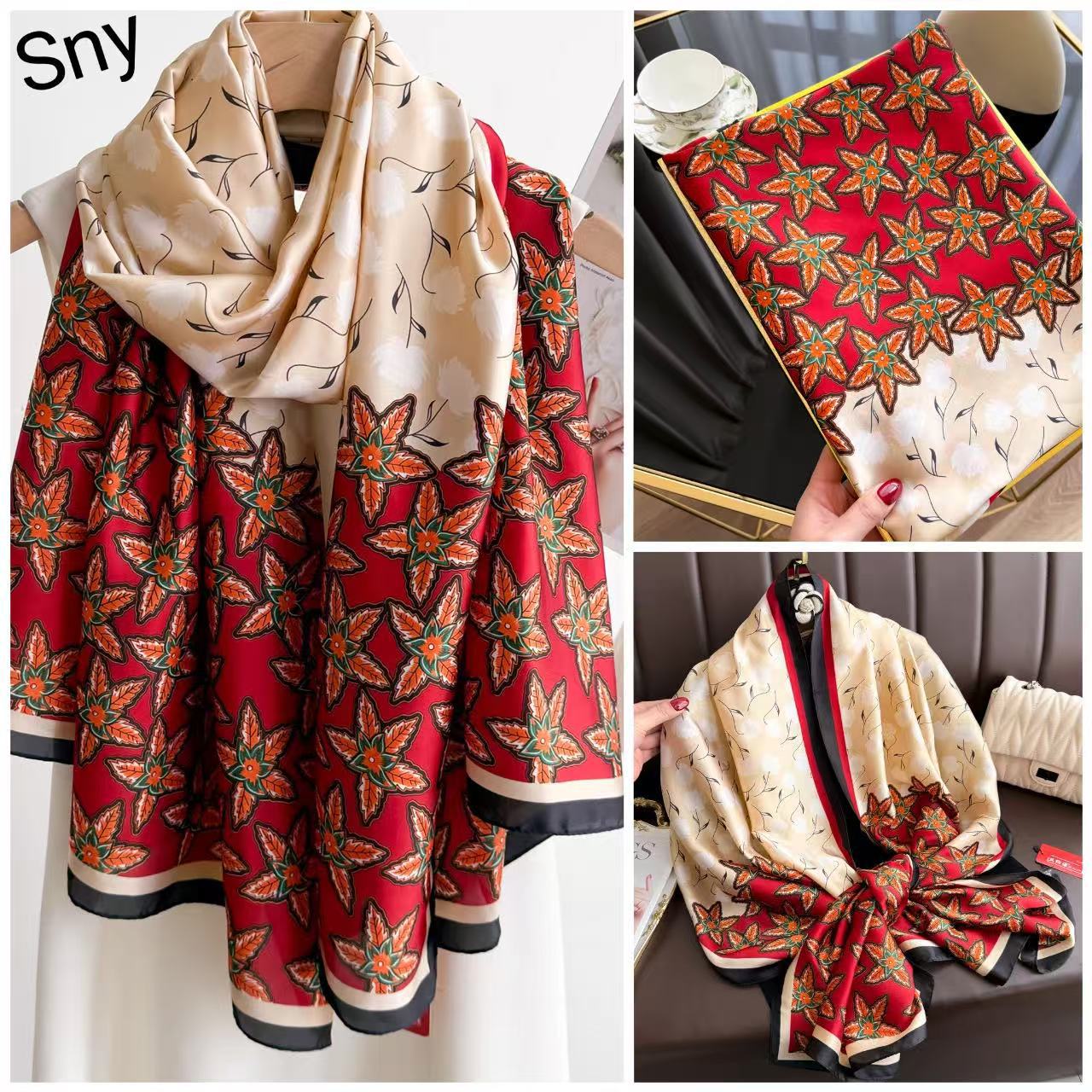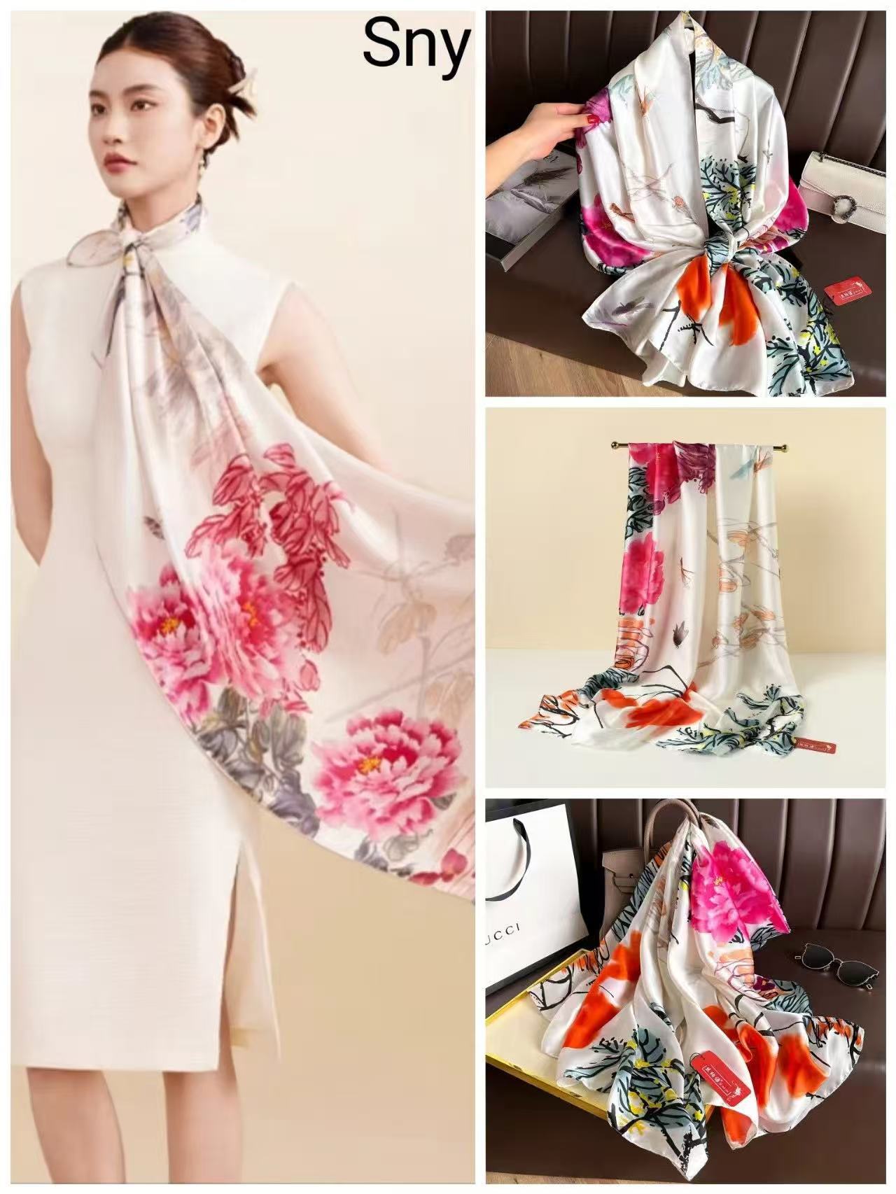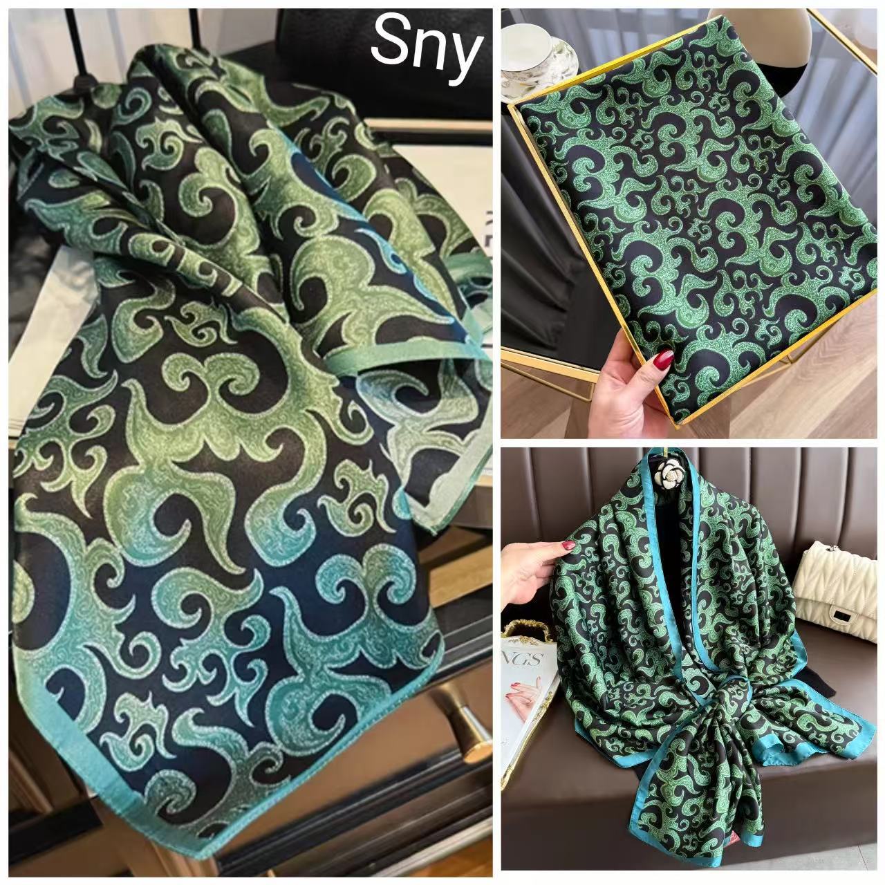 새로운 시뮬레이션 실크 스카프, 브로케이드 롱 스카프, 봄과 가을 패션, 다재다능한 여름 자외선 차단 숄, 터번