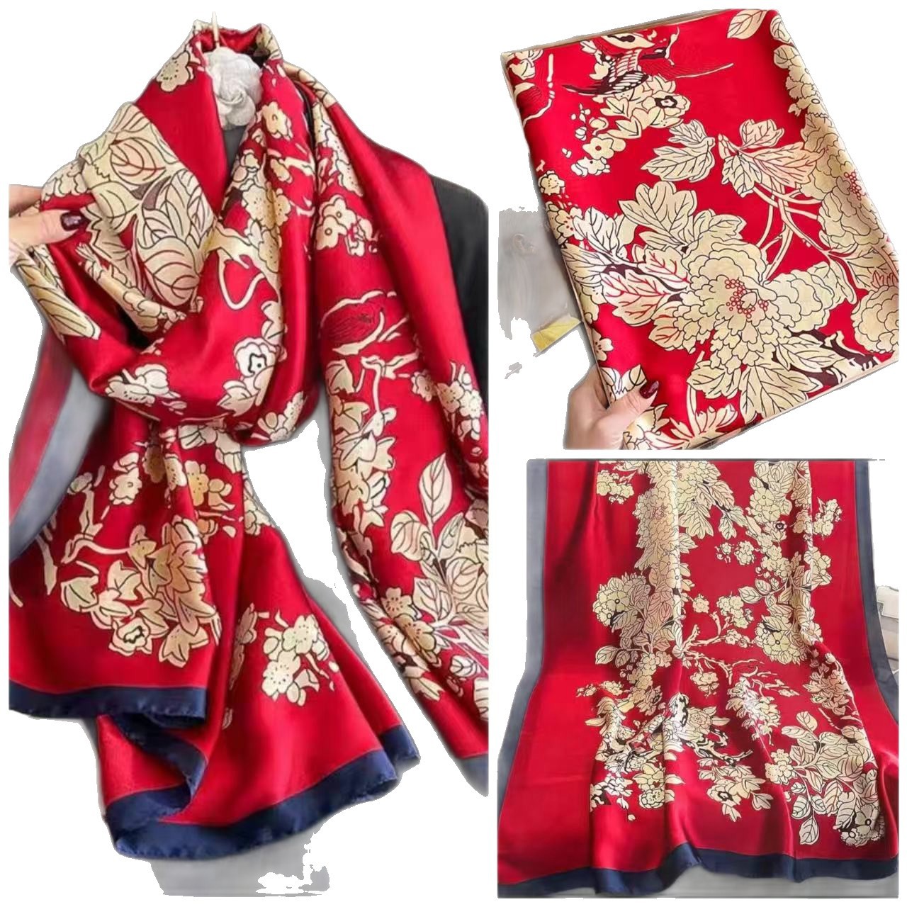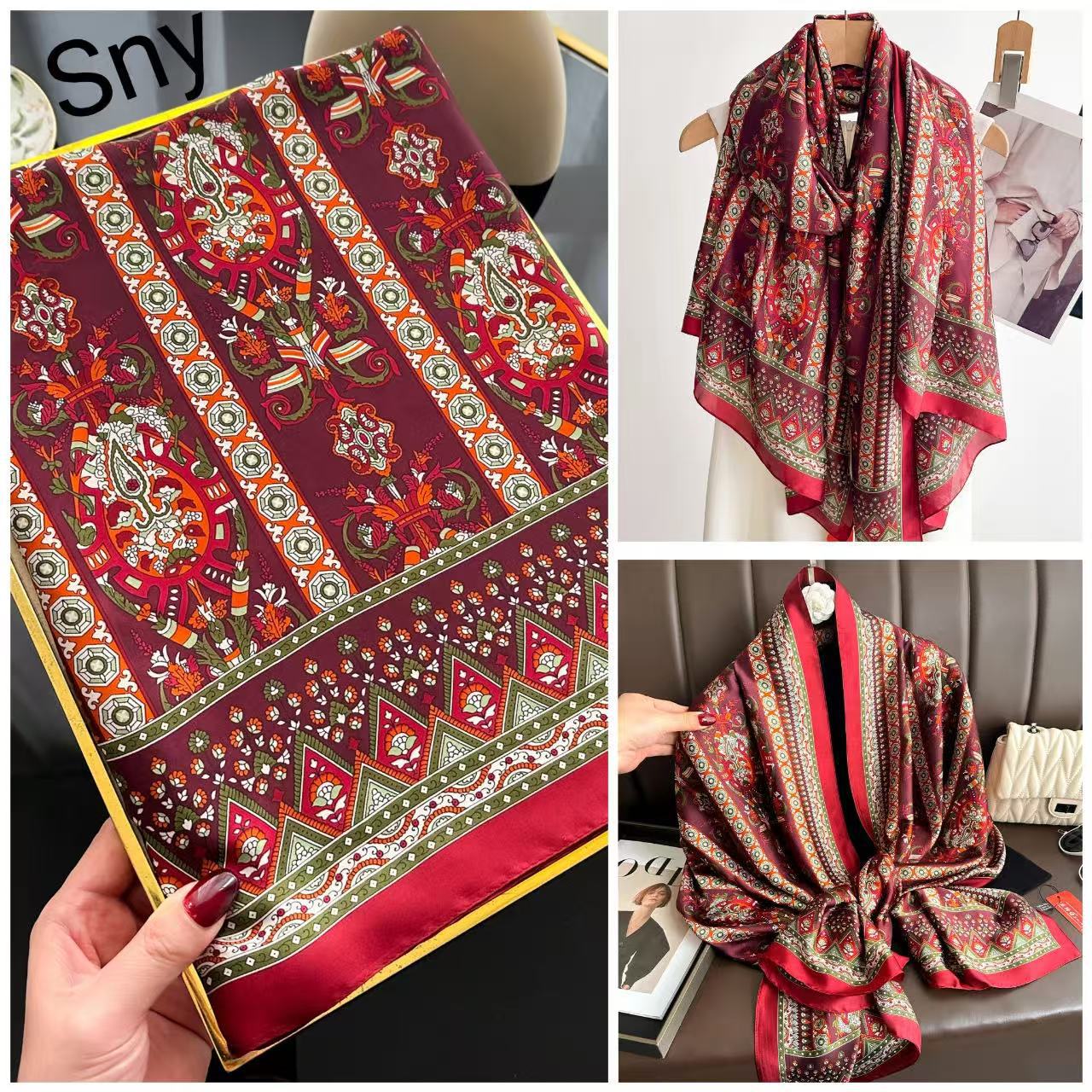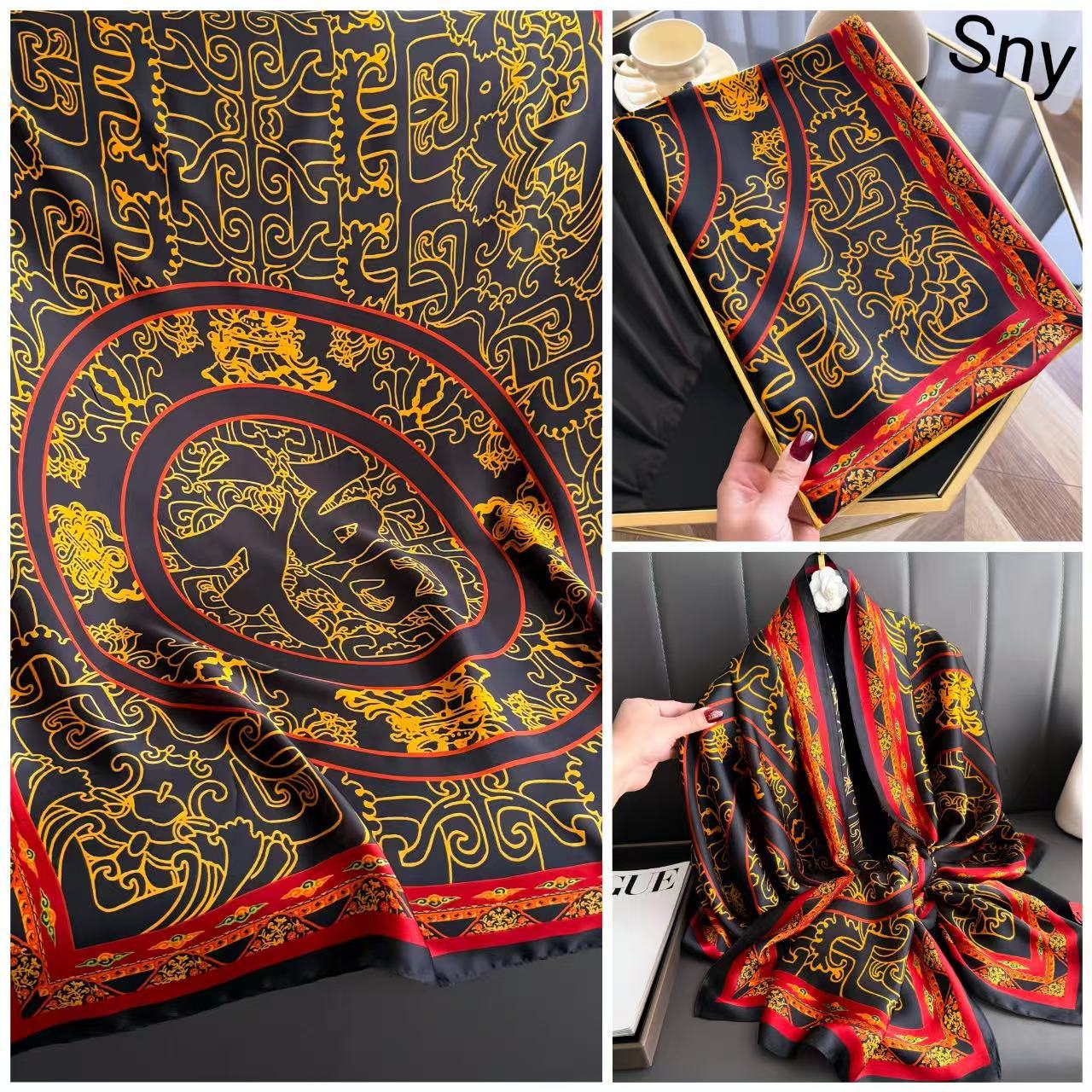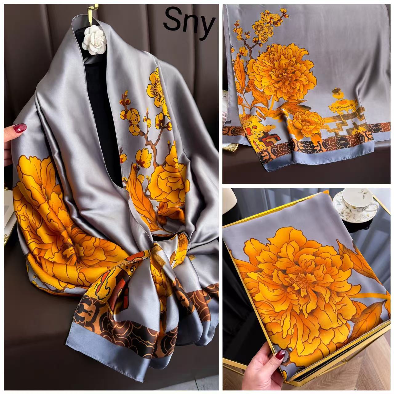 새로운 시뮬레이션 실크 스카프, 브로케이드 롱 스카프, 봄과 가을 패션, 다재다능한 여름 자외선 차단 숄, 터번