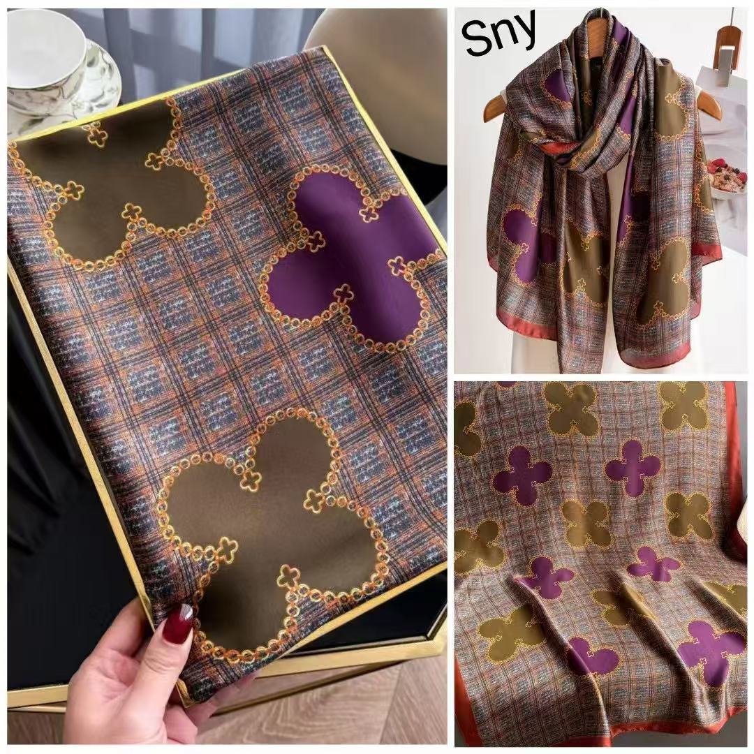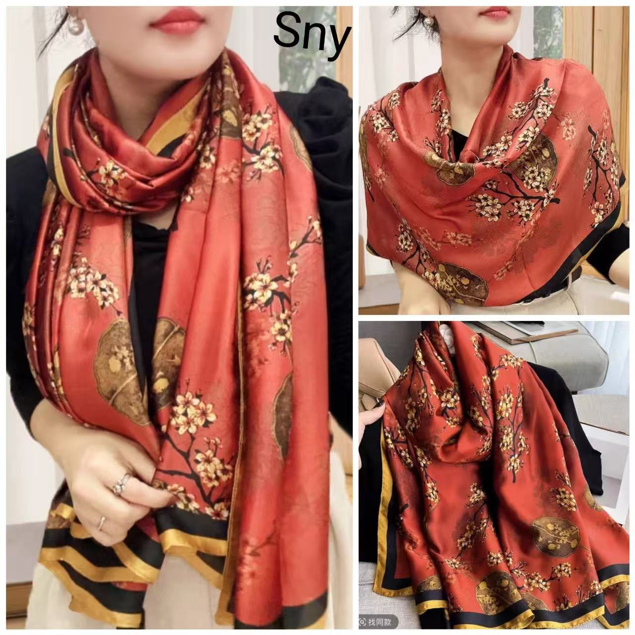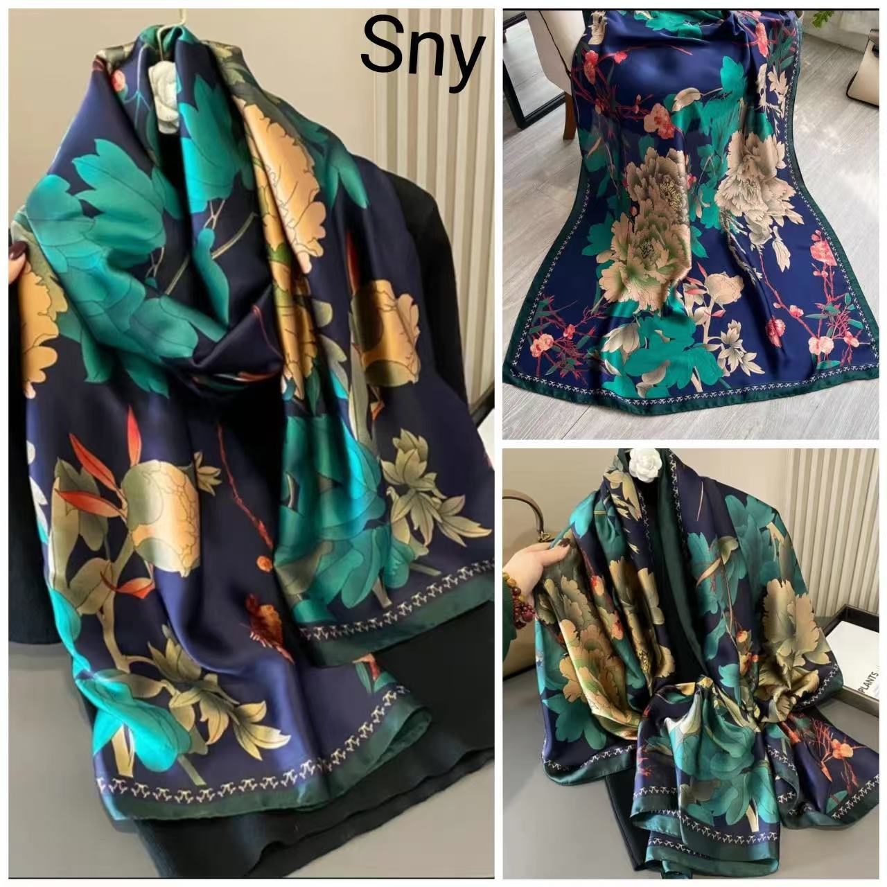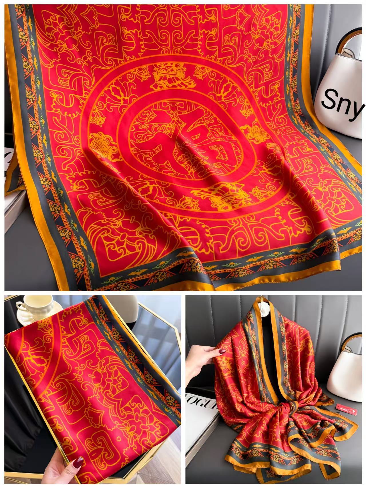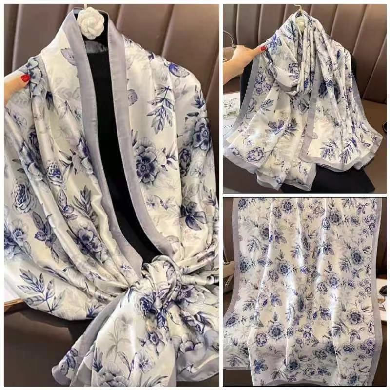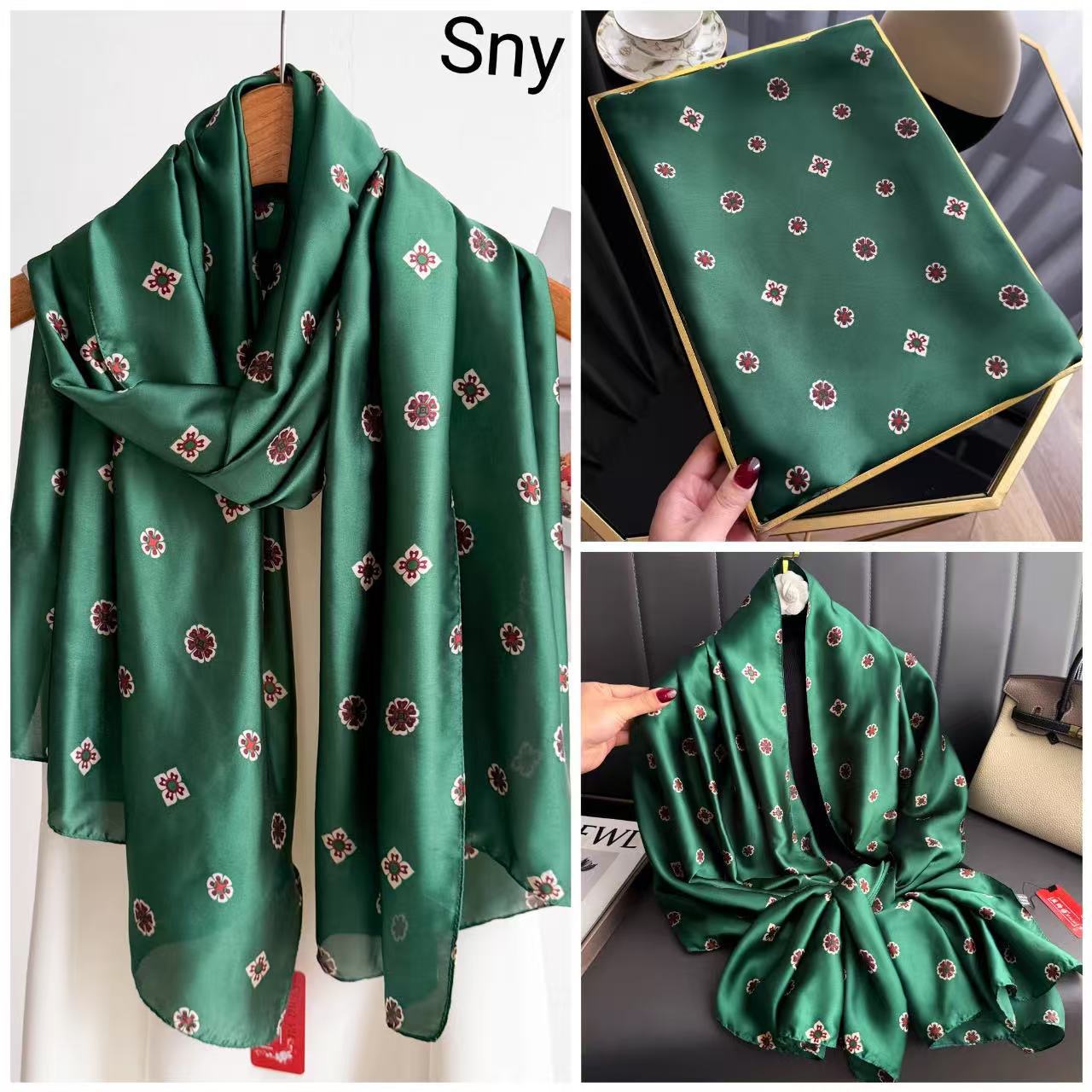 새로운 시뮬레이션 실크 스카프, 브로케이드 롱 스카프, 봄과 가을 패션, 다재다능한 여름 자외선 차단 숄, 터번