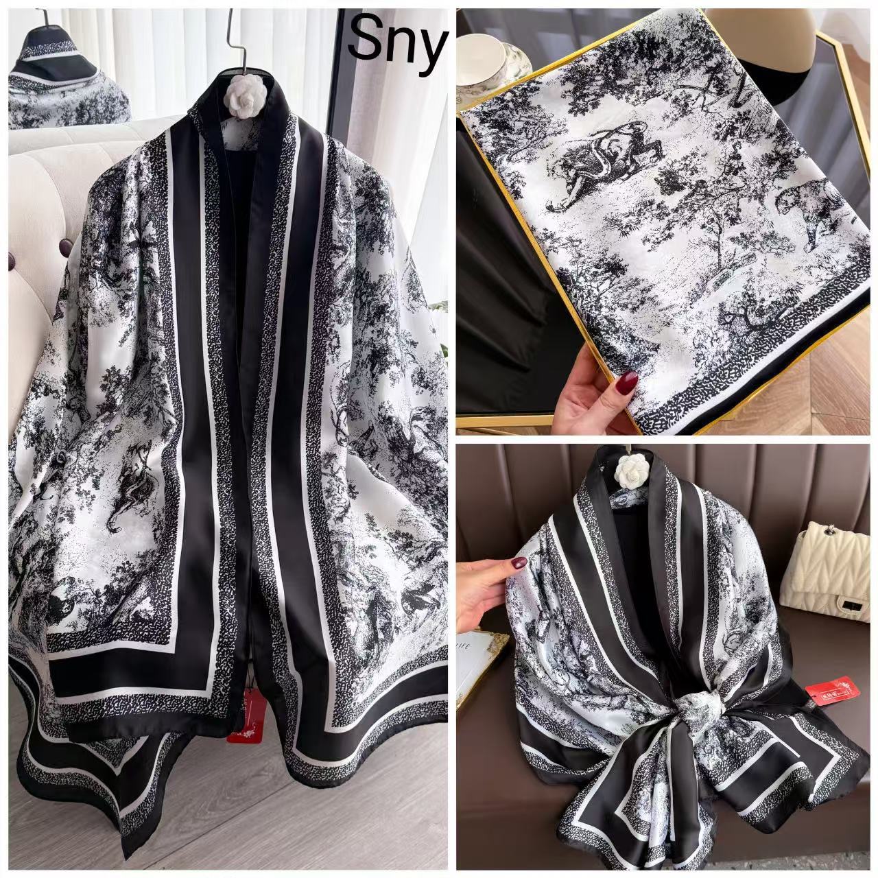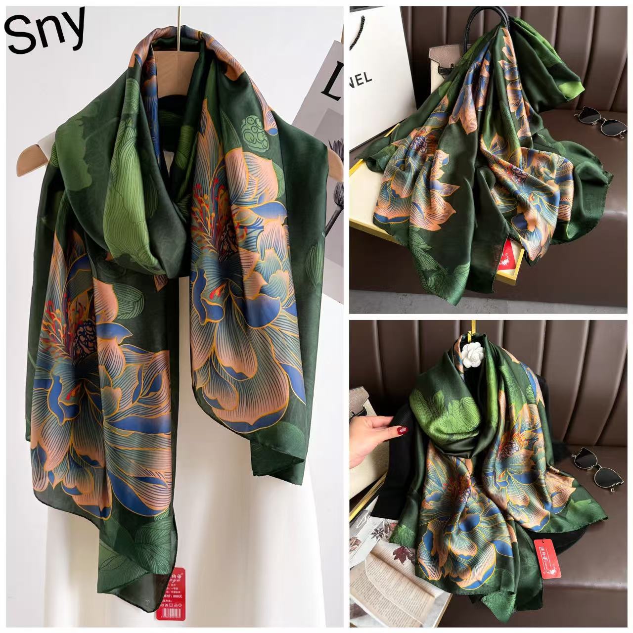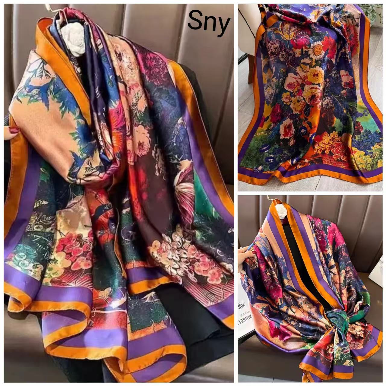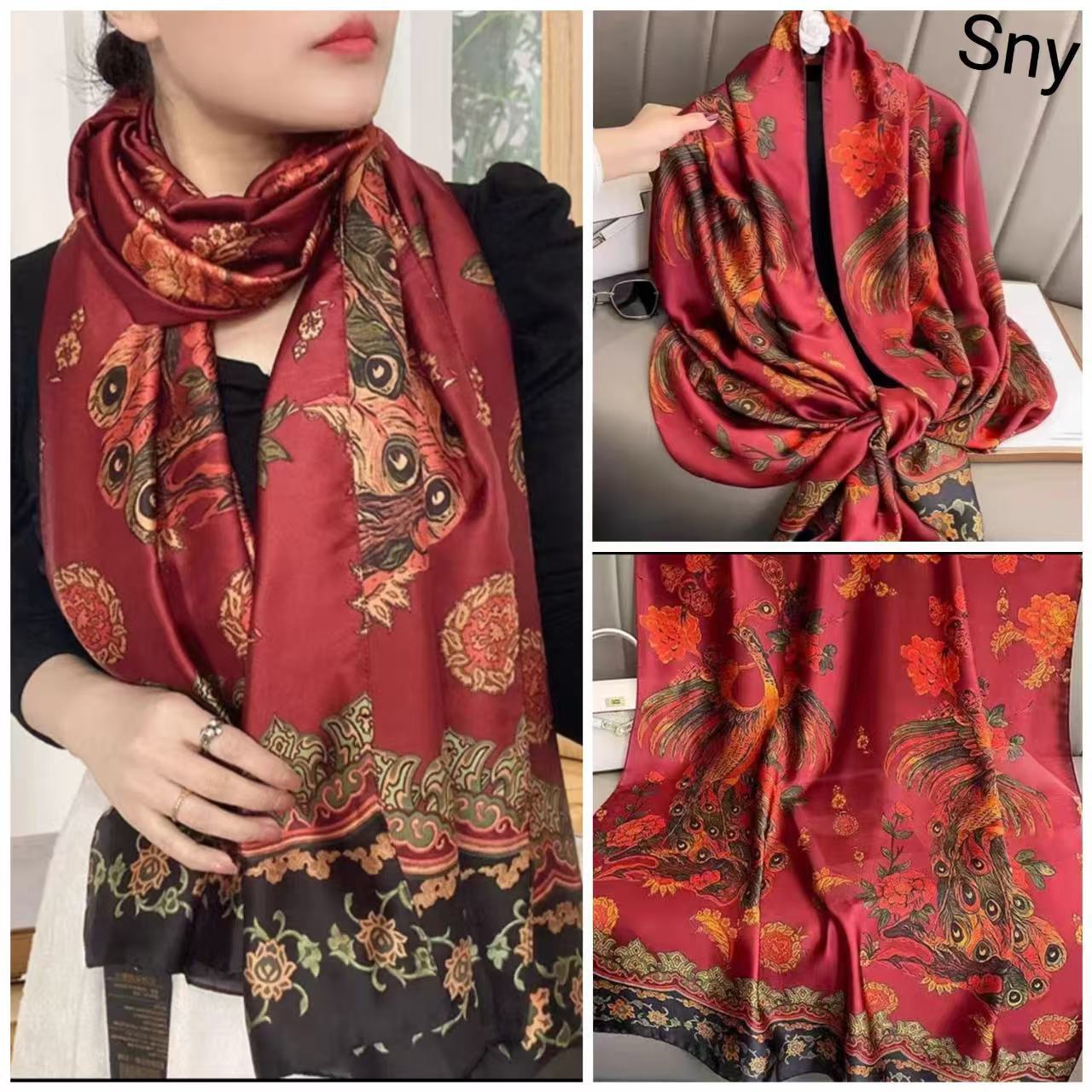 새로운 시뮬레이션 실크 스카프, 브로케이드 롱 스카프, 봄과 가을 패션, 다재다능한 여름 자외선 차단 숄, 터번