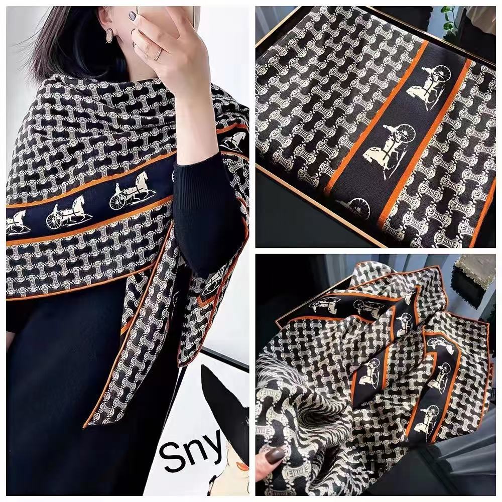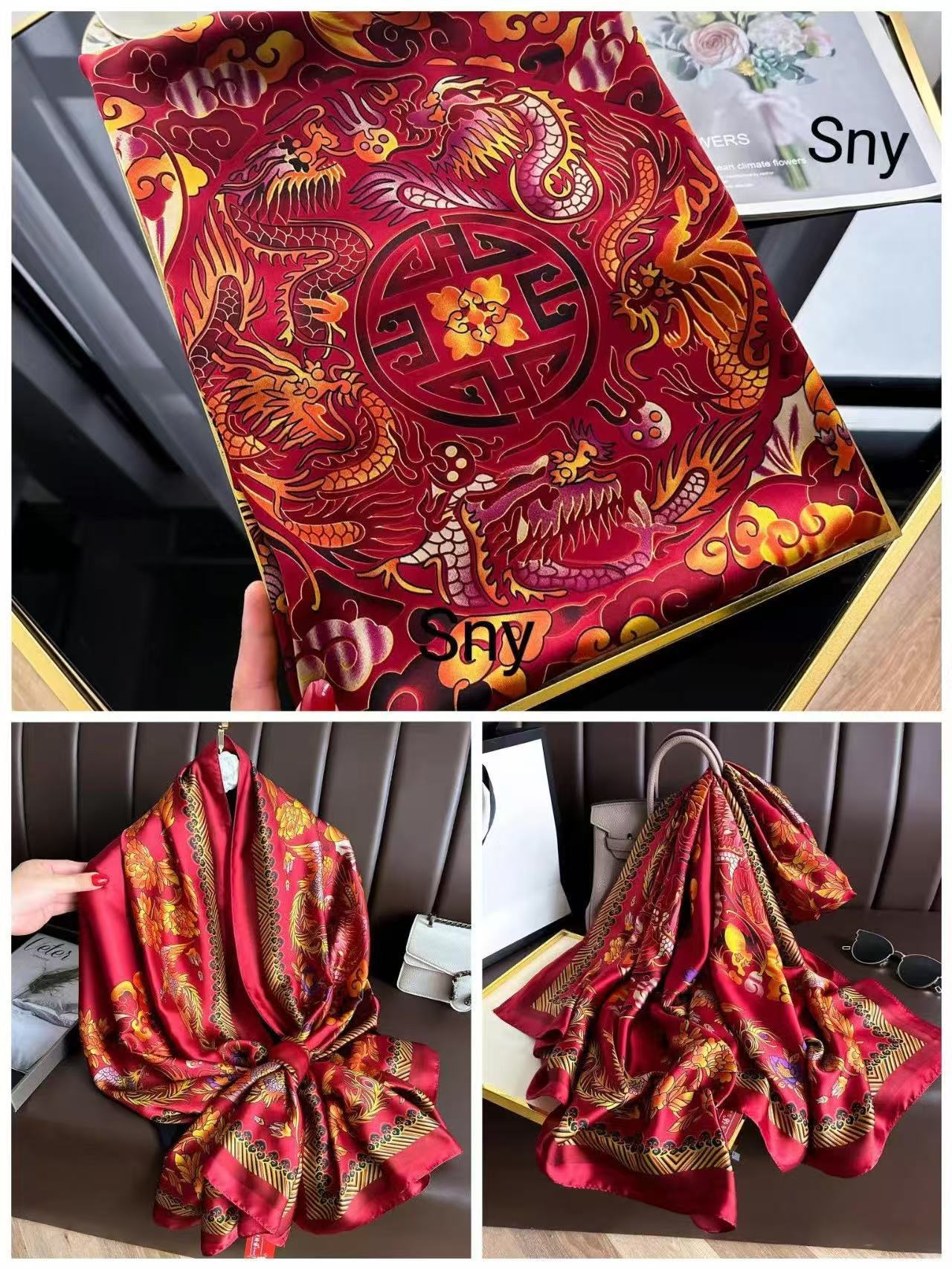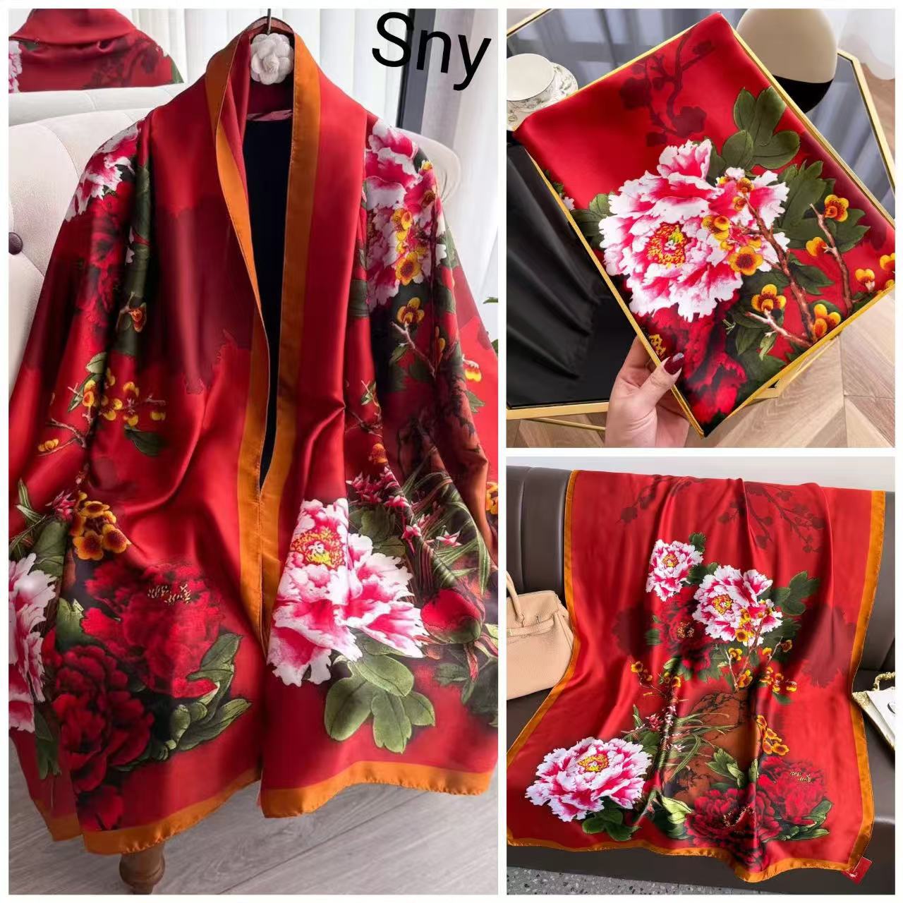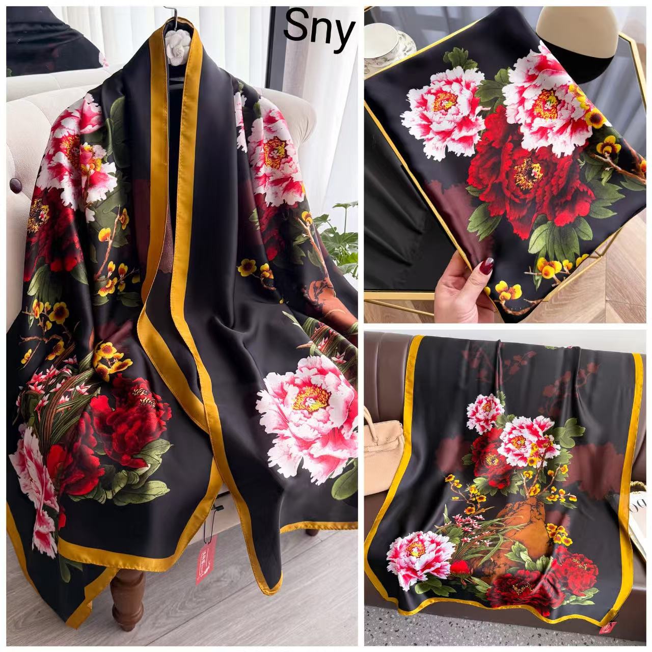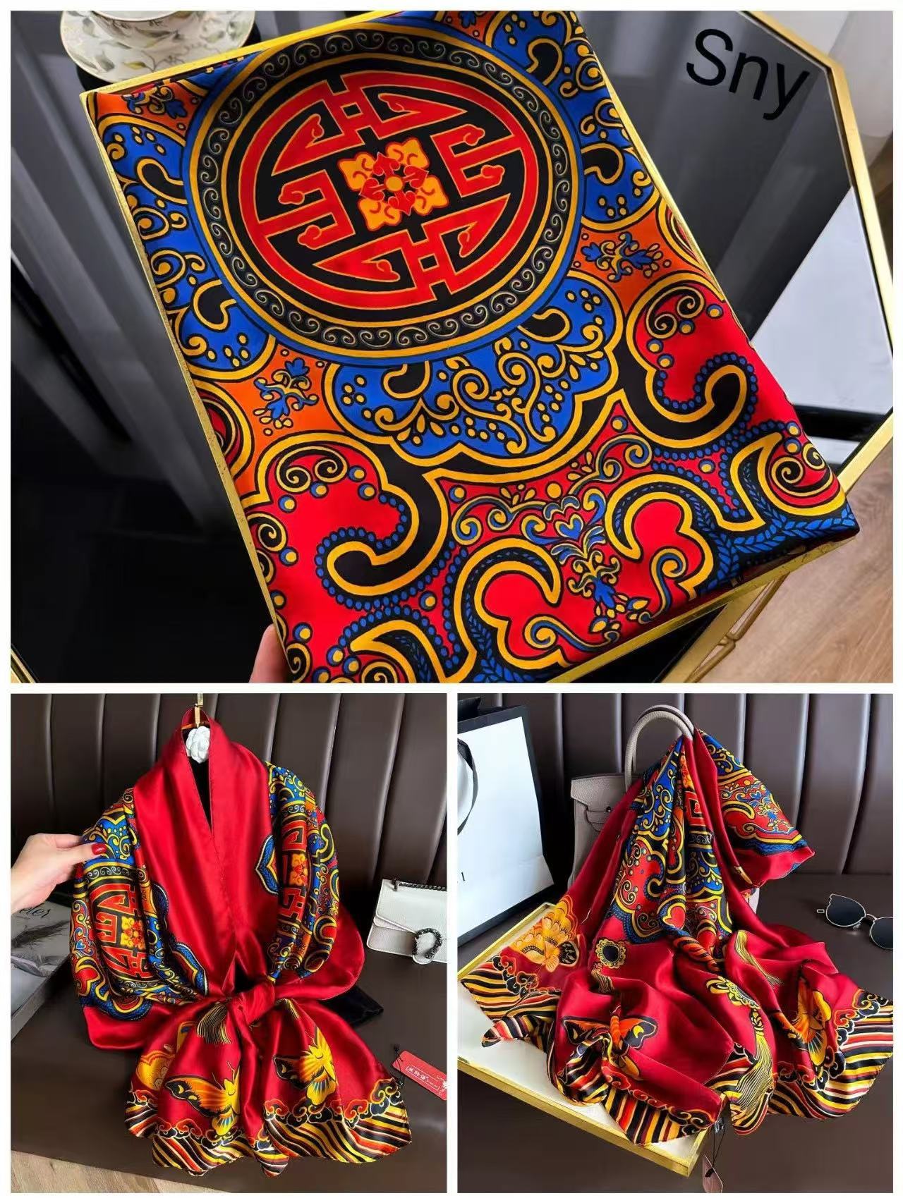 새로운 시뮬레이션 실크 스카프, 브로케이드 롱 스카프, 봄과 가을 패션, 다재다능한 여름 자외선 차단 숄, 터번