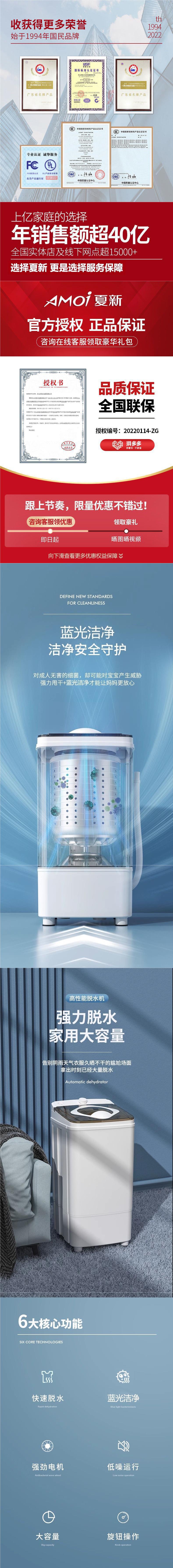 아모이 8.5kg 탈수기 [레드 - 항균 블루라이트 스틸통]