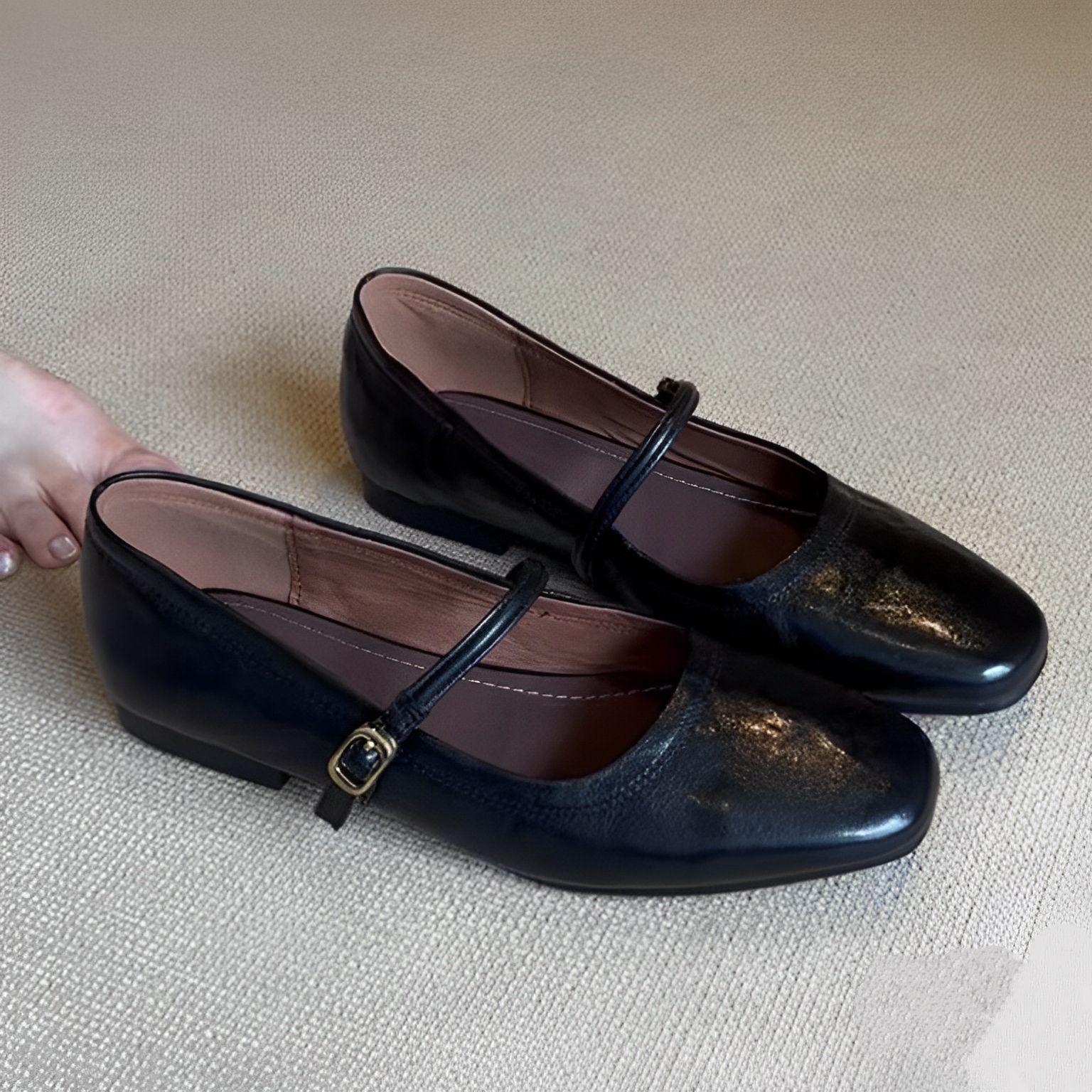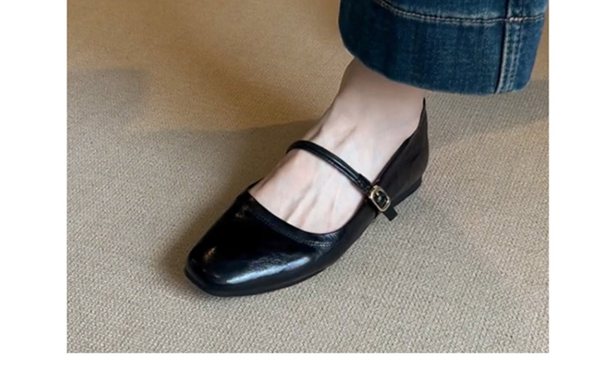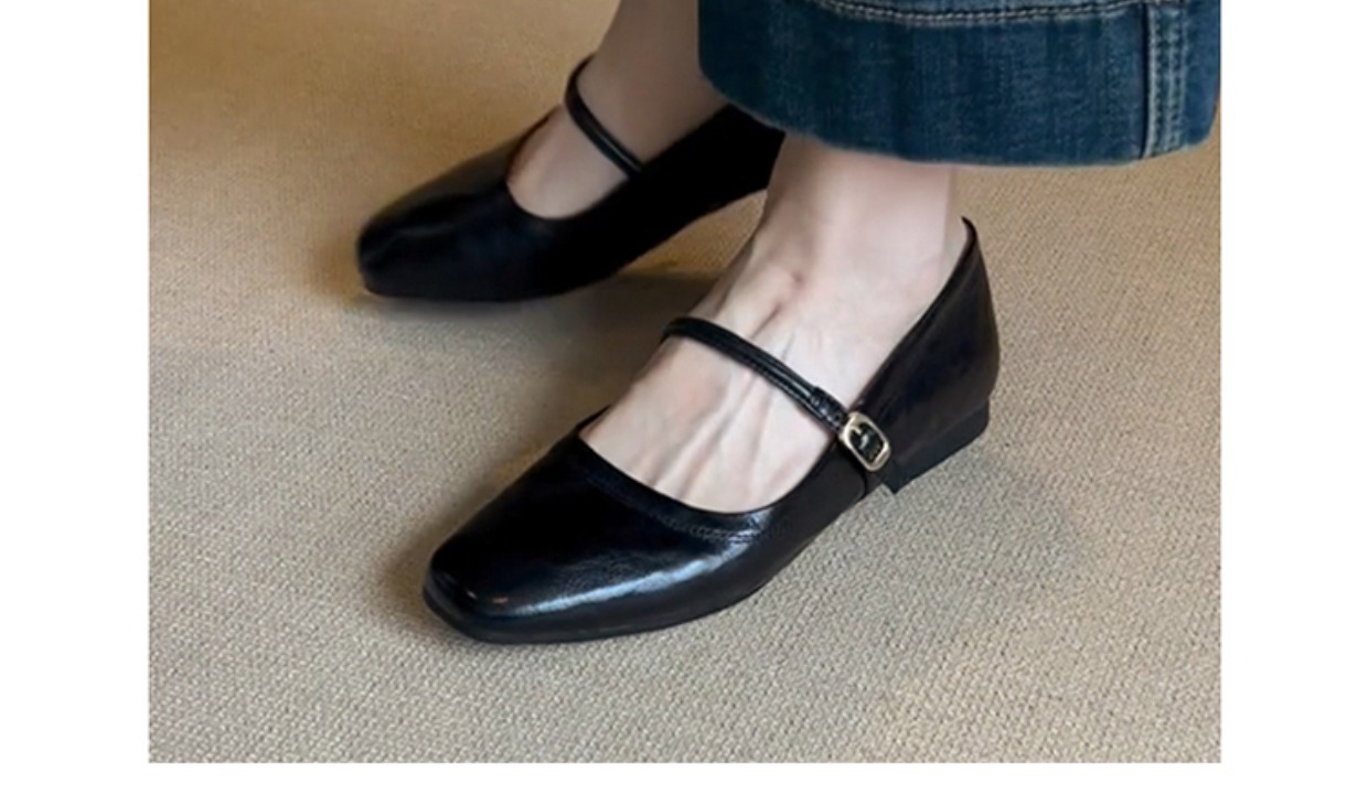 양가죽 버전 ~ 천연가죽 한국판 레트로 원버튼 버클 메리제인 슈즈 여성 플랫 슈즈 펌프스 작은 가죽신