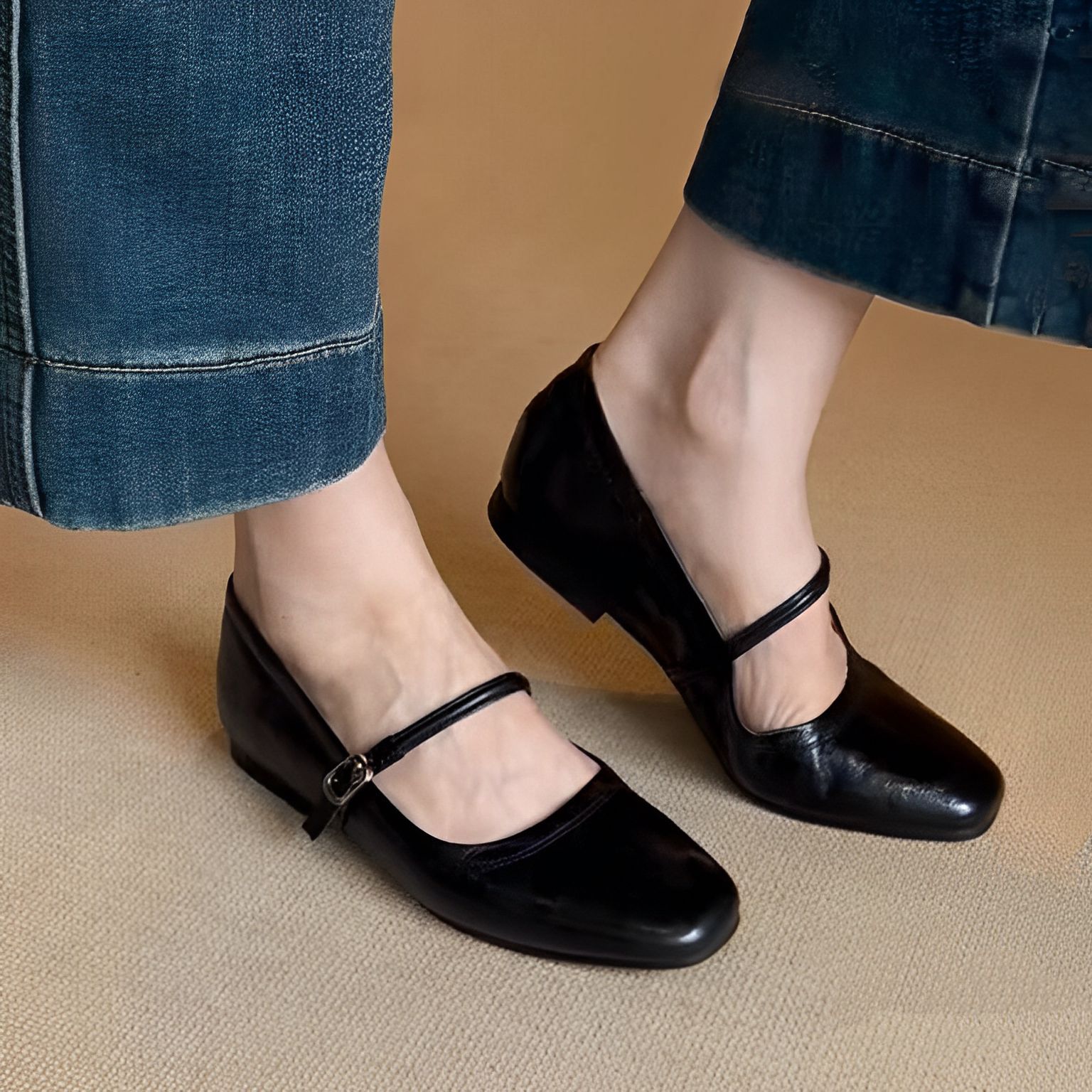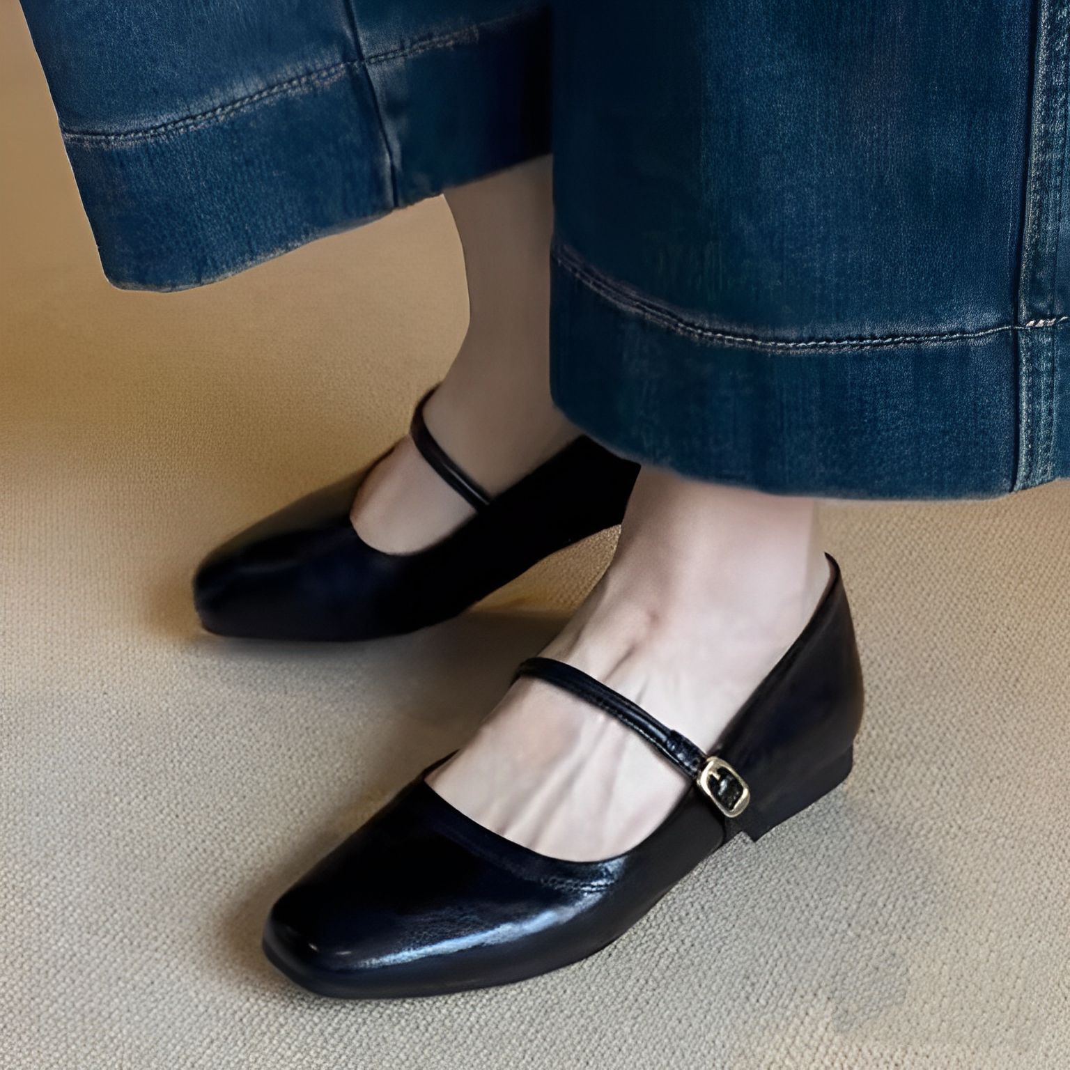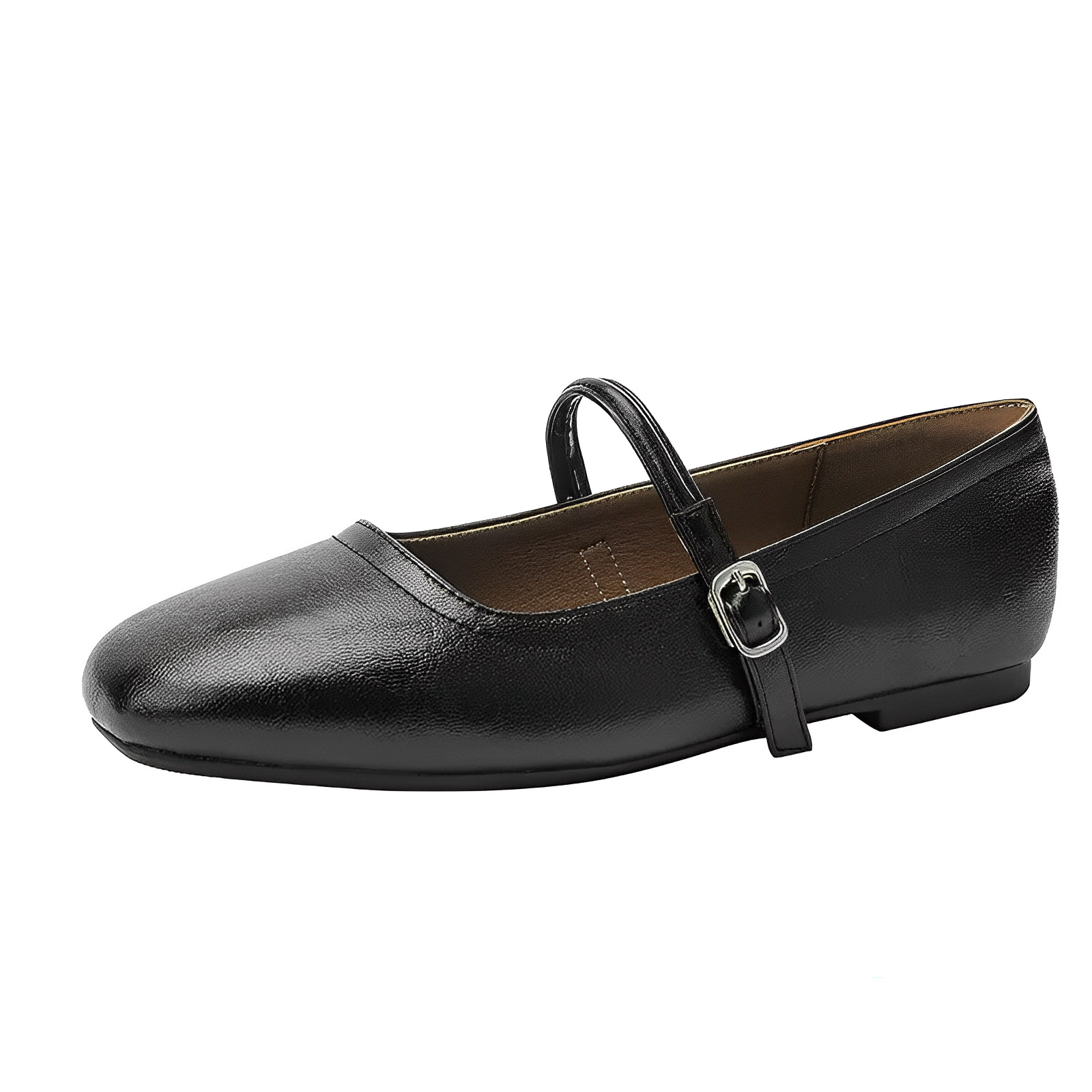 양가죽 버전 ~ 천연가죽 한국판 레트로 원버튼 버클 메리제인 슈즈 여성 플랫 슈즈 펌프스 작은 가죽신