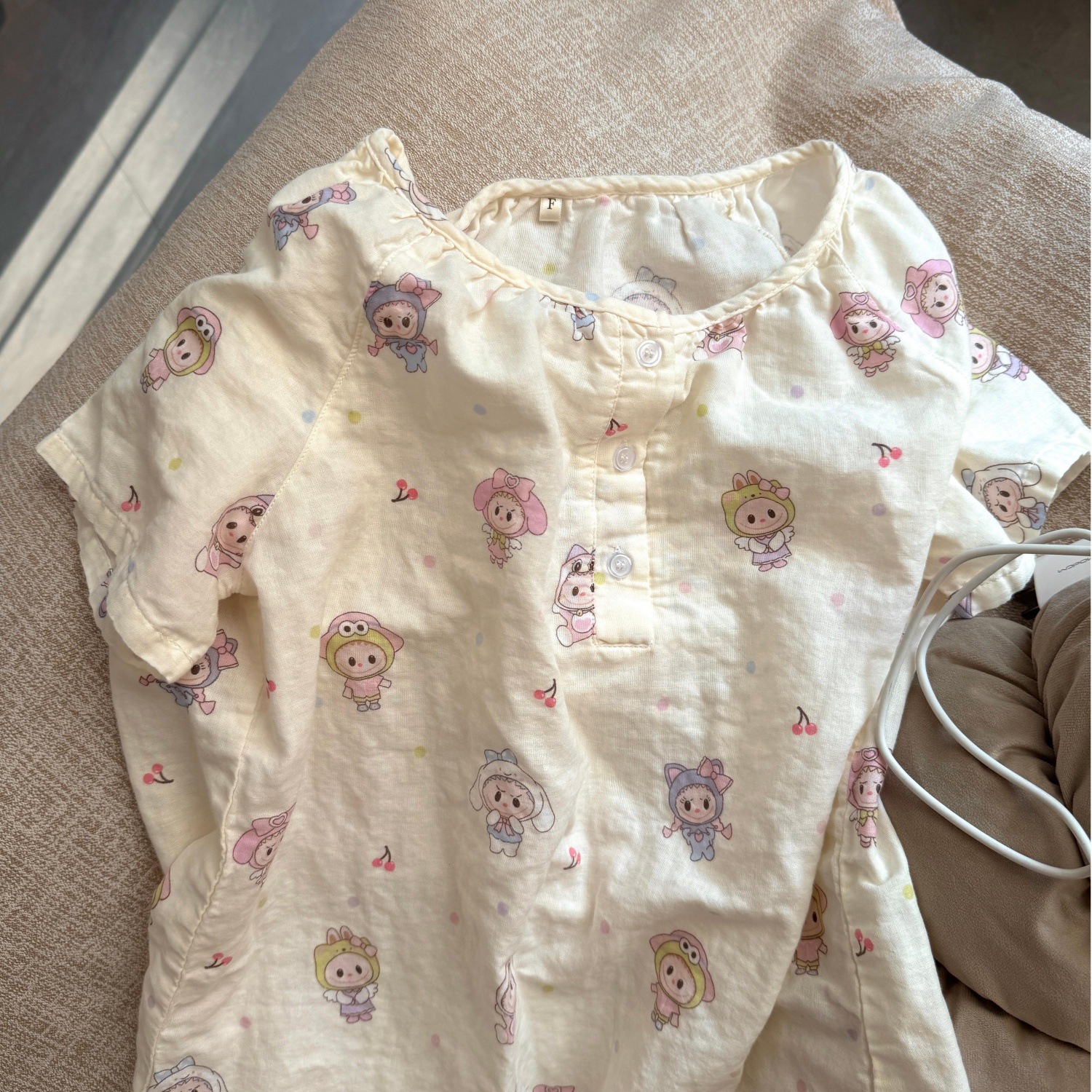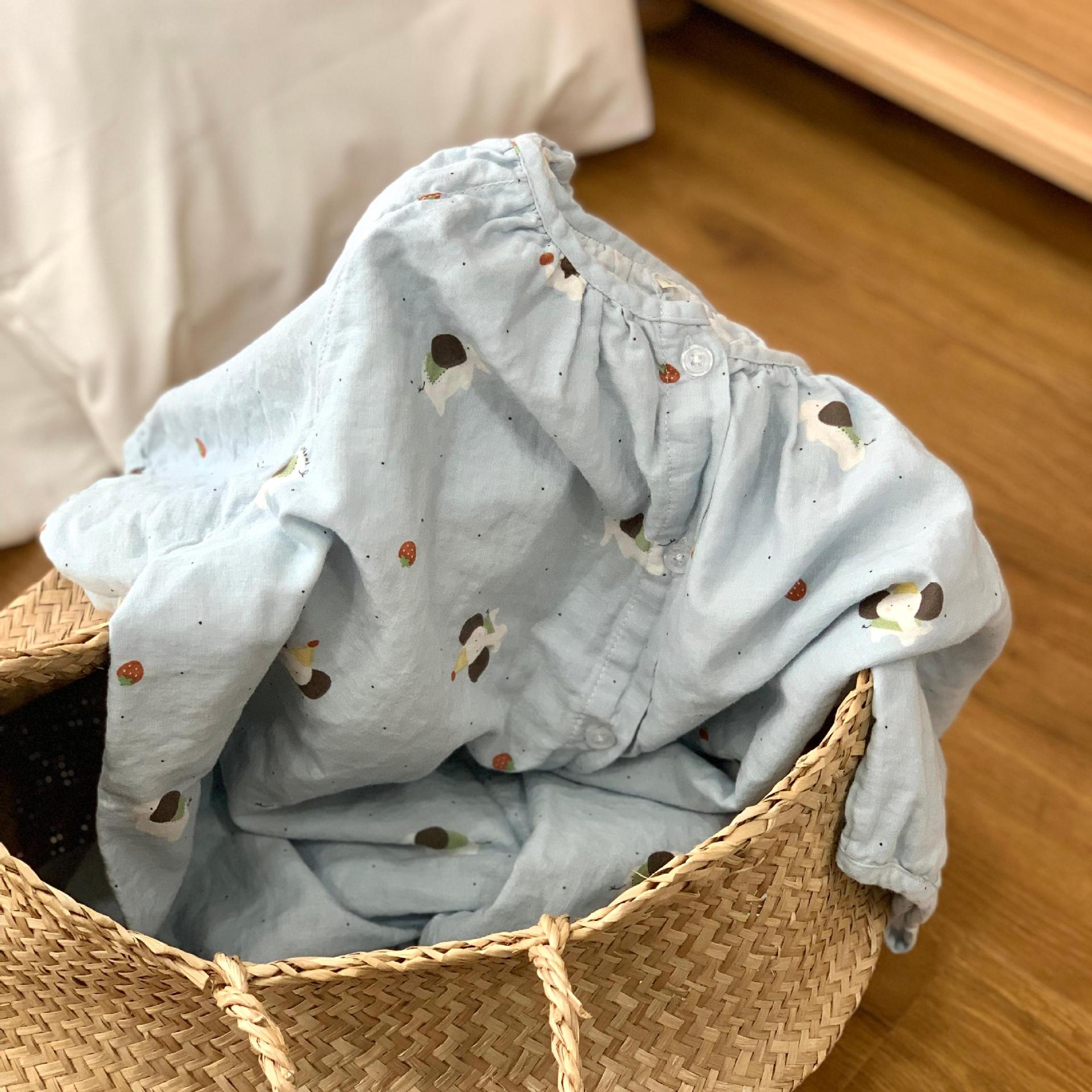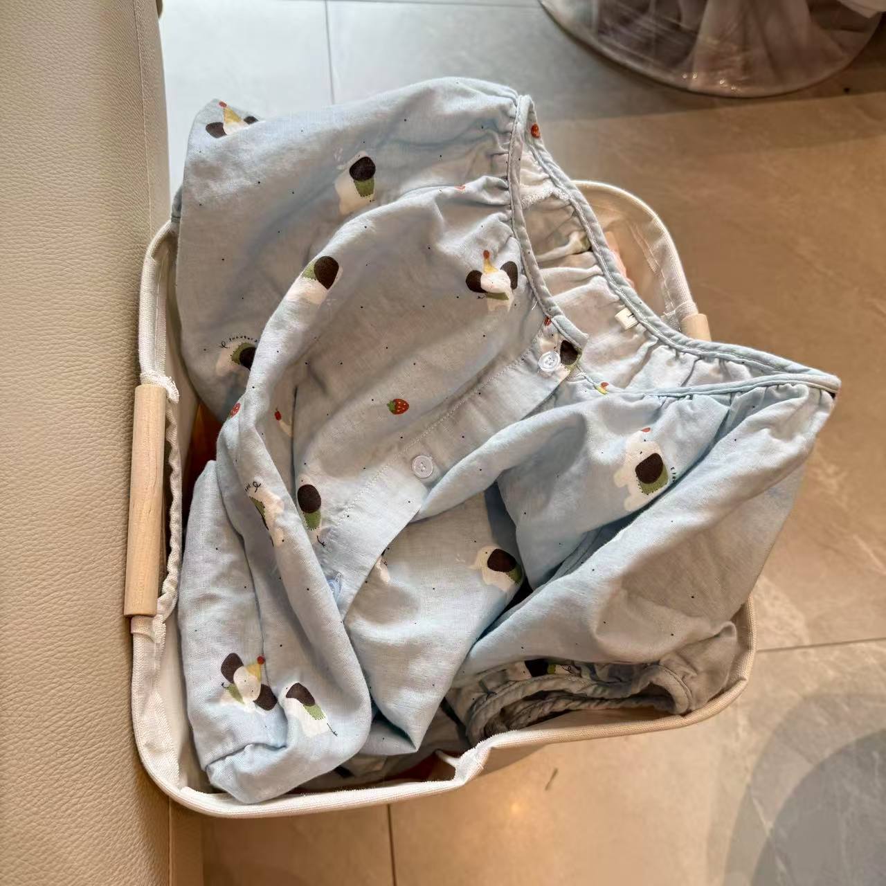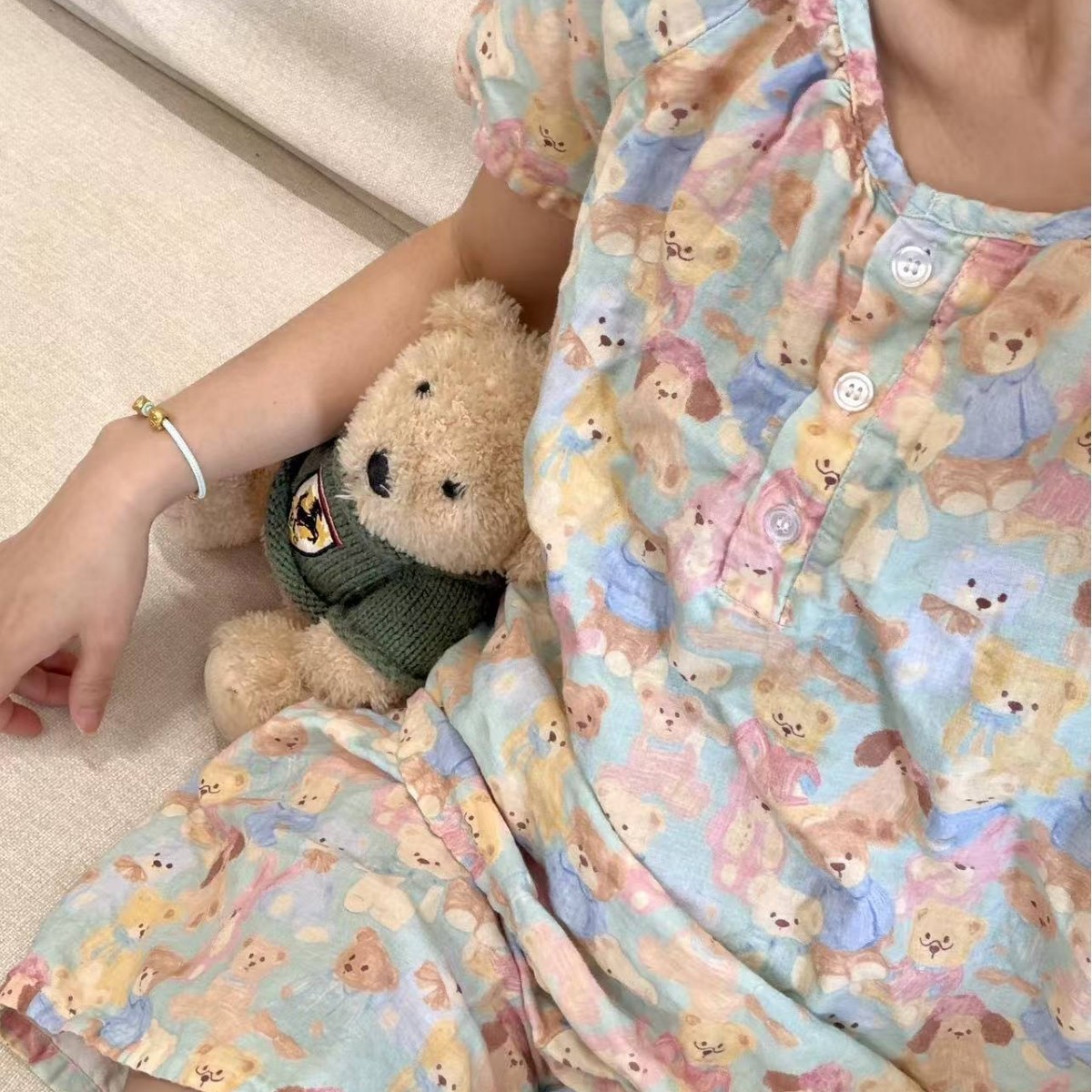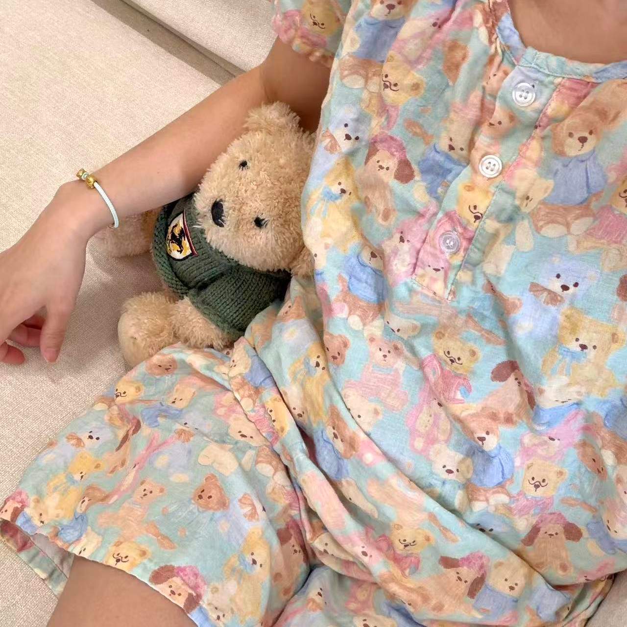 라운드넥 반팔 반바지 A급 순면 이중 거즈 풀오버 잠옷 세트 홈웨어 순면 거즈 피부 친화적이고 통기성이 좋음
