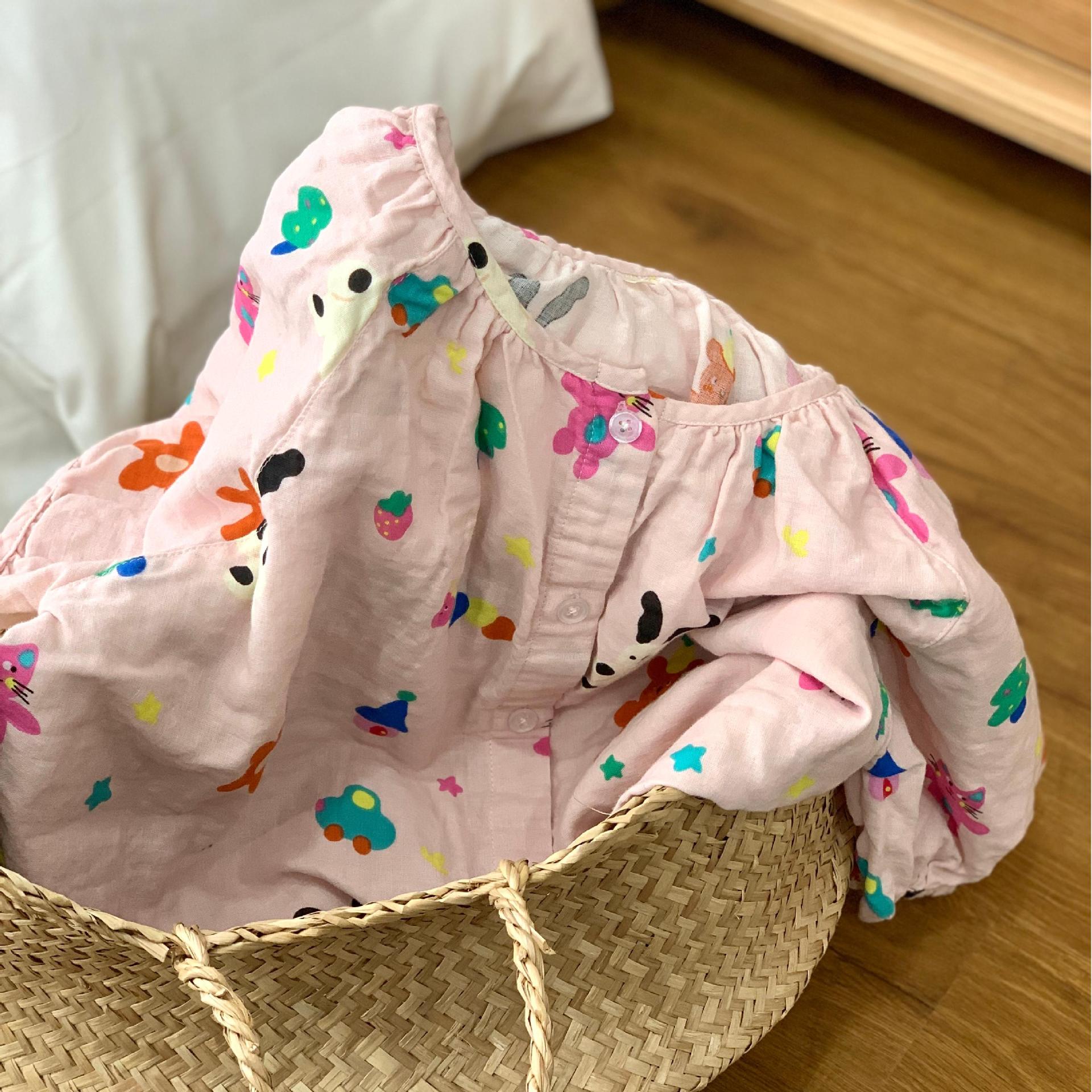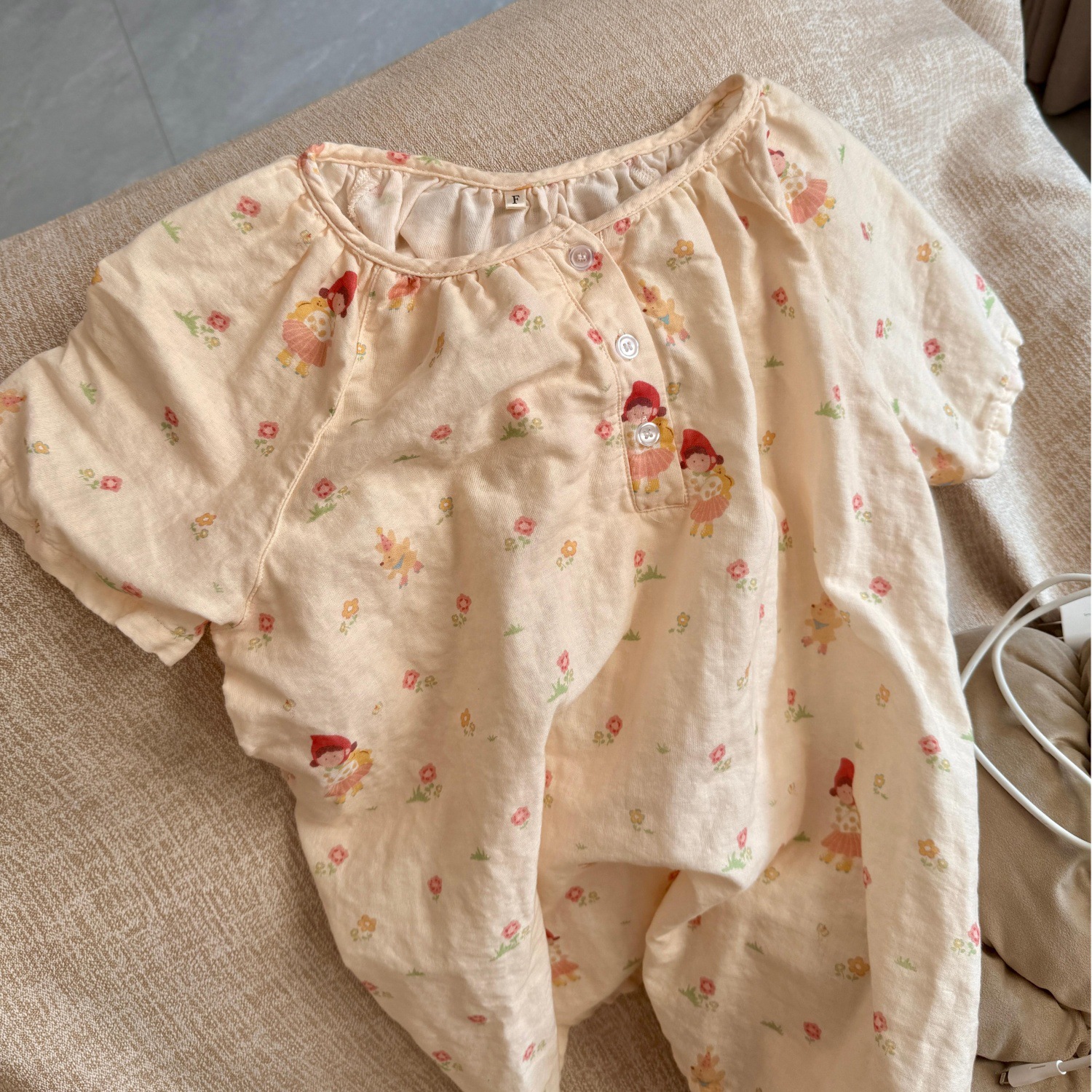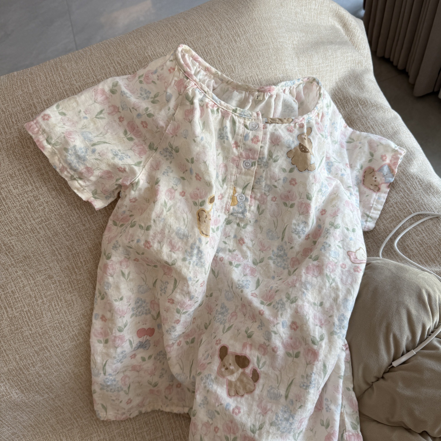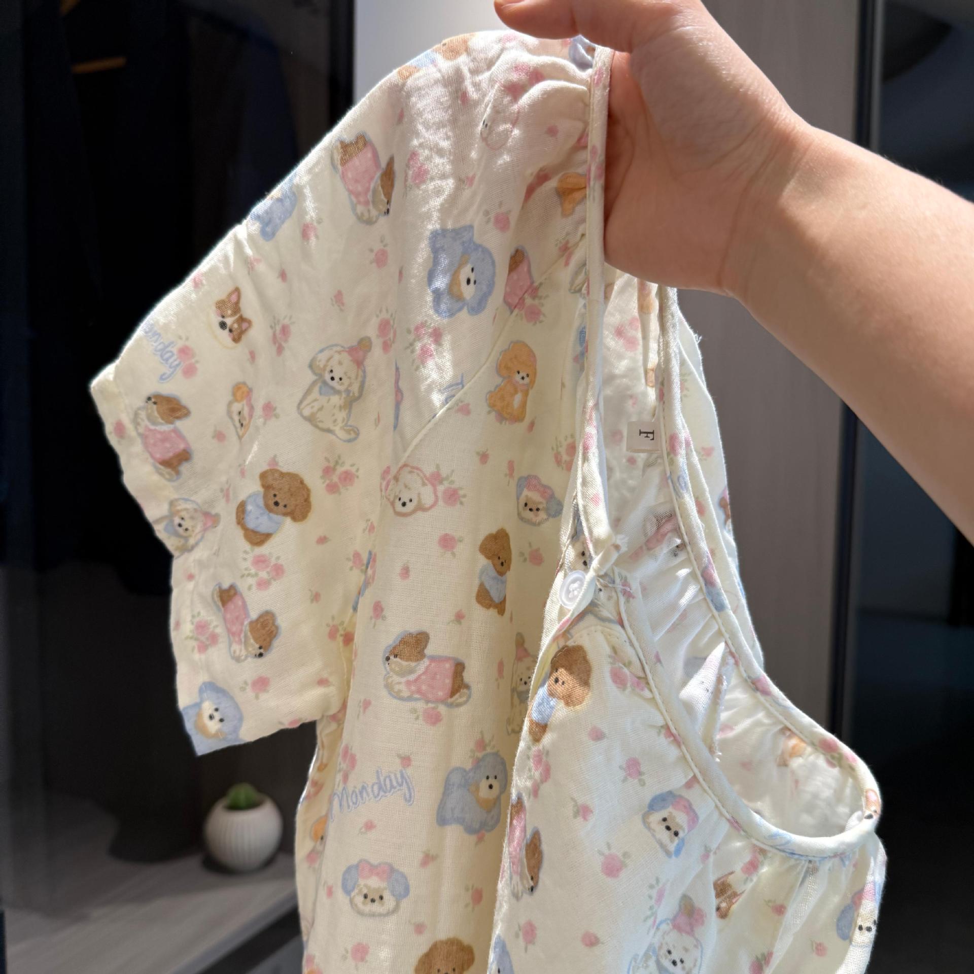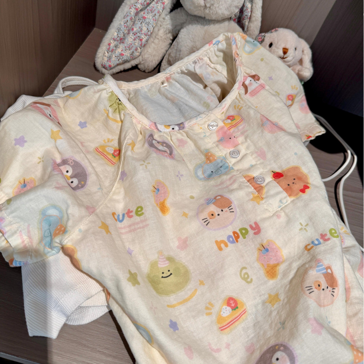 라운드넥 반팔 반바지 A급 순면 이중 거즈 풀오버 잠옷 세트 홈웨어 순면 거즈 피부 친화적이고 통기성이 좋음