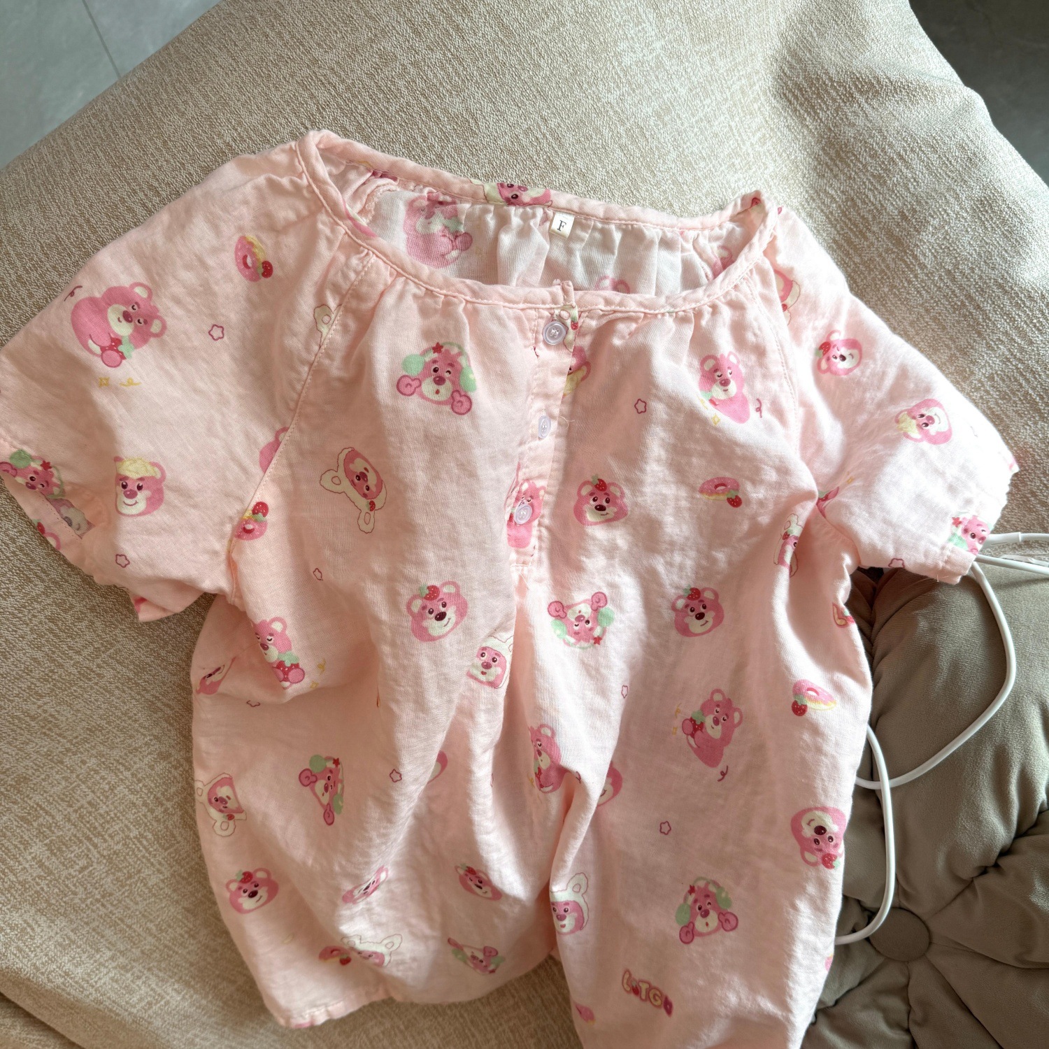 라운드넥 반팔 반바지 세트 - 딸기곰