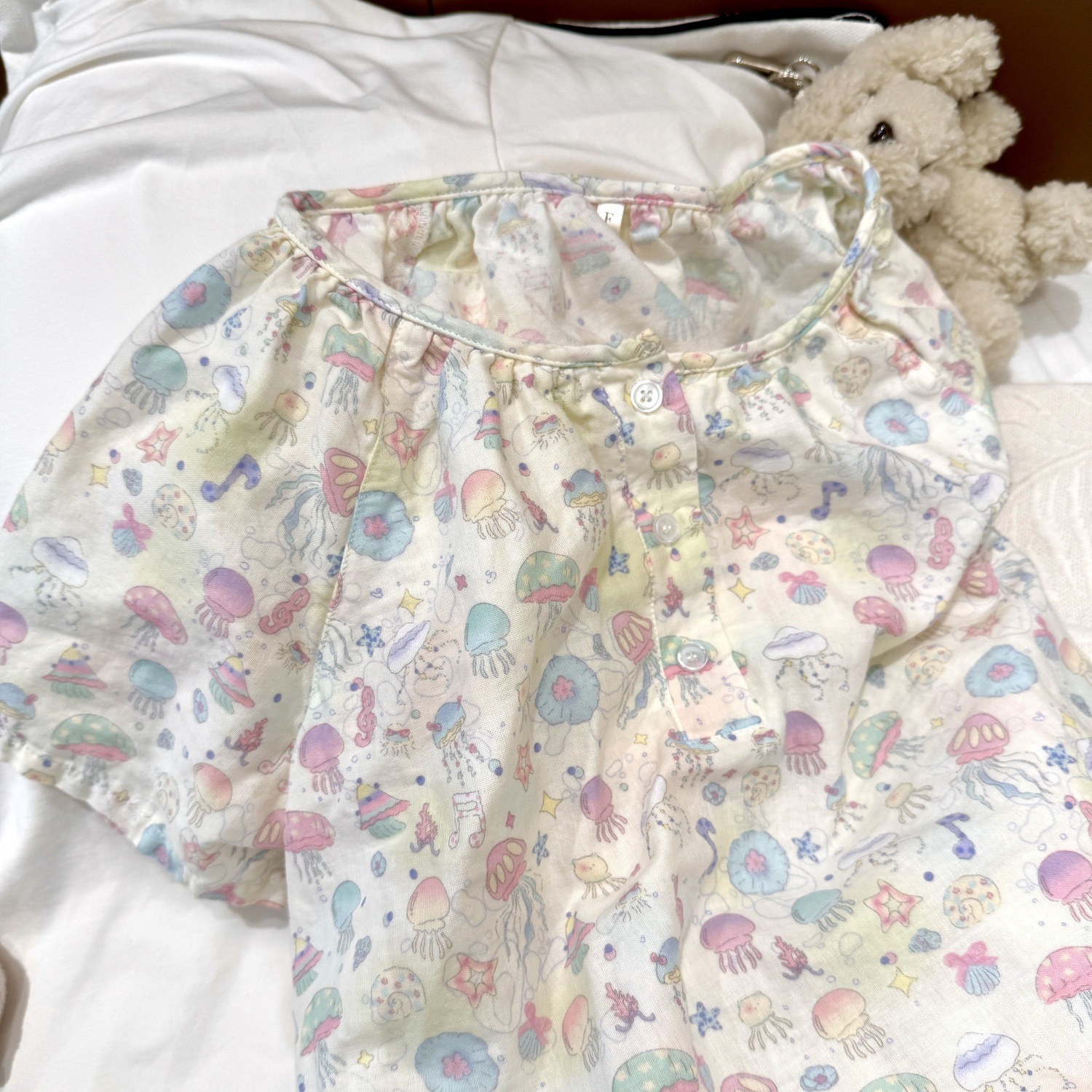 라운드넥 반팔 반바지 세트 - 별빛 해파리