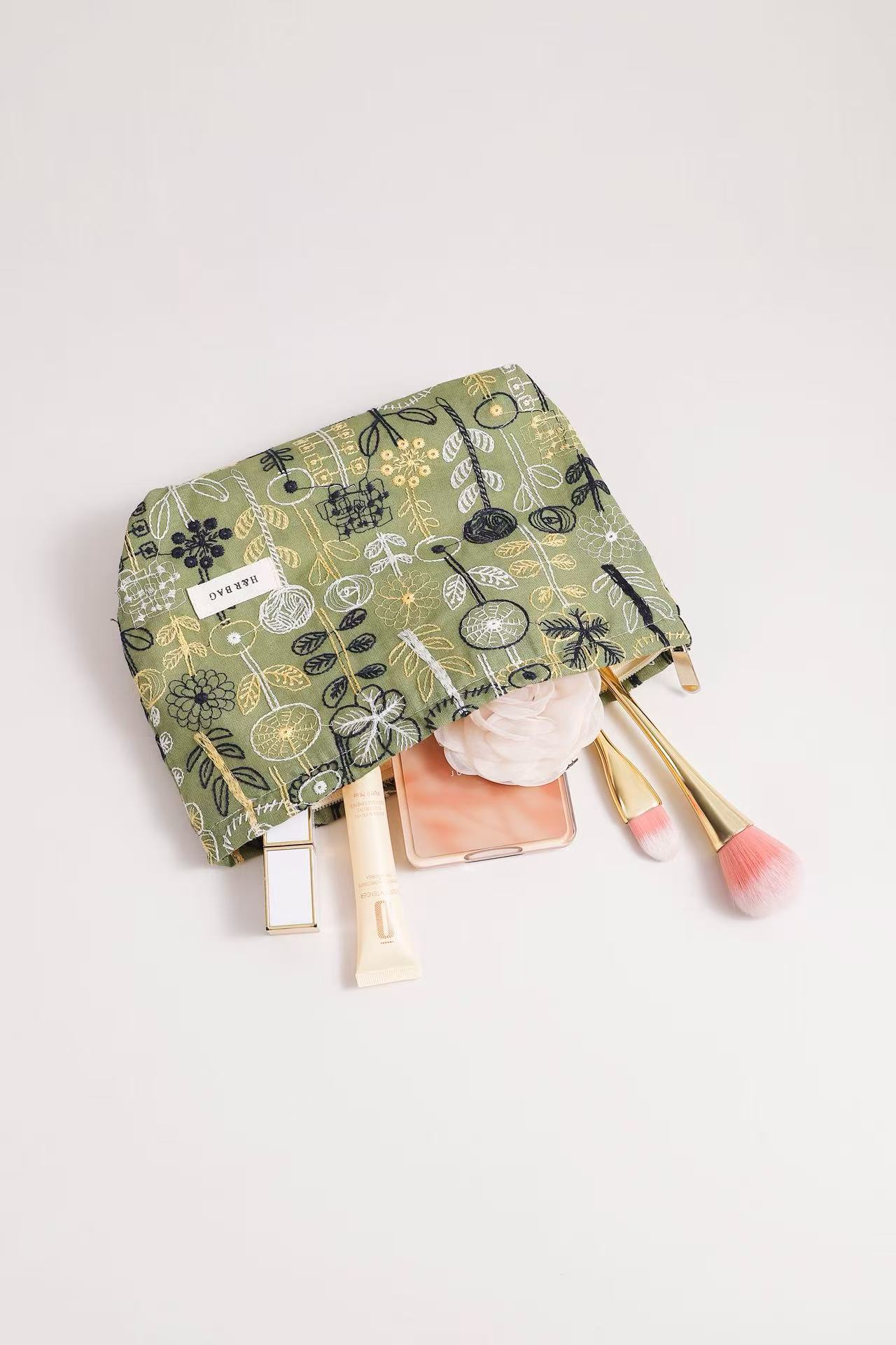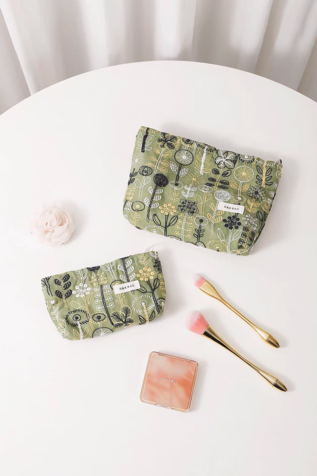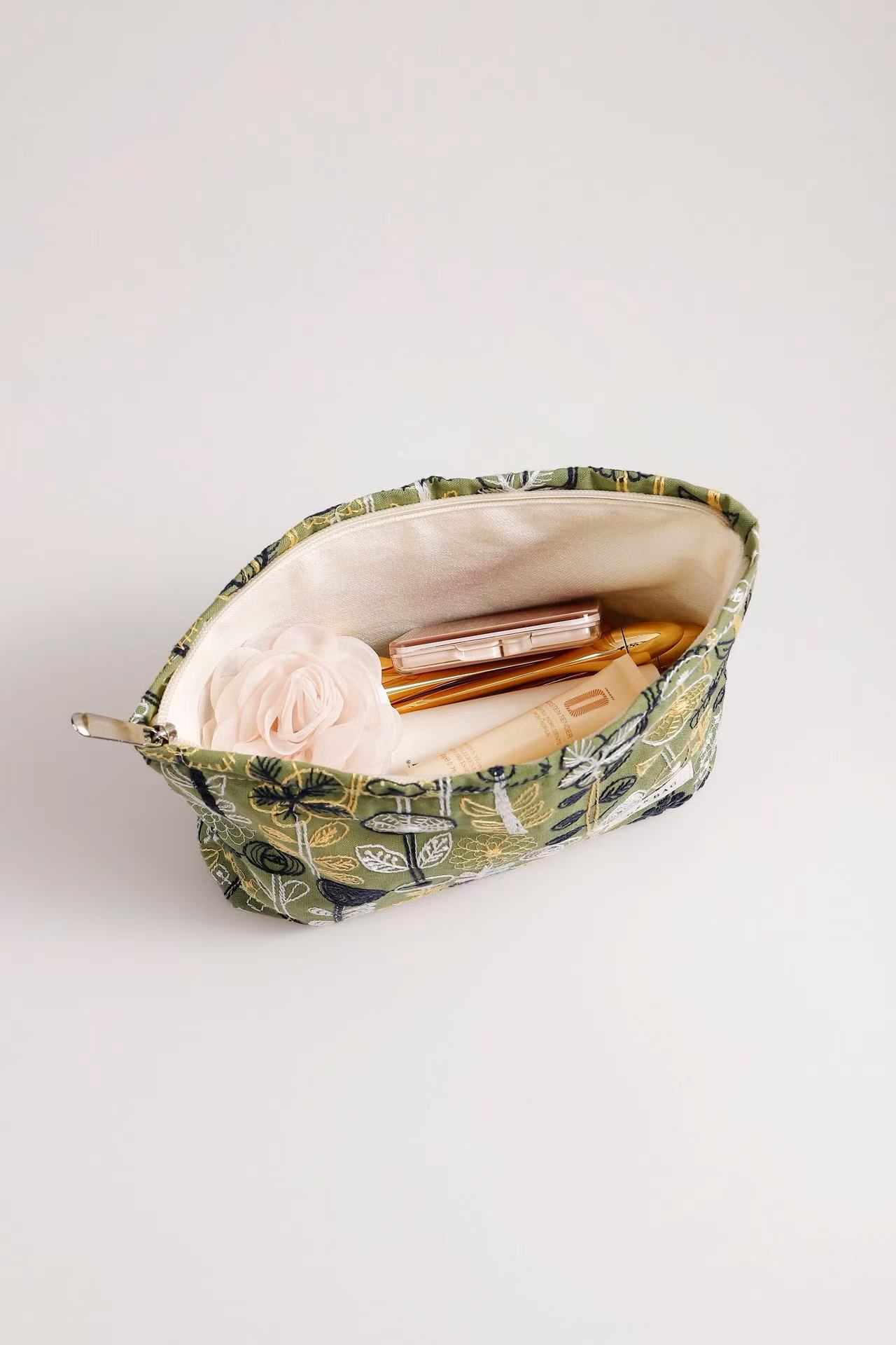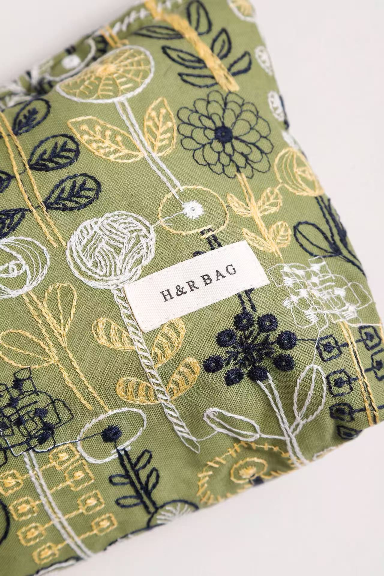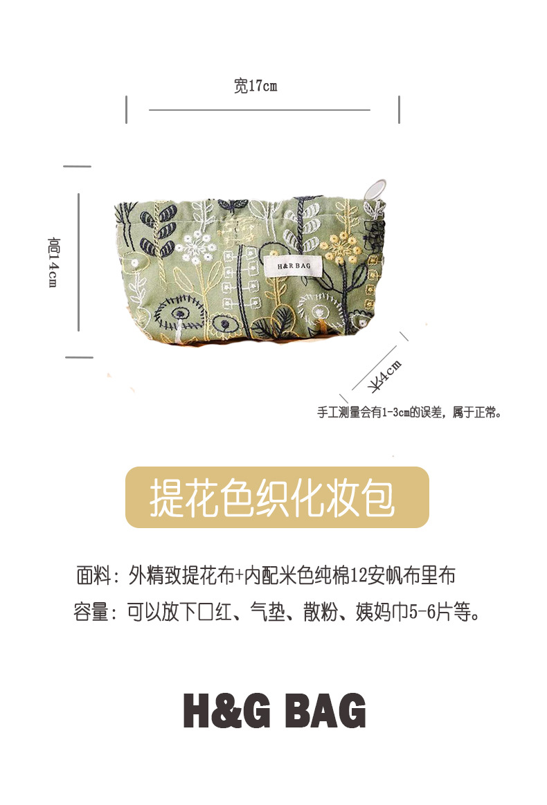 새로운 신선한 예술면 및 린넨 자수 꽃 화장품 가방 높은 색상 가치 대용량 휴대용 저장 가방 동전 지갑