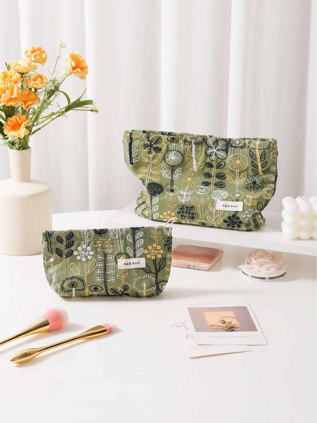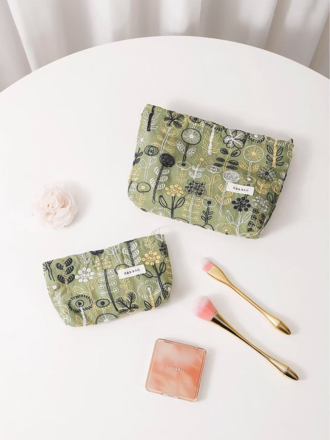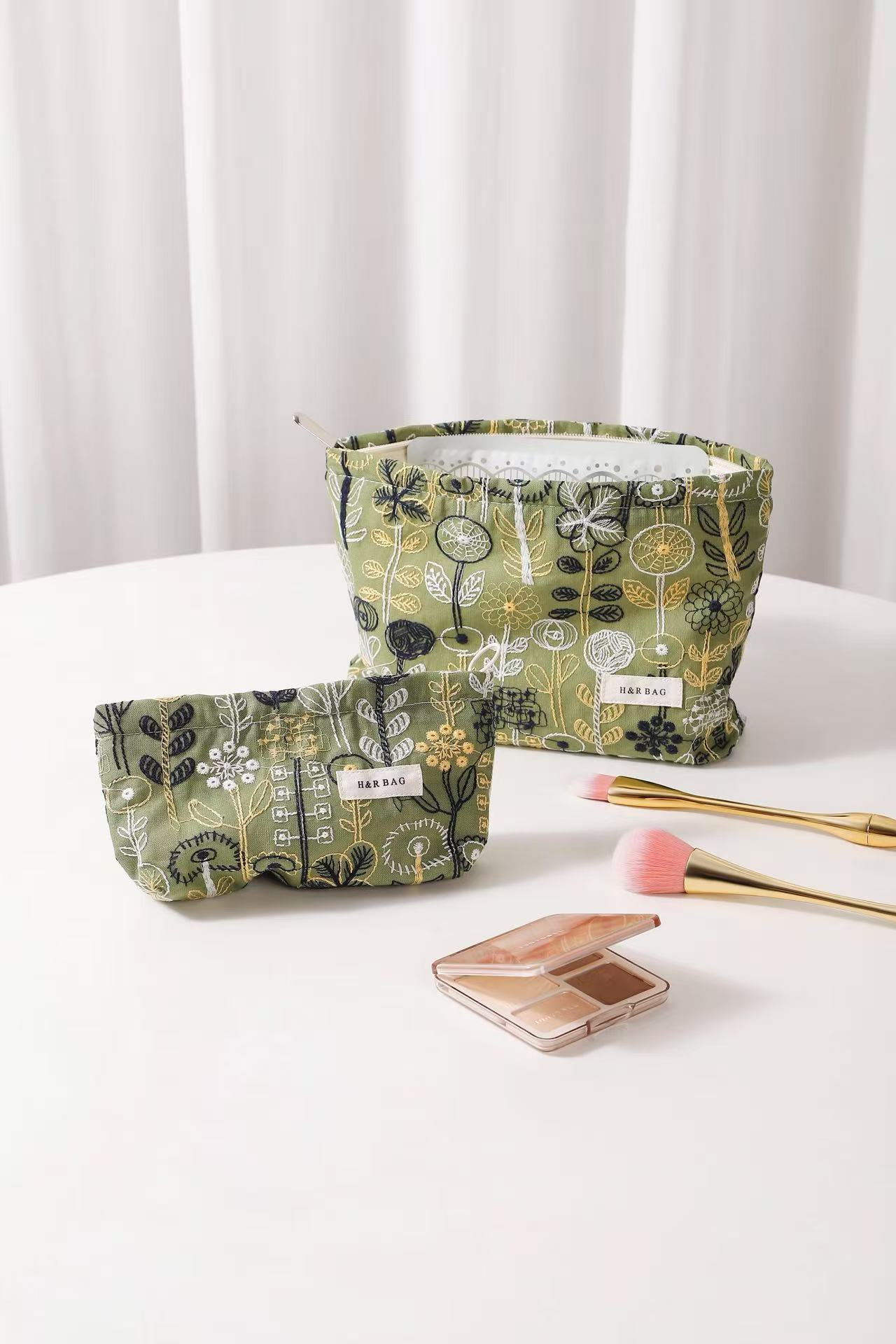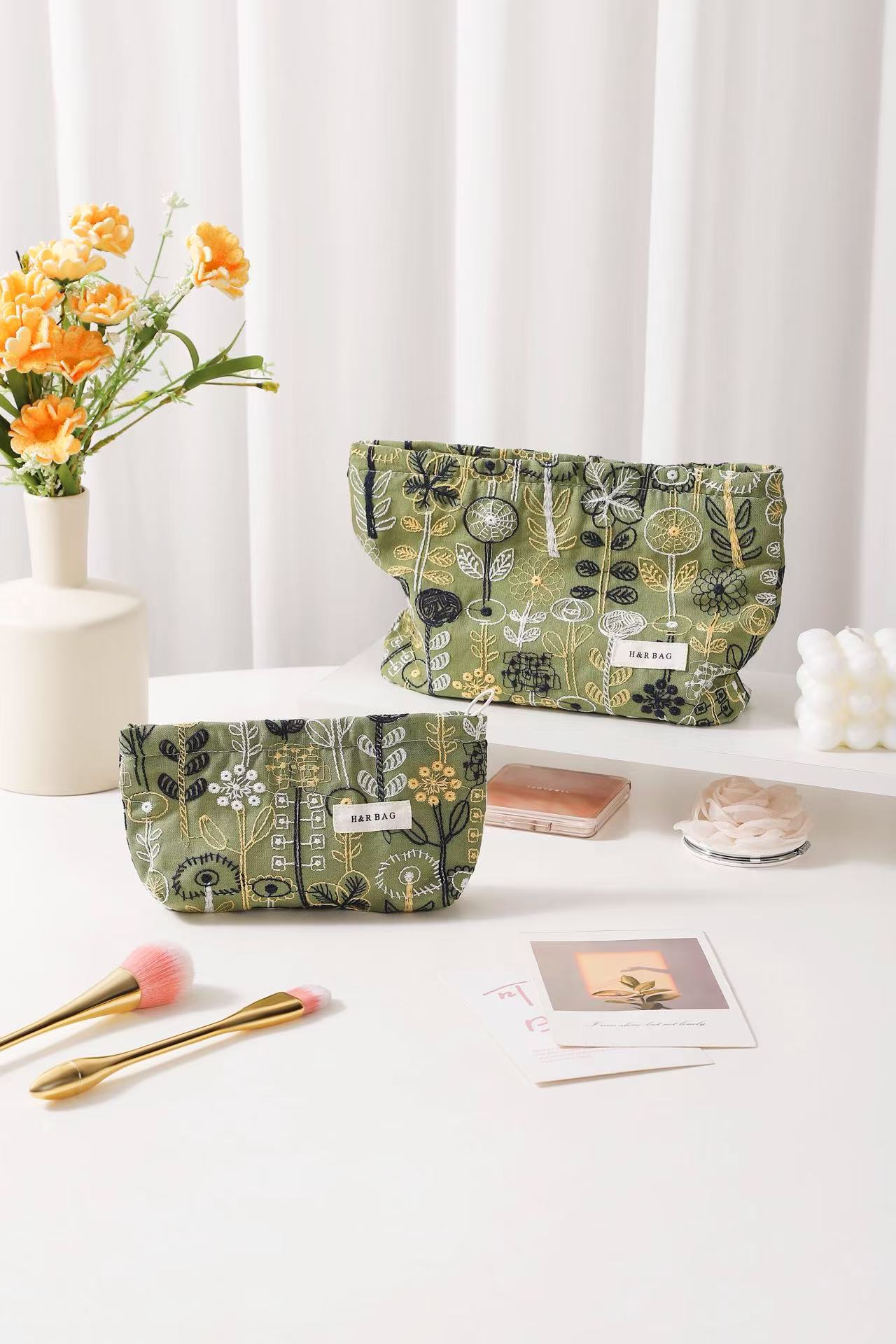 새로운 신선한 예술면 및 린넨 자수 꽃 화장품 가방 높은 색상 가치 대용량 휴대용 저장 가방 동전 지갑
