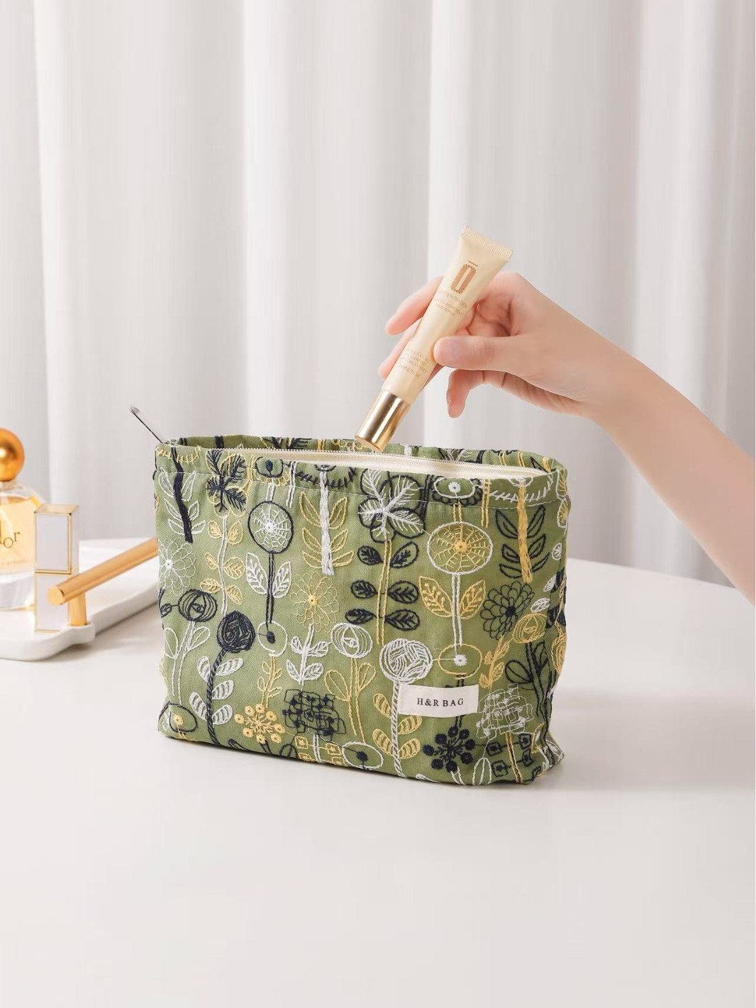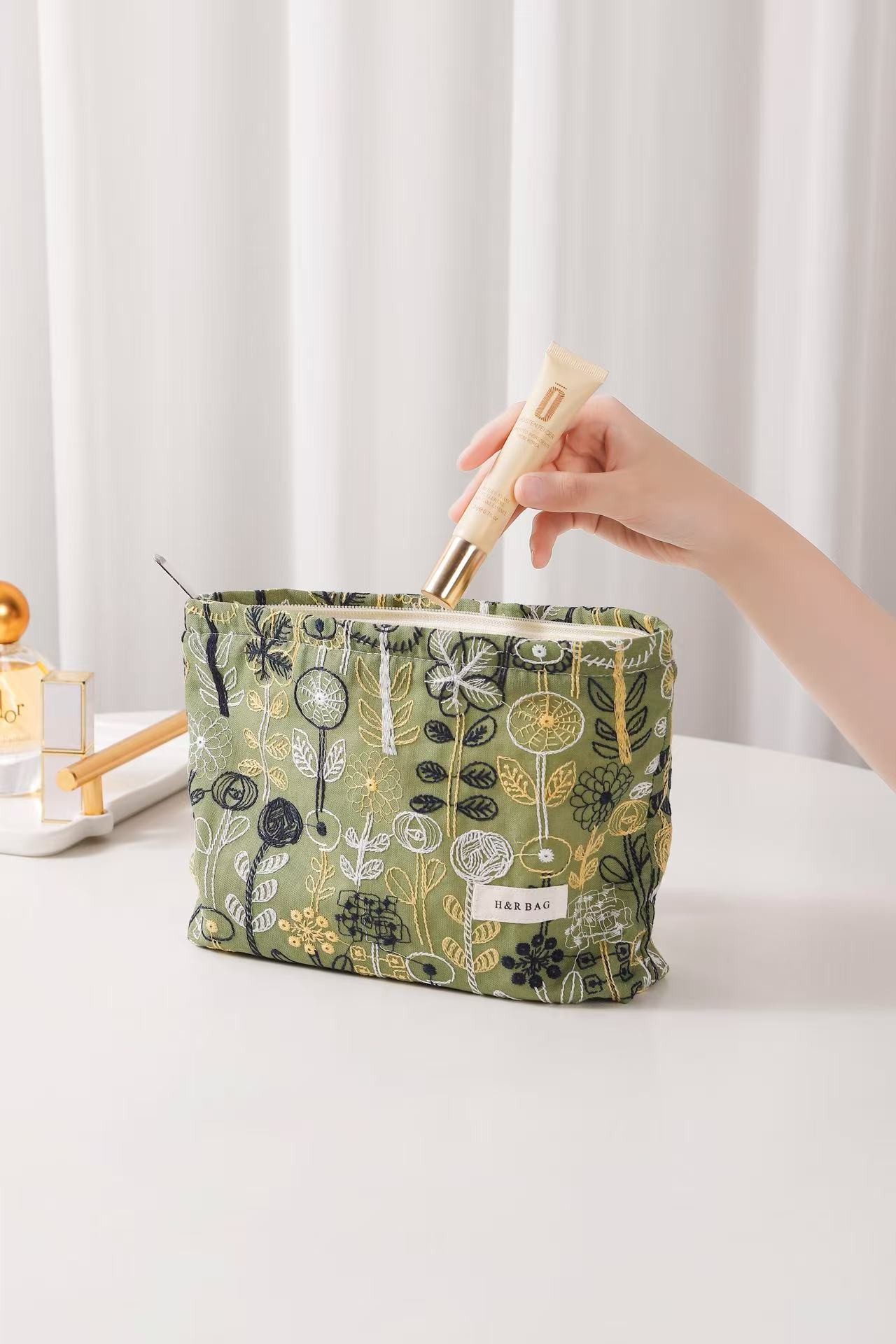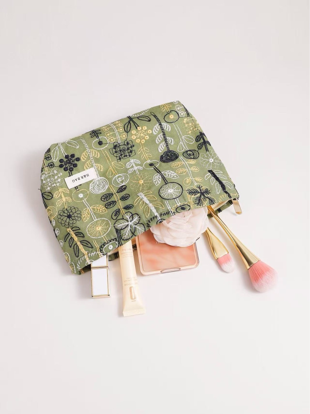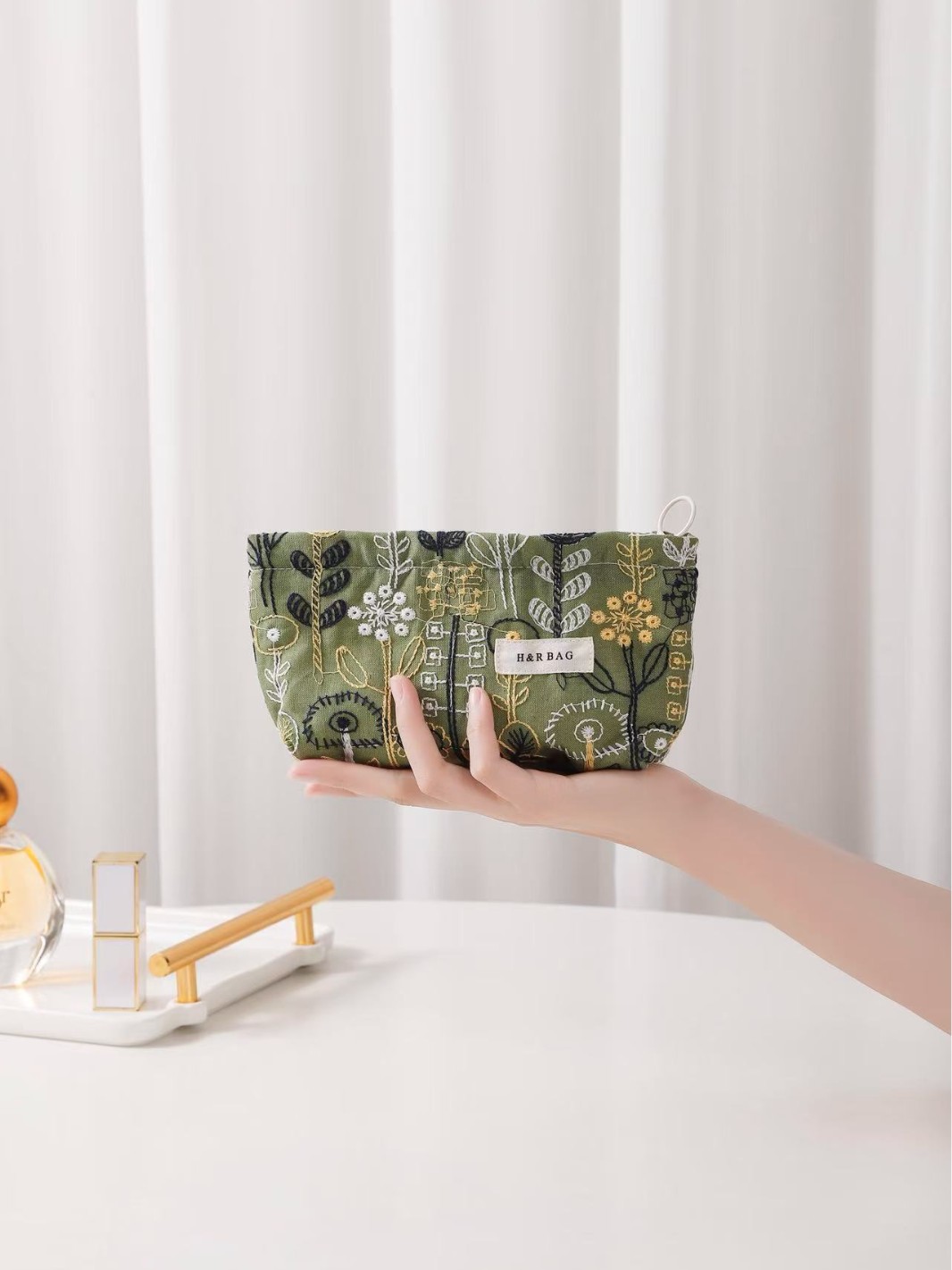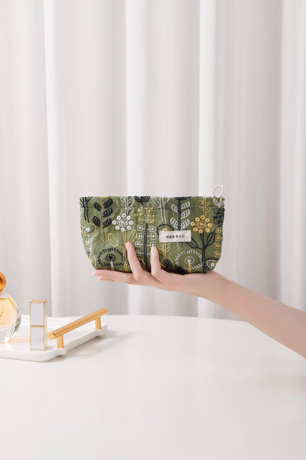 새로운 신선한 예술면 및 린넨 자수 꽃 화장품 가방 높은 색상 가치 대용량 휴대용 저장 가방 동전 지갑