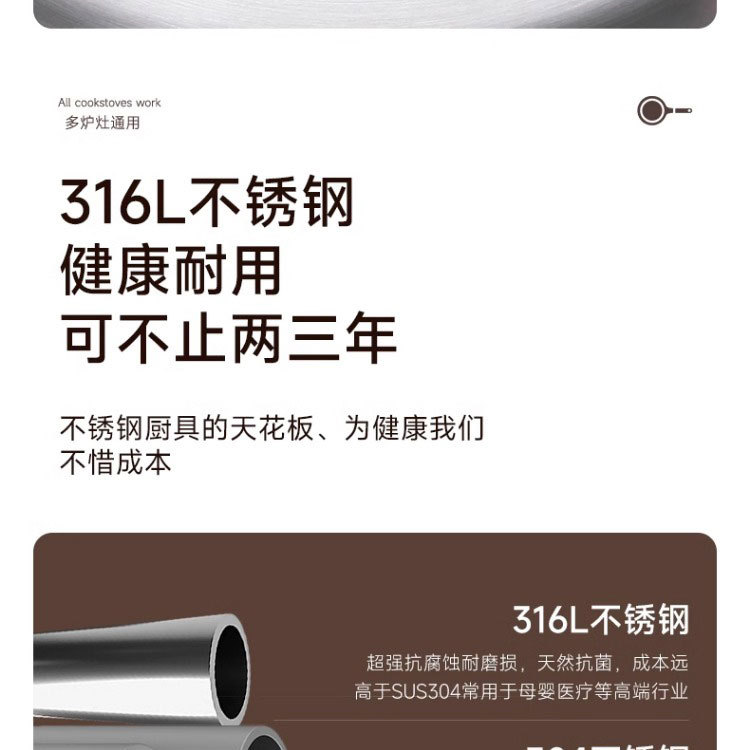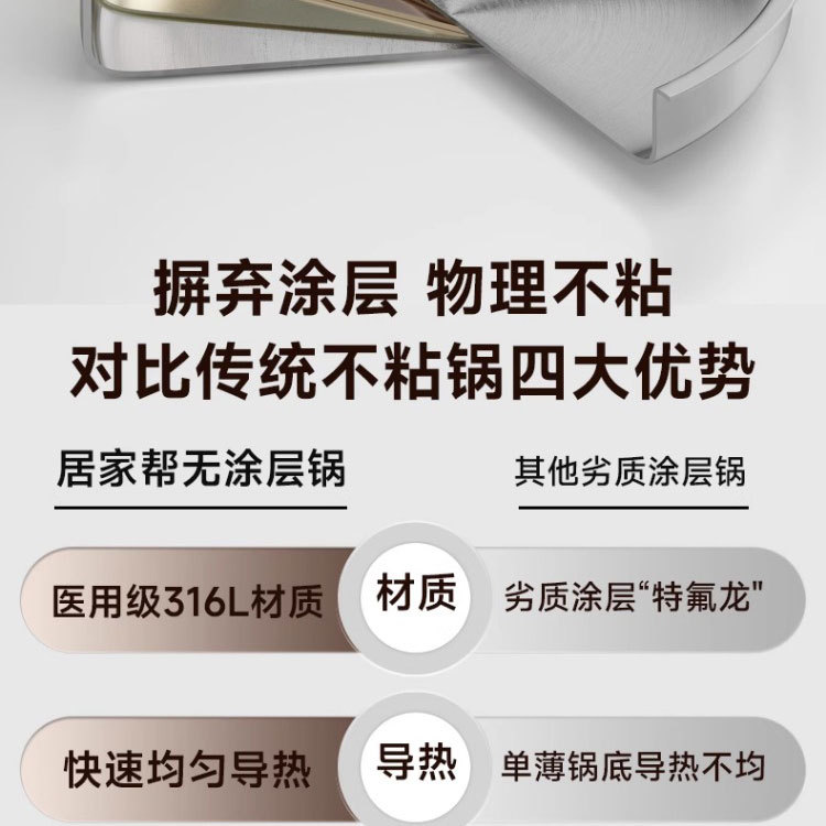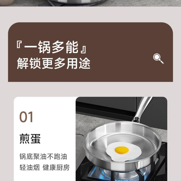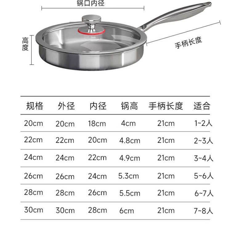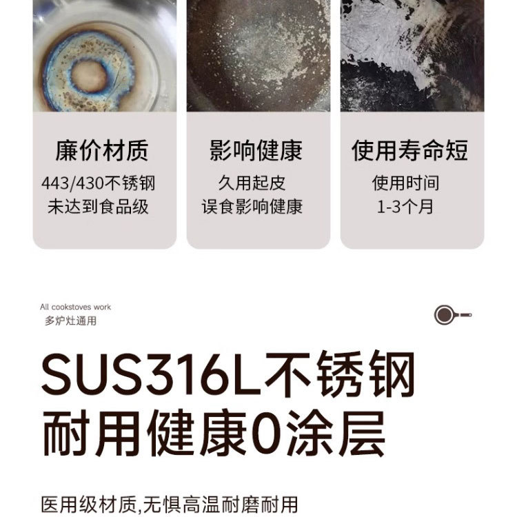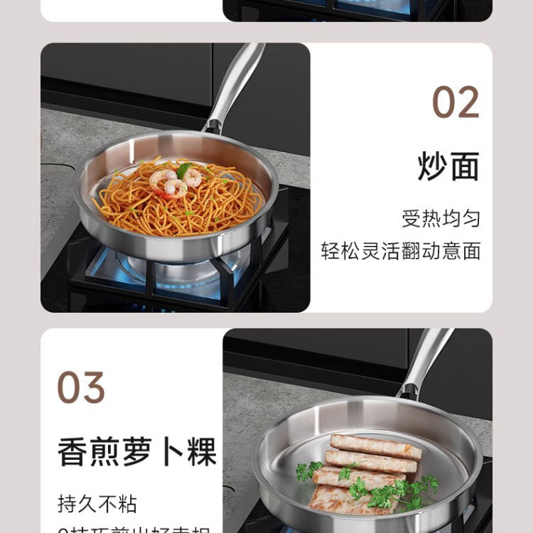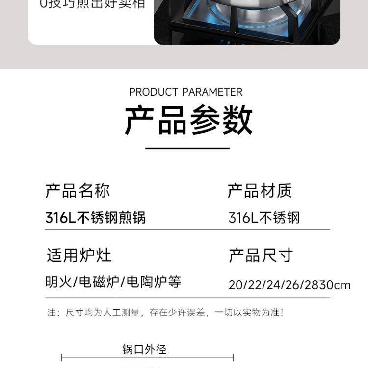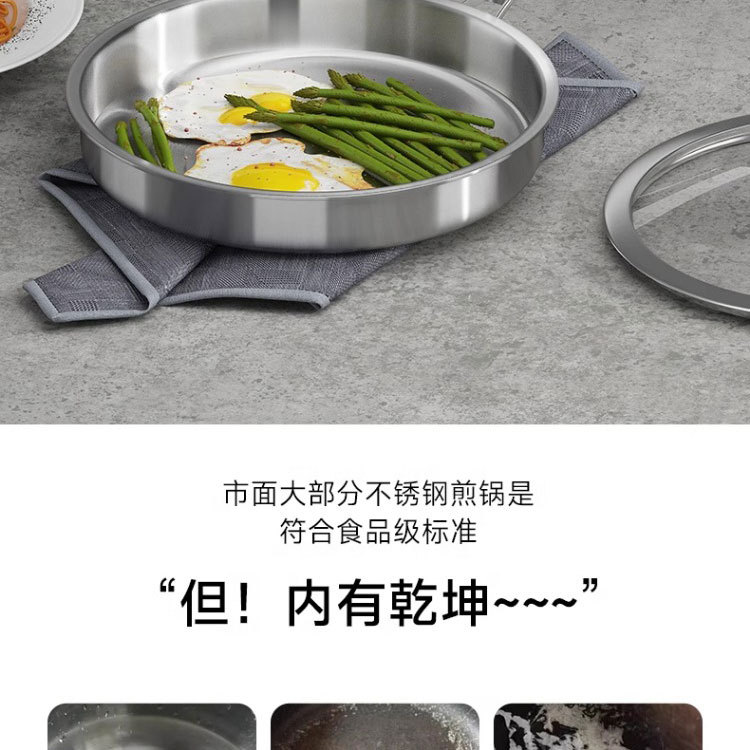 316 스테인레스 스틸 프라이팬 식품 등급 두꺼운 팬 가정용 코팅되지 않은 붙지 않는 팬 팬케이크 및 스테이크 튀김용 특수