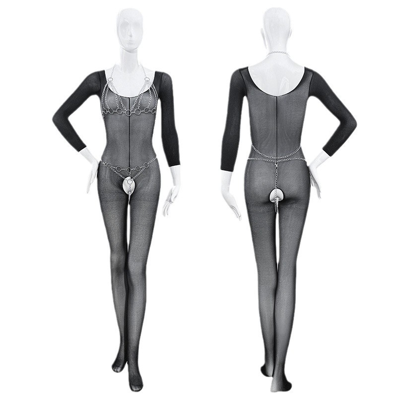 유럽과 미국 스타일의 중공 체인 3점 섹시 속옷, 바디 스타킹, 잠옷, 코스프레 섹시 유니폼 슈트