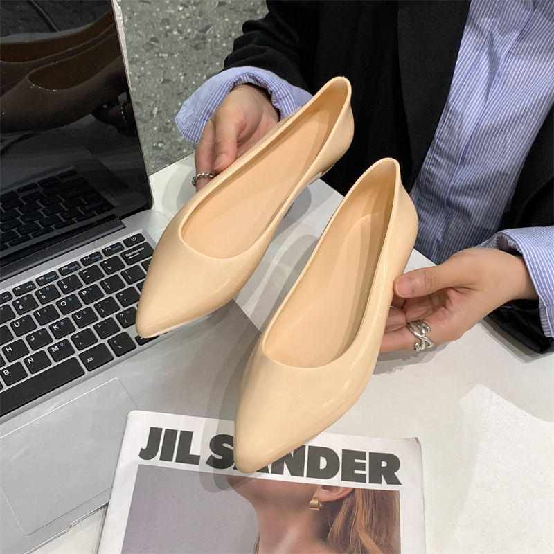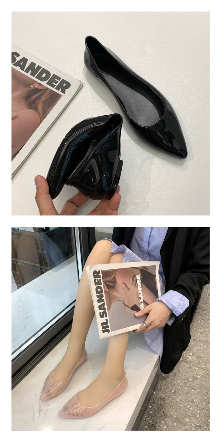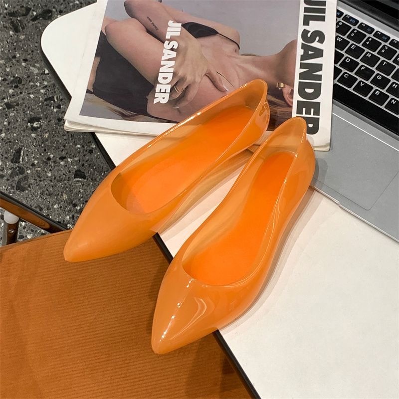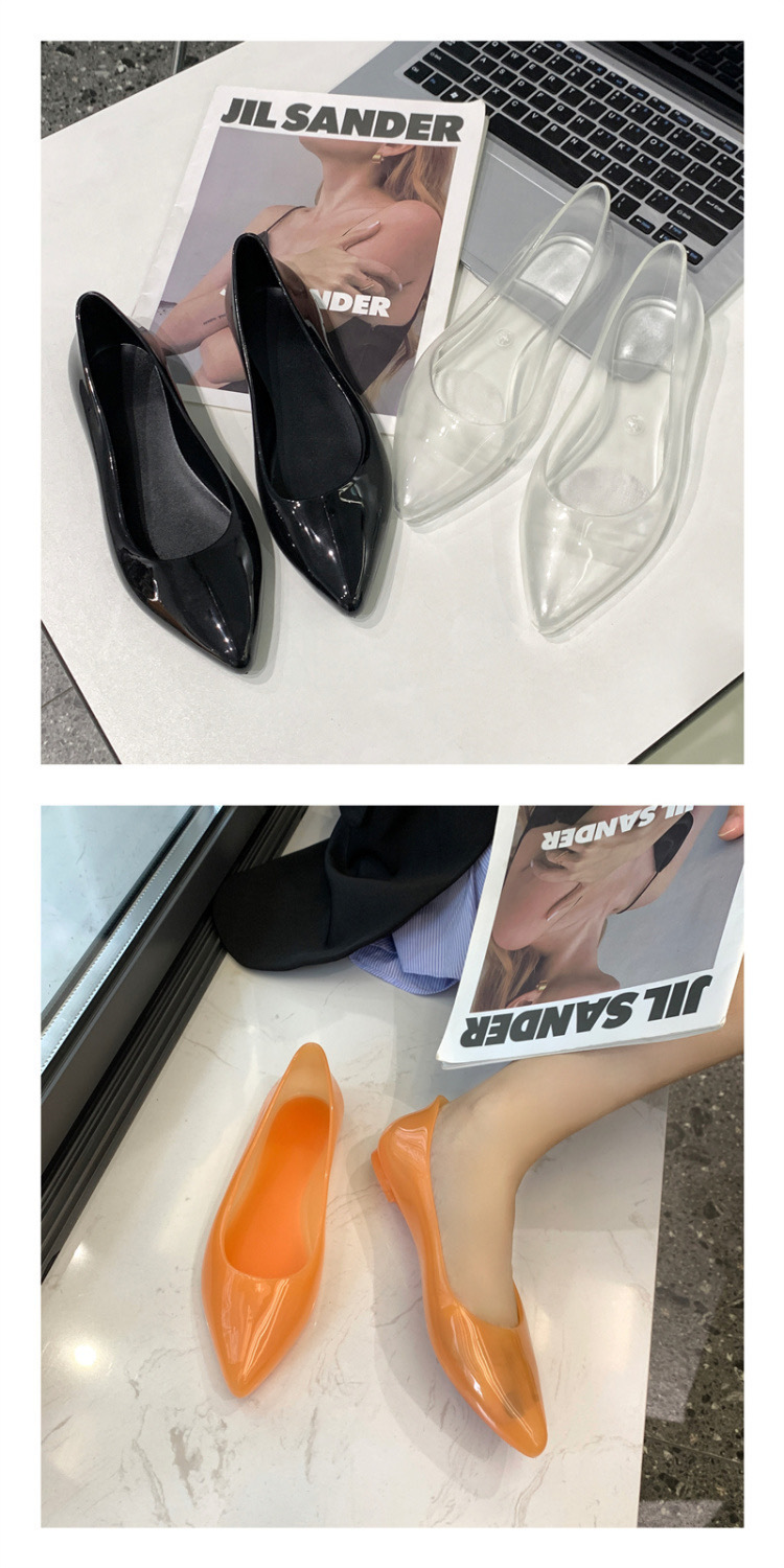 여성용 젤리 레인부츠, 새로운 패셔너블하고 다재다능한 여성용 뾰족한 투명 샌들, 성인용 미끄럼 방지 플랫 힐, 인터넷 연예인 레인부츠