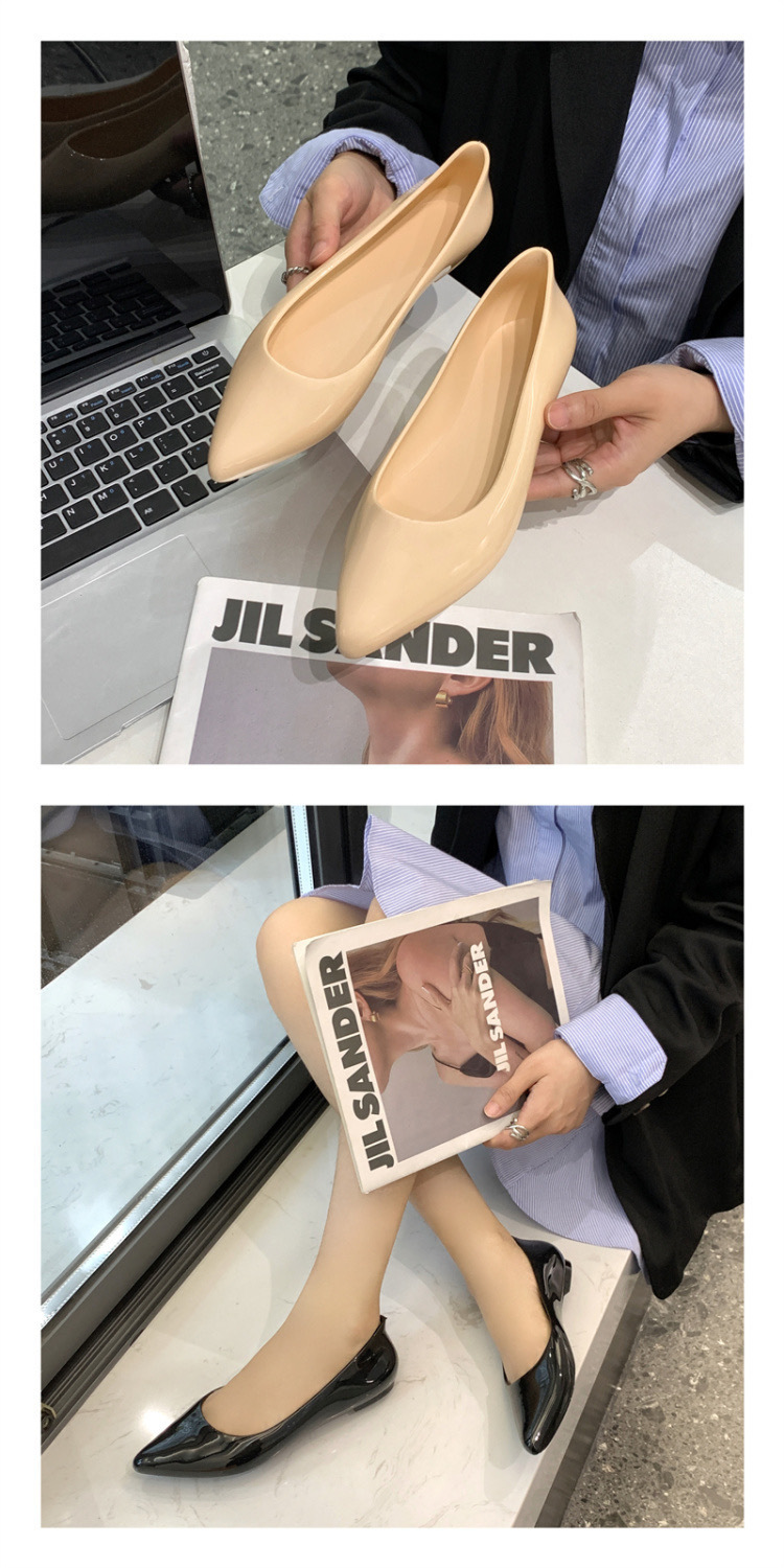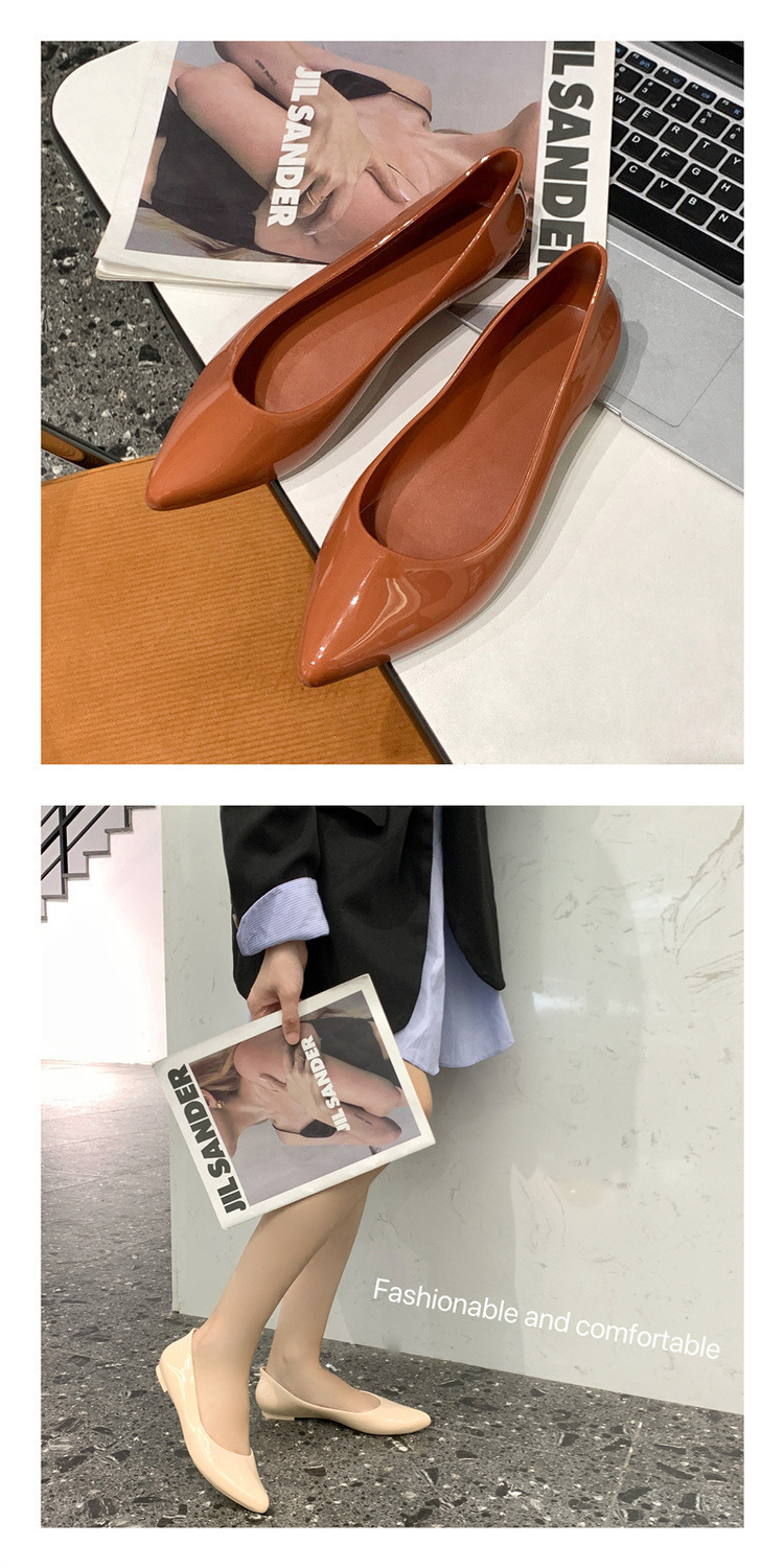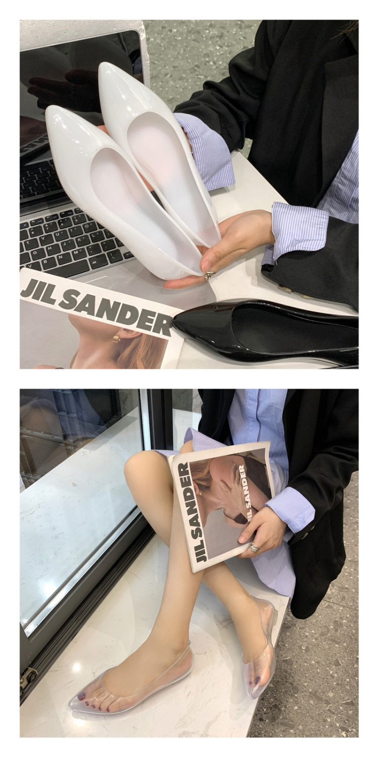 여성용 젤리 레인부츠, 새로운 패셔너블하고 다재다능한 여성용 뾰족한 투명 샌들, 성인용 미끄럼 방지 플랫 힐, 인터넷 연예인 레인부츠