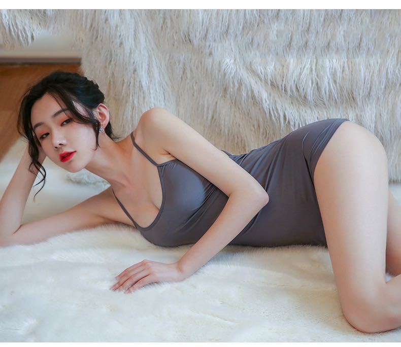 작은 가슴을 가진 여성을 위한 Yecu 섹시한 속옷 잠옷, 섹시한 등이없는 서스펜더 잠옷, 순수한 욕망 얼음 실크 스커트 8001