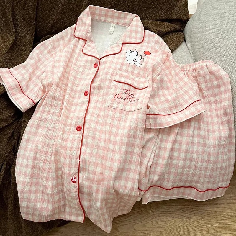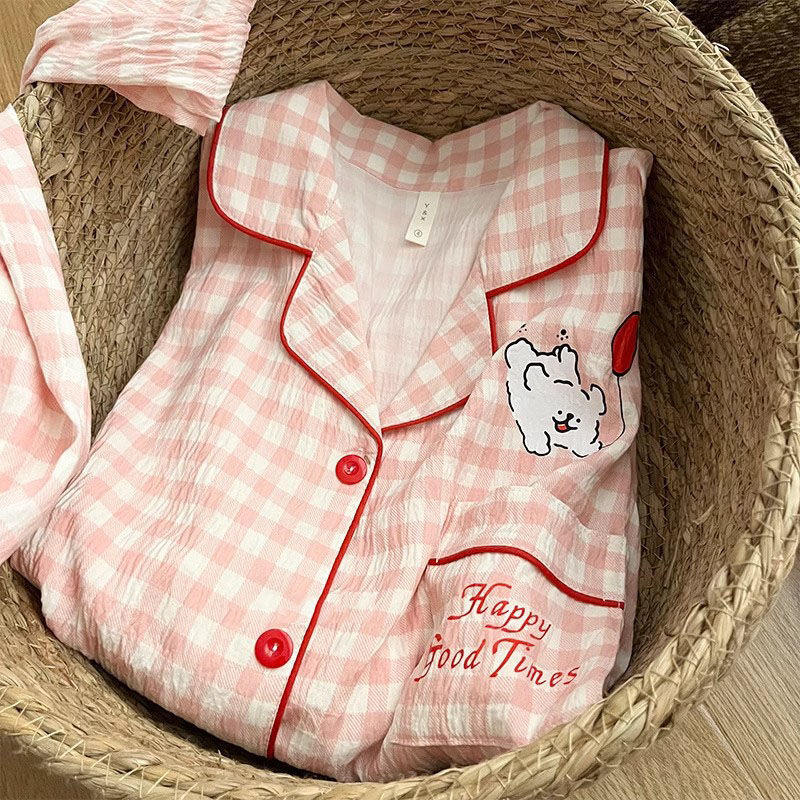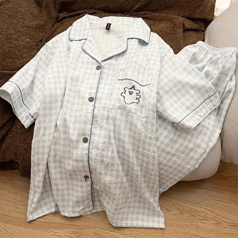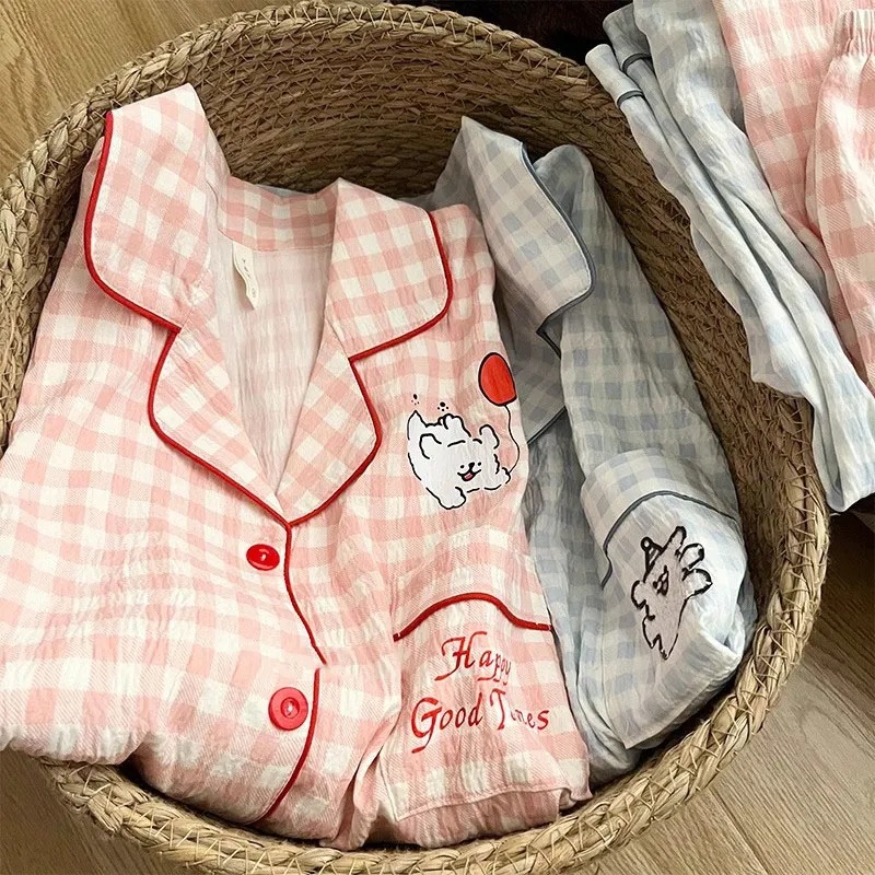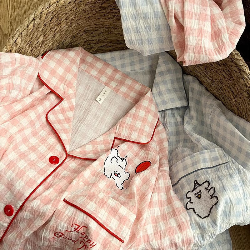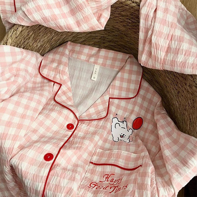 Ins 강아지 잠옷 커플 여름 반팔 반바지 구름 면화 만화 귀여운 느슨한 대형 남성과 여성의 가정 의류
