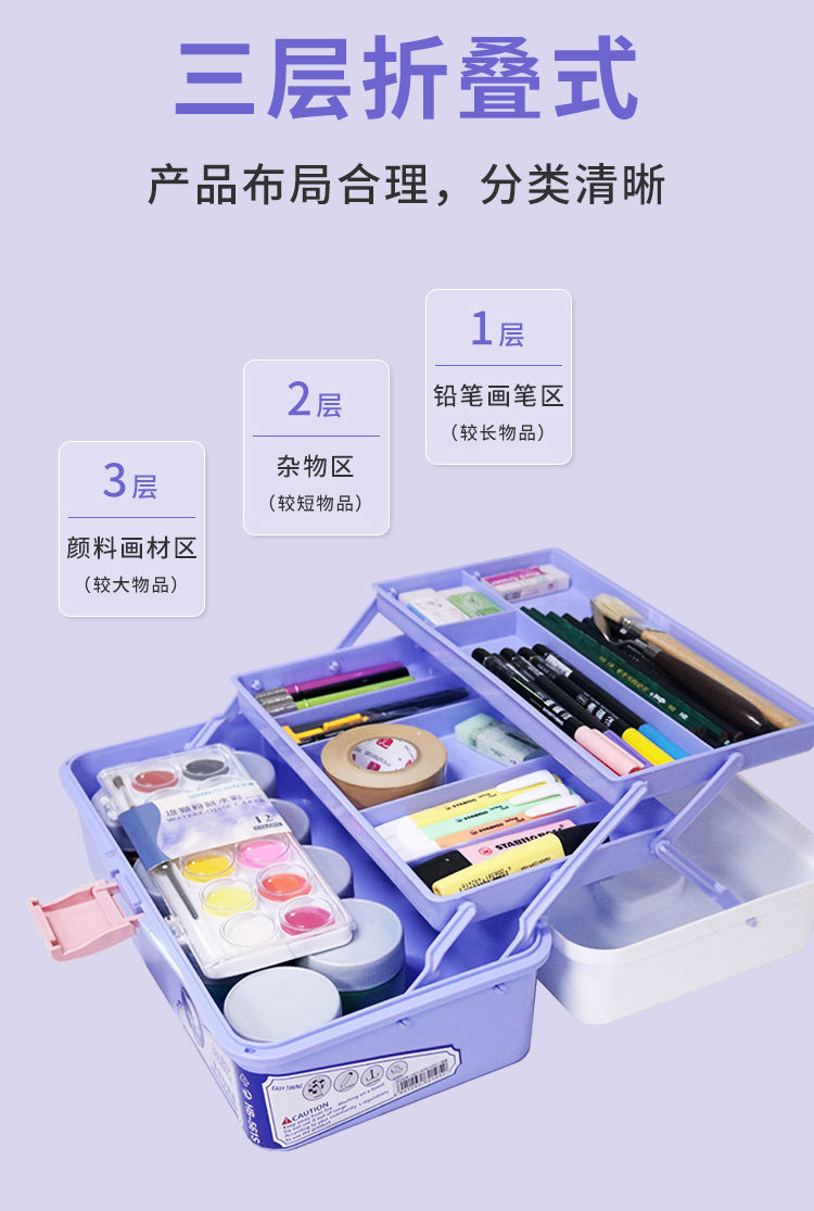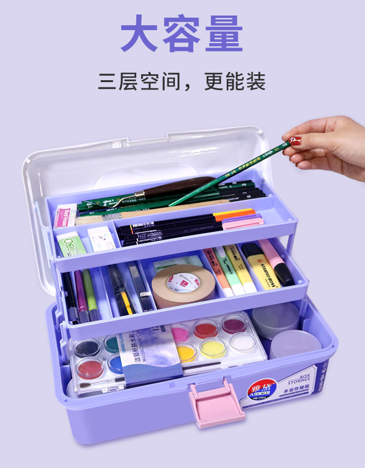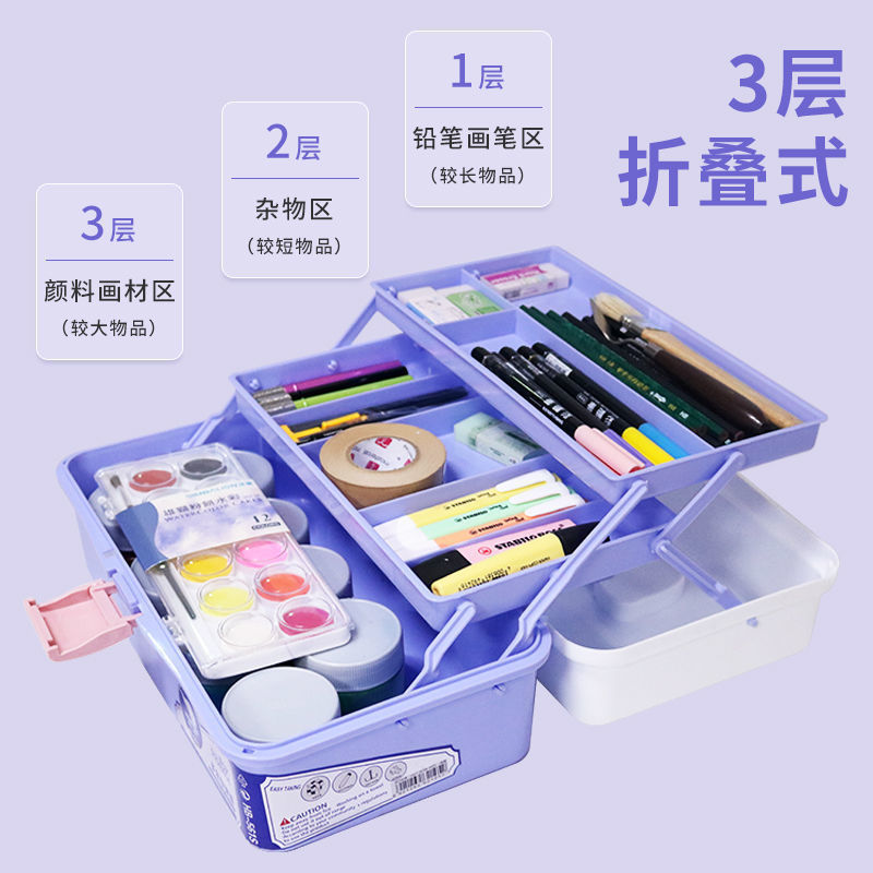 맞춤 제작된 두꺼운 3층 미술용품 수납함, 도구함, 데스크탑 정리함, 문구함, 약통, 물감 및 붓함