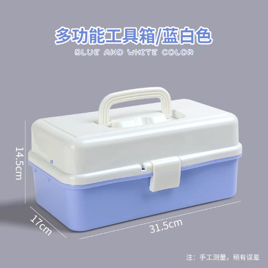 중형 컬러풀한 단색 도구 상자(흰색 + 파란색)