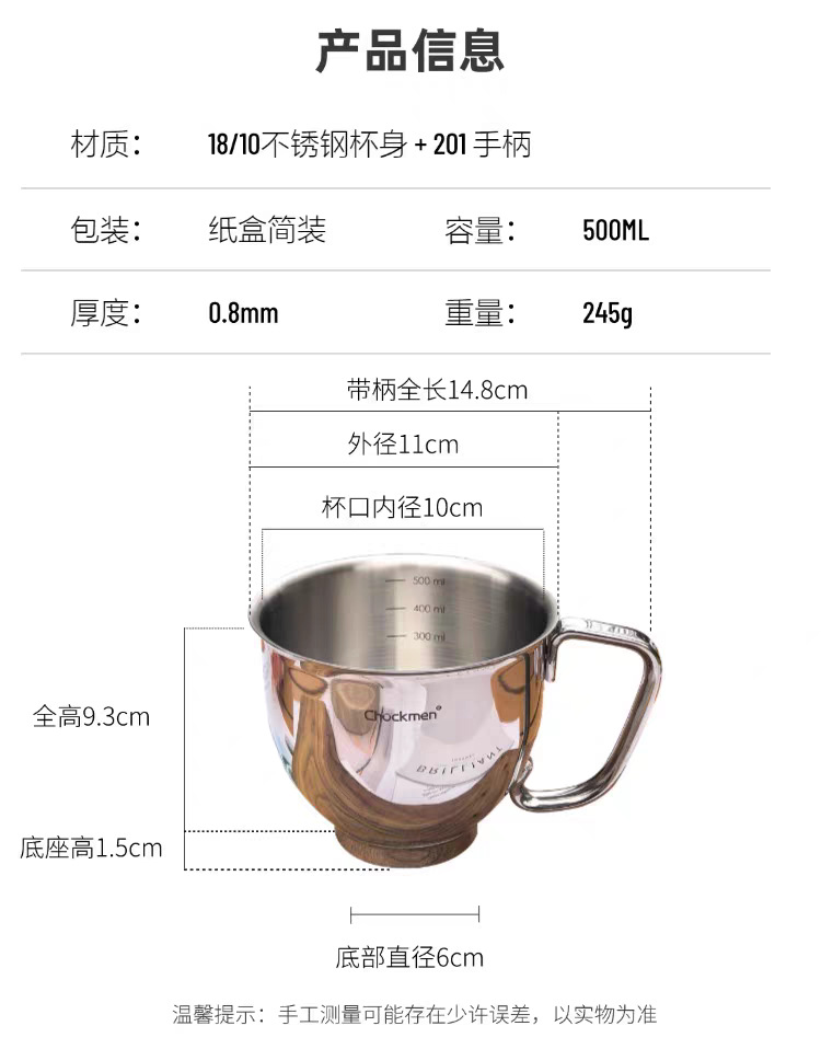 Zhuode Ming Elite 맥주잔 손잡이 포함 10cm 316 스테인레스 스틸