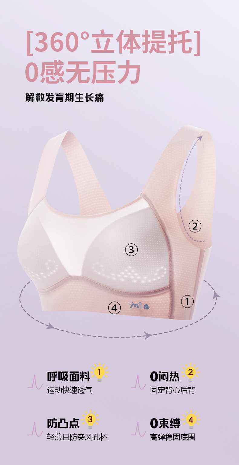2~3단계 청소년 발달기용 스포츠 충격방지 조끼, 통기성 학생 속옷, 가슴 패드가 있는 소녀용 모델