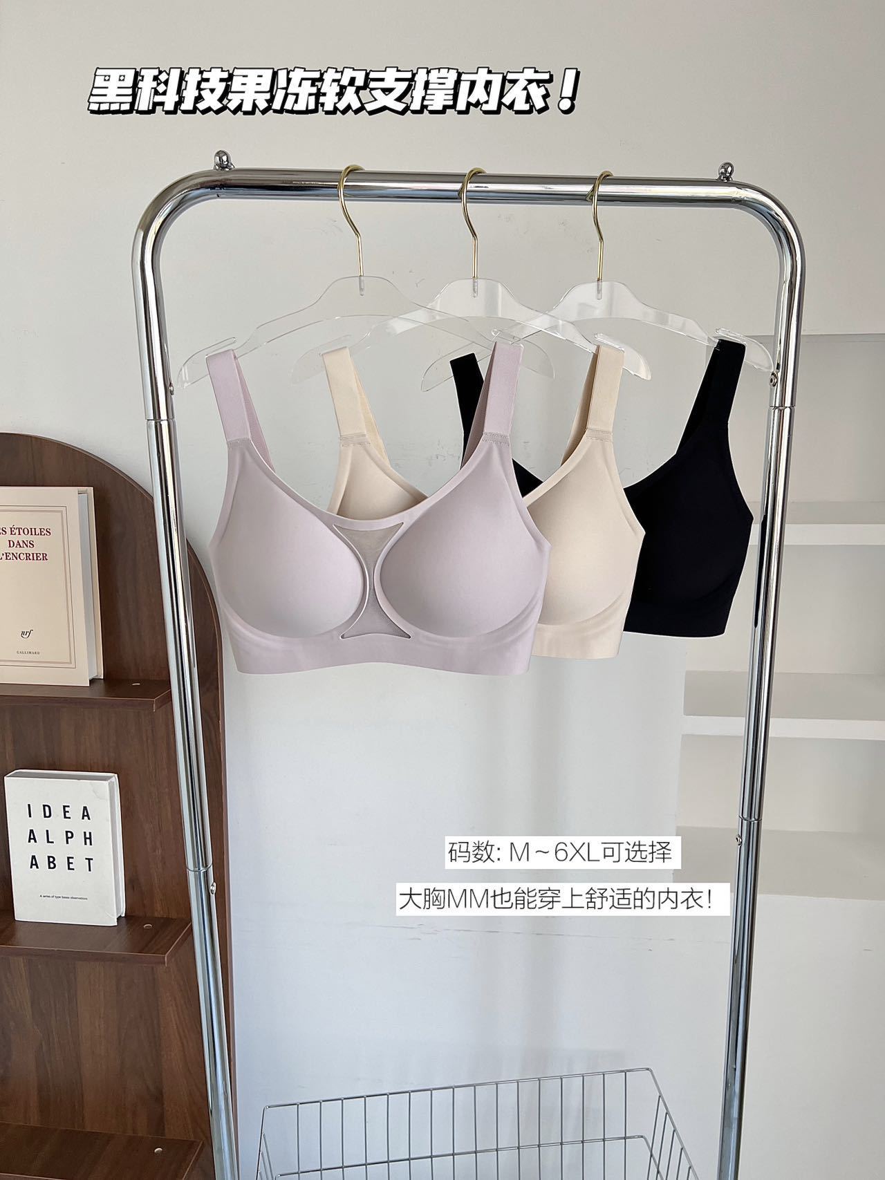 외국 무역 넓은 어깨끈 노라인 여성 속옷, 큰 가슴을 더 작아 보이게 하는 유럽 및 미국 대형 사이즈 젤리 브라, 크로스보더 아마존 브라