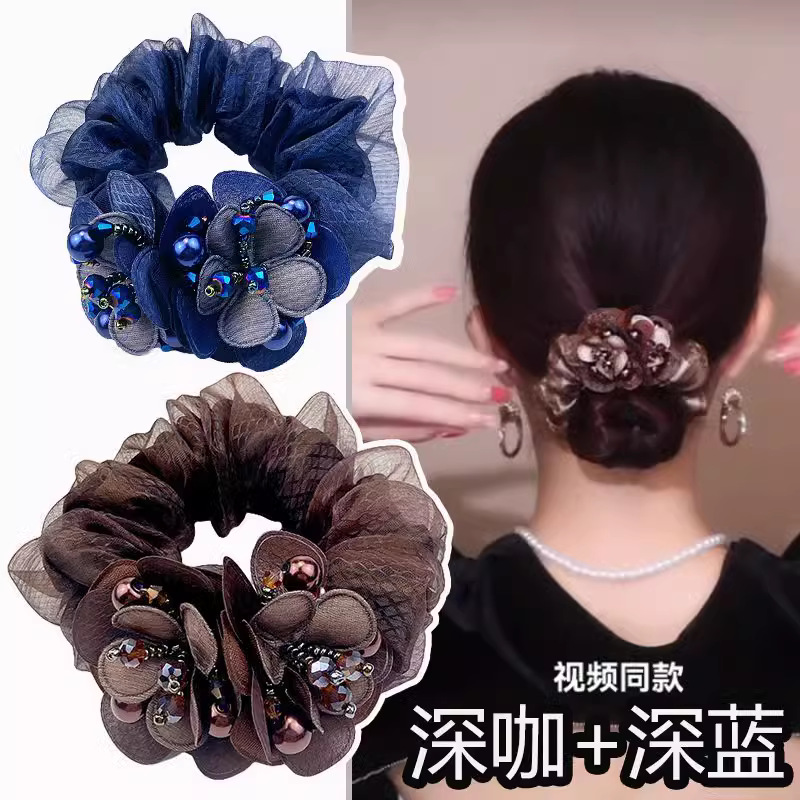고급스러운 머리꽃볼머리, 엄마머리끈, 우아한 꽃머리끈, 머리끈, 고무줄, 고탄성