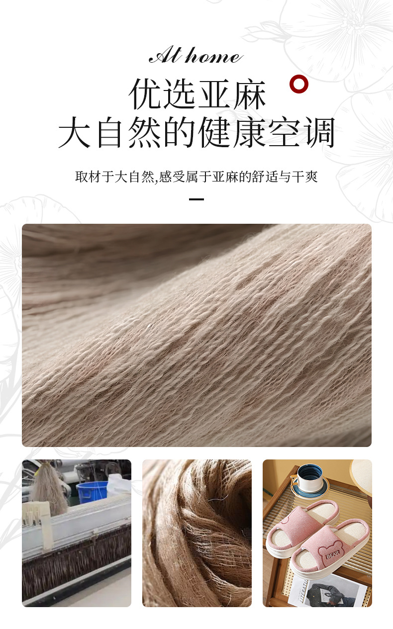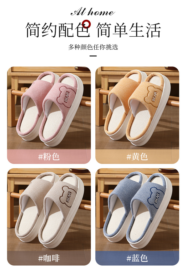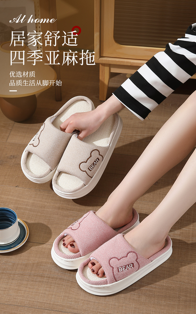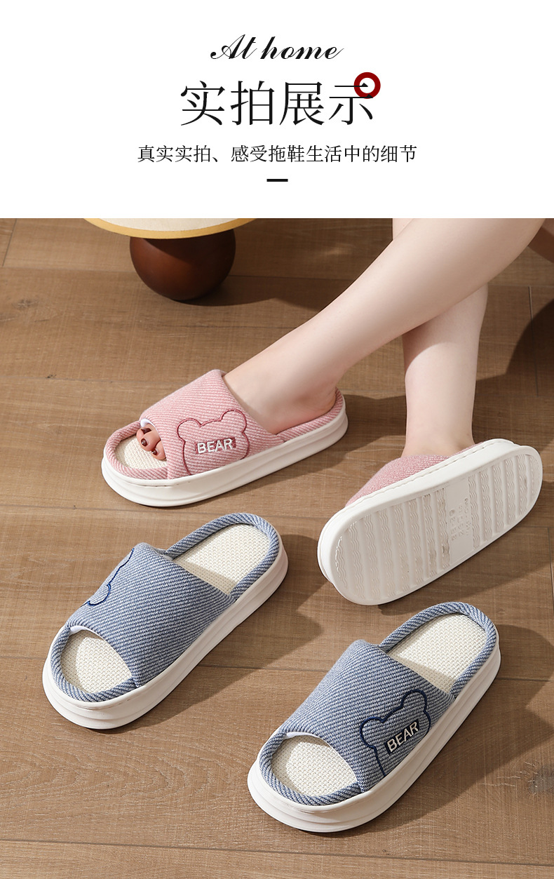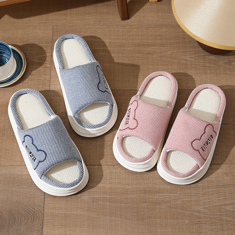 하루, 편안하고 통기성, 조용하고 미끄럼 방지, 사계절 린넨 슬리퍼, 커플 오픈 대마 슬리퍼, 가정용 실내 사계절 슬리퍼