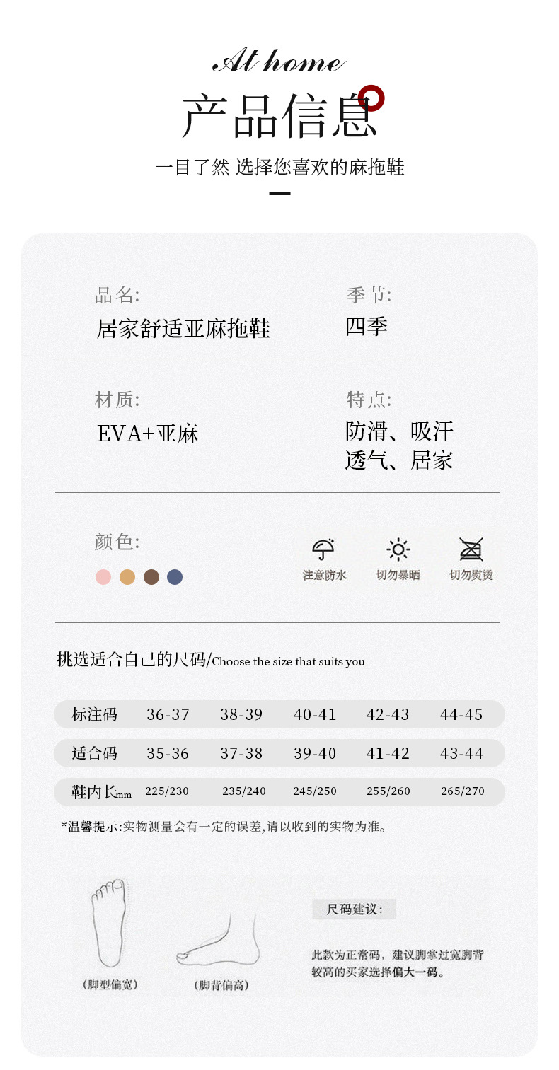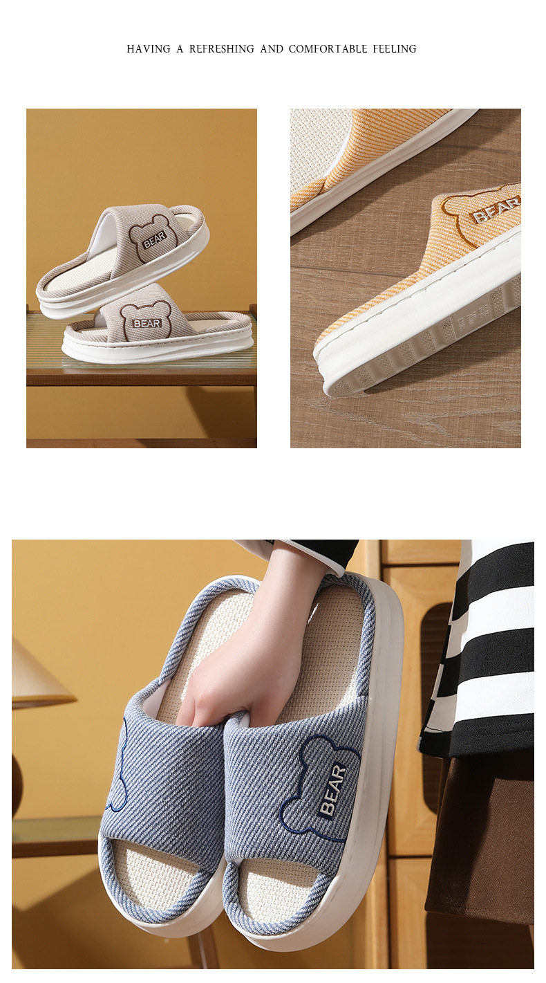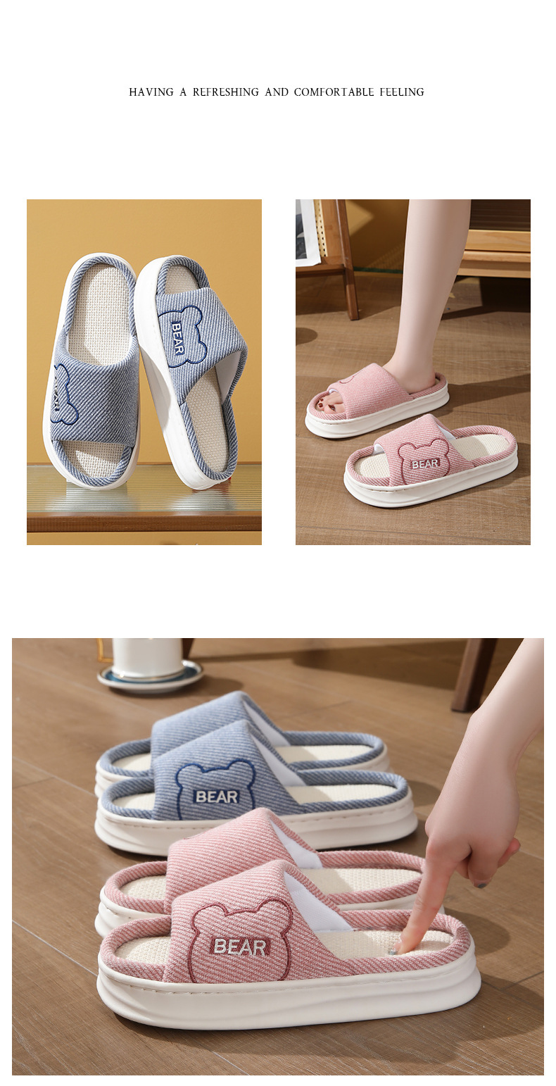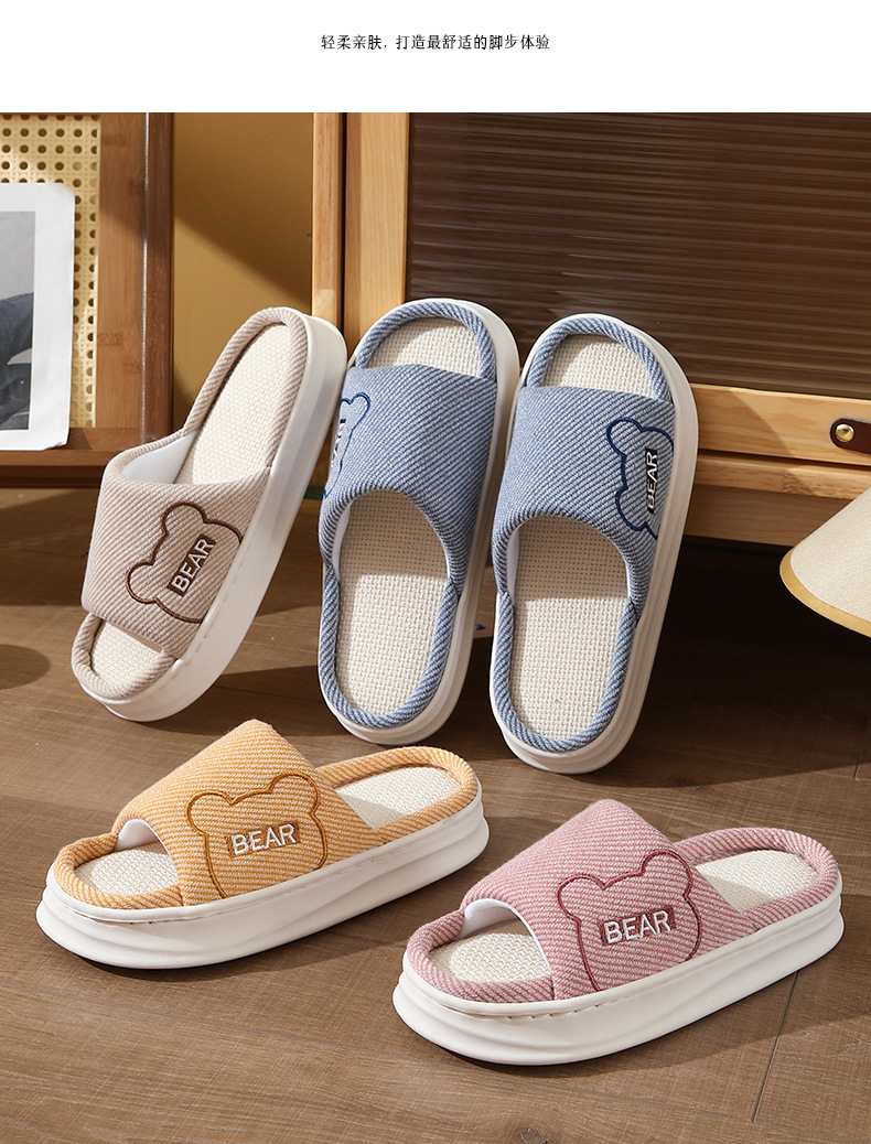 하루, 편안하고 통기성, 조용하고 미끄럼 방지, 사계절 린넨 슬리퍼, 커플 오픈 대마 슬리퍼, 가정용 실내 사계절 슬리퍼