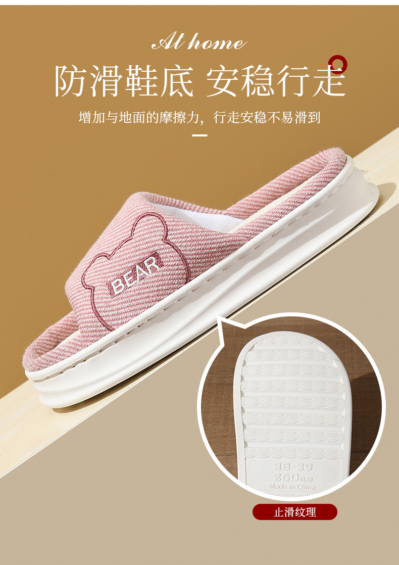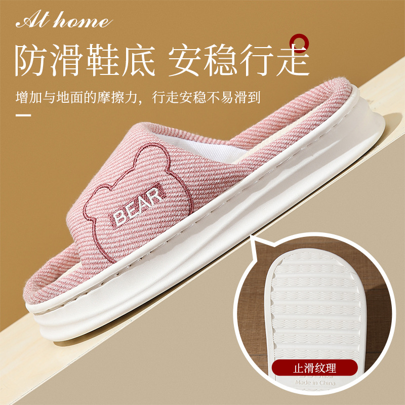 여성용 사계절 린넨 슬리퍼, 봄, 가을 가정용 실내 두꺼운 밑창 미끄럼 방지 편안한 통기성 면 및 린넨 슬리퍼 남성용 여름