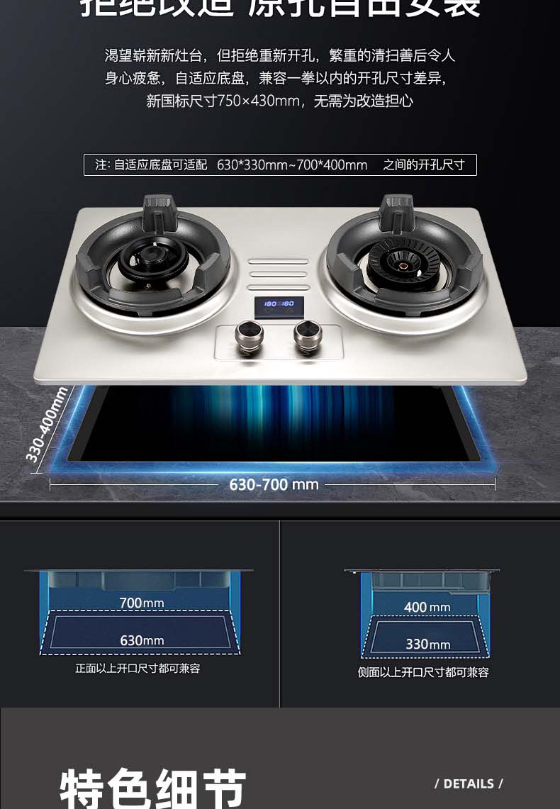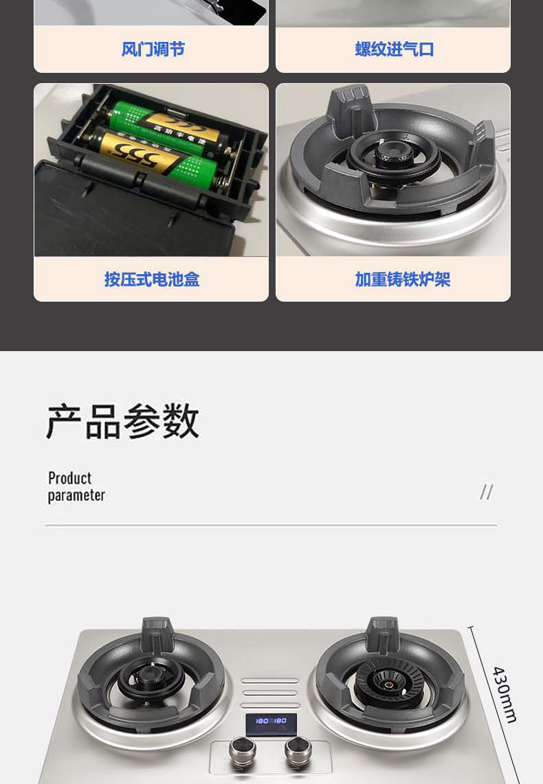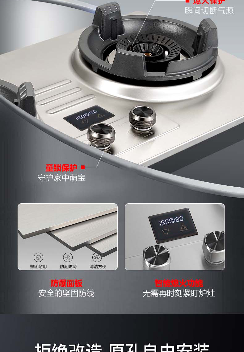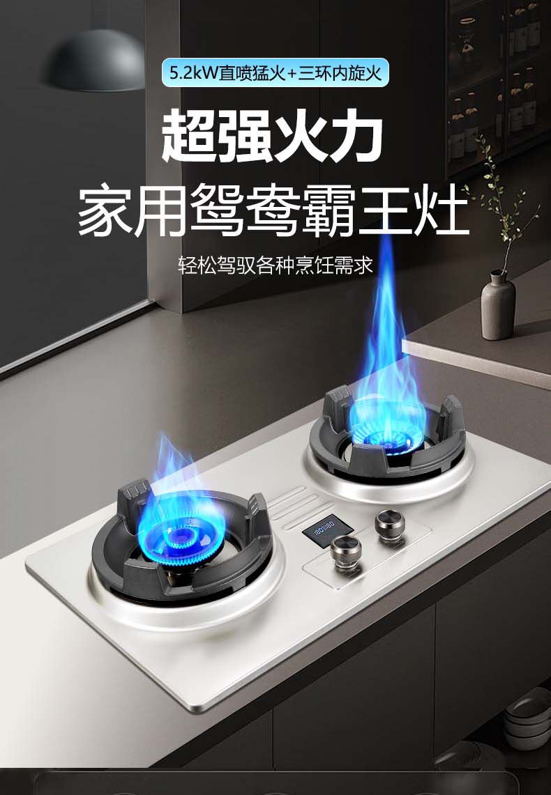 Overlord 강력한 화재 스토브 가정용 가스 스토브 더블 스토브 스테인레스 스틸 천연 가스 액화 가스 스토브 빌라 상업용