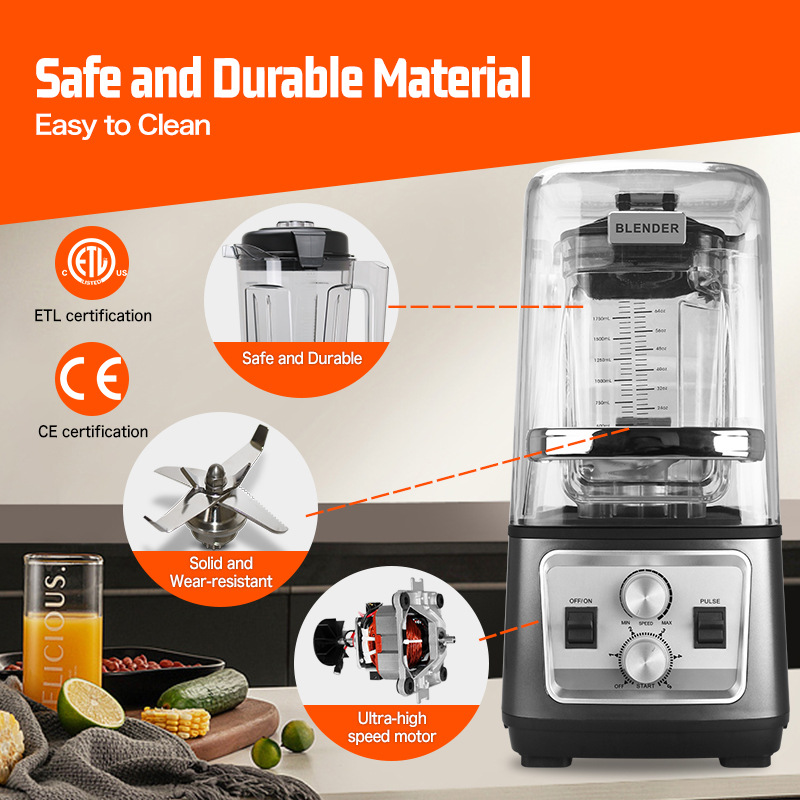 아침 식사 가게 밀크 티 샵 바 상업용 무음 벽 파괴 기계 커버가있는 모래 얼음 믹서 gemat 주방 믹서