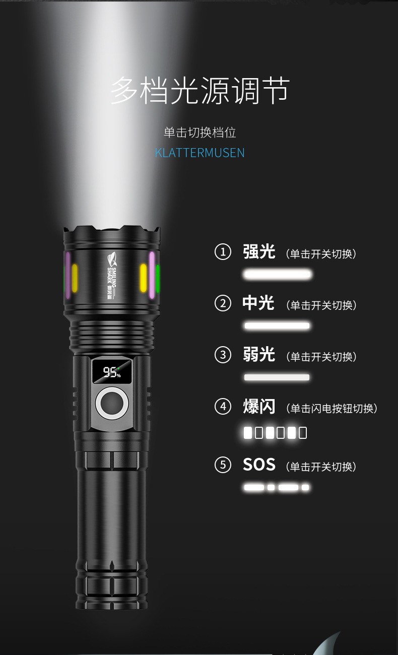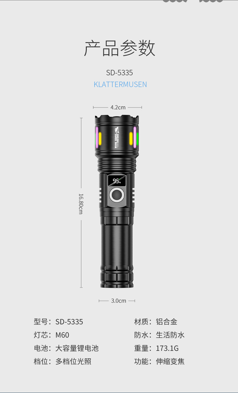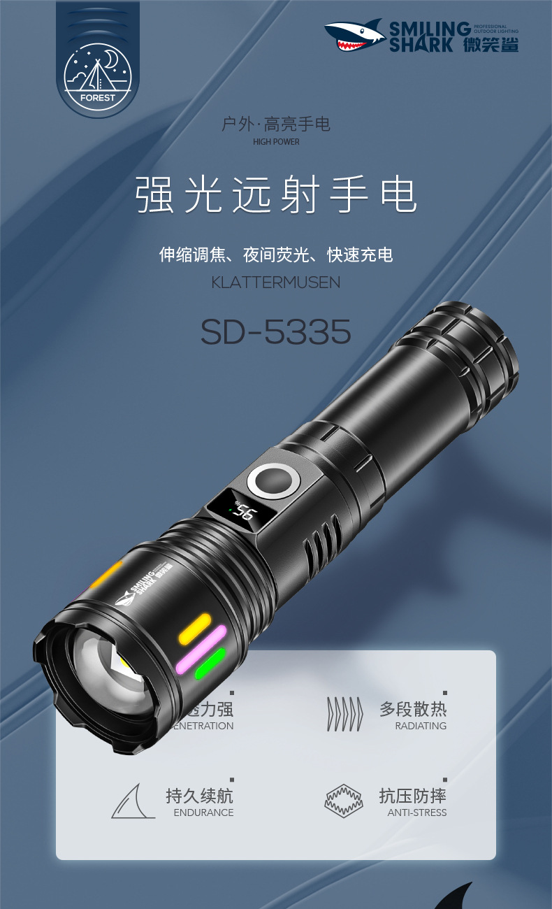 SD-5335 강력광 손전등 [줌 장거리/5단 조명/1200MAH]