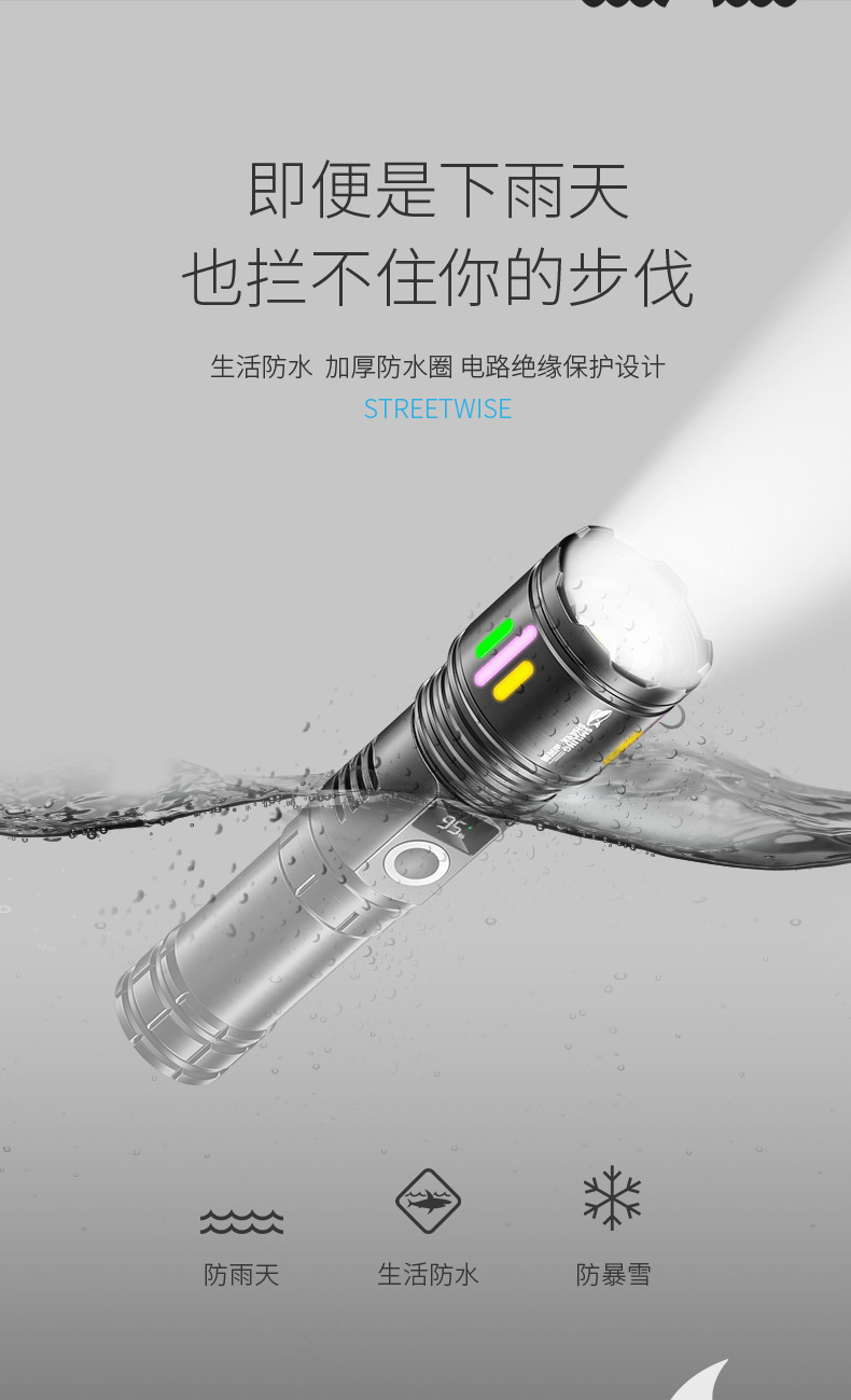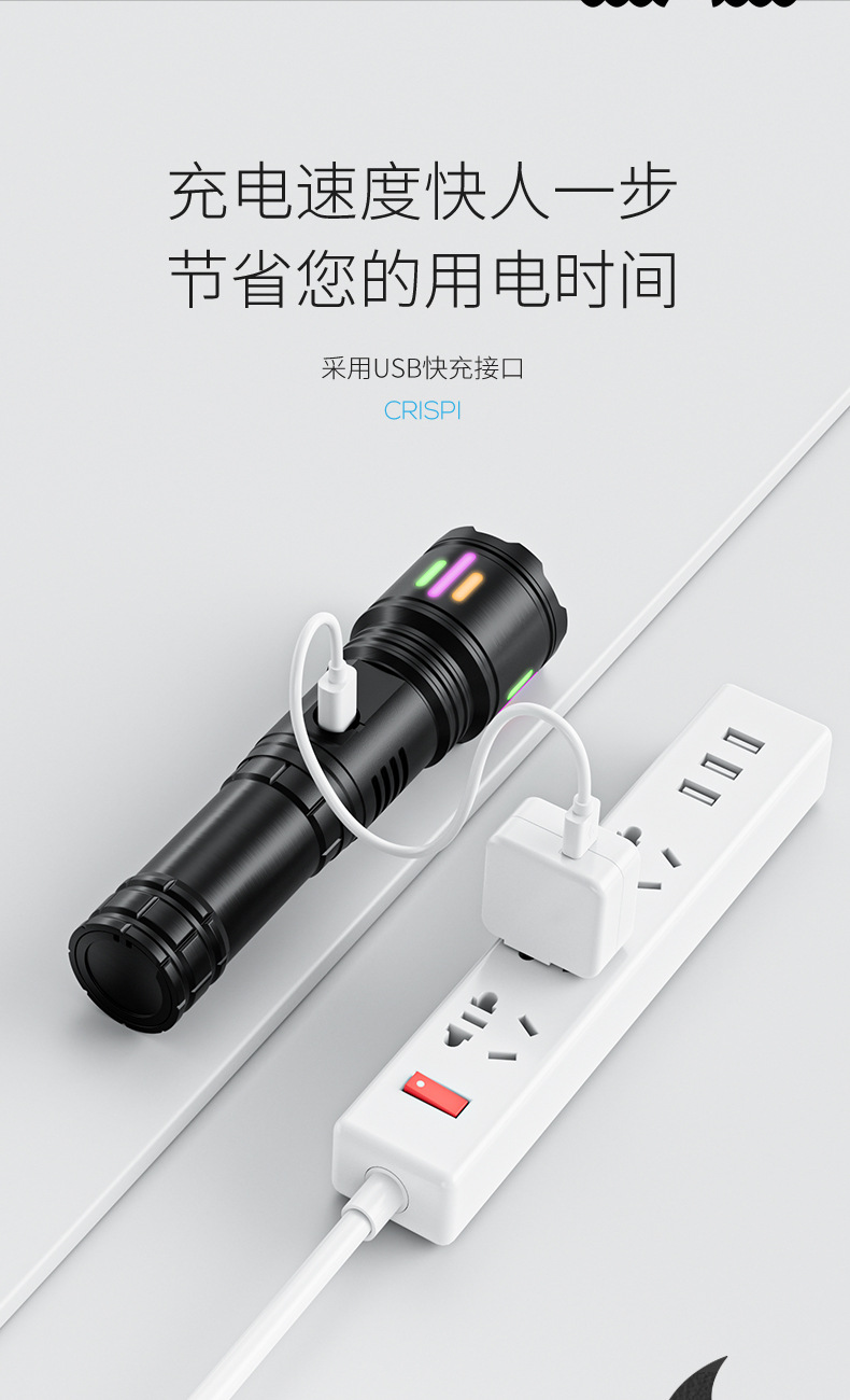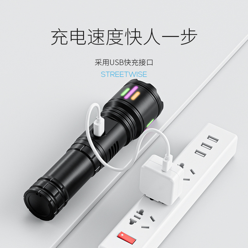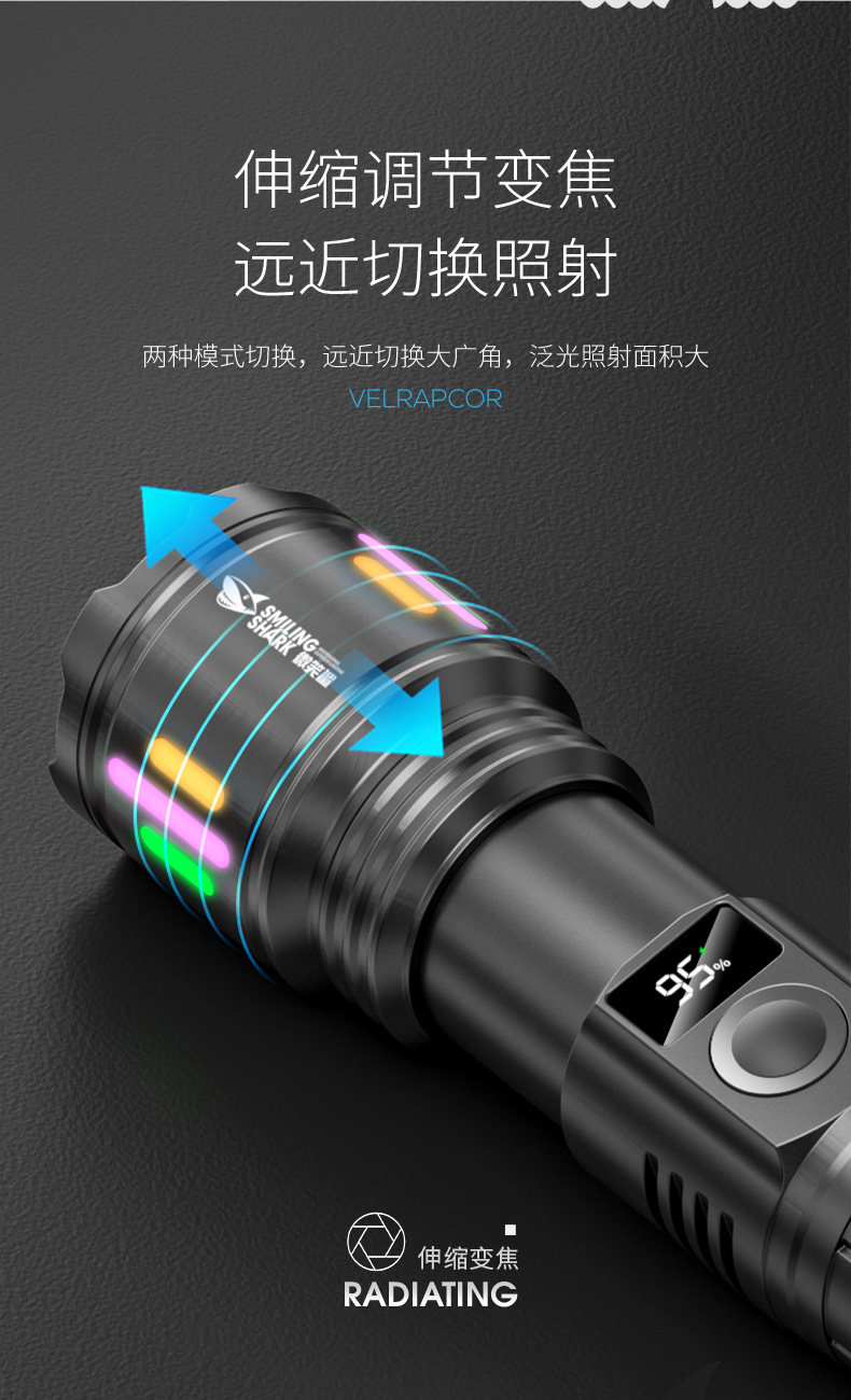 국경 간 새로운 야외 조명 강한 빛 손전등 충전식 대용량 배터리 수명 텔레스코픽 줌 5단 조절 홈