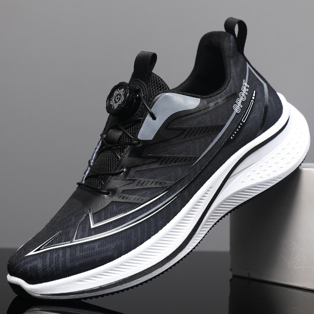남성 신발 얼음 실크 메쉬 통기성 운동화 여름 미끄럼 방지 충격 흡수 초경량 회전 버튼 트렌디 조깅 스니커즈