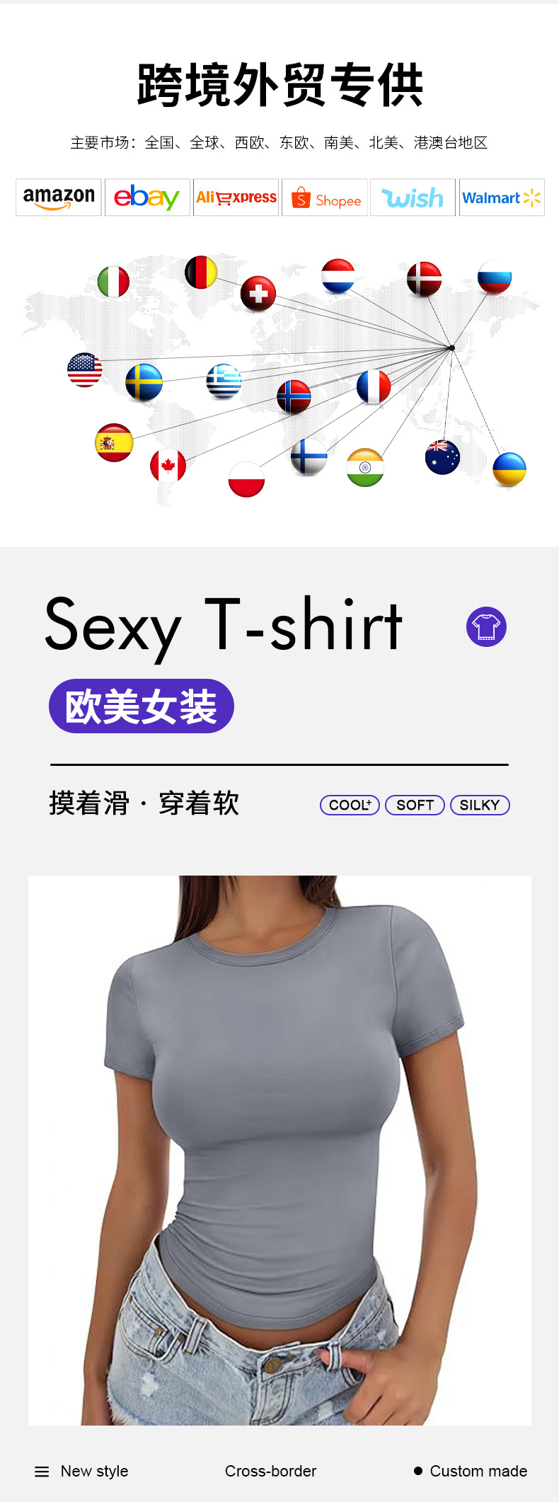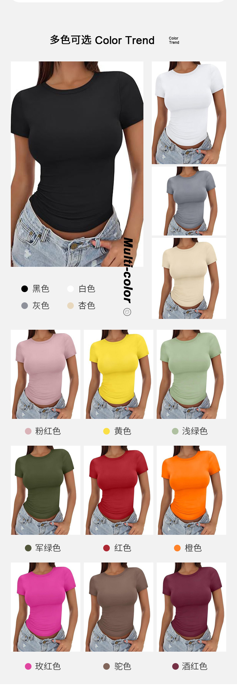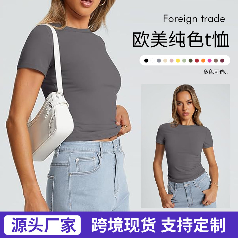 Amazon 2025 크로스보더 유럽과 미국 스타일의 배꼽 노출 반팔 여성 티셔츠 여름 꽉 패션 슬리밍 탑 여성 의류