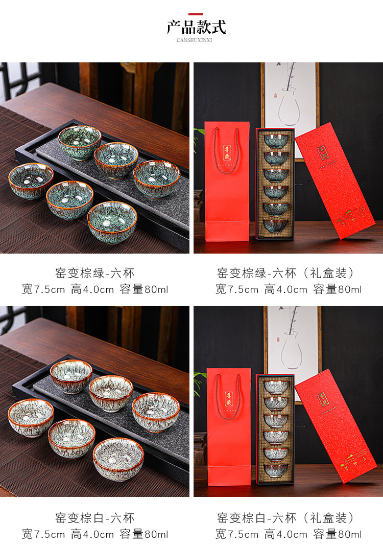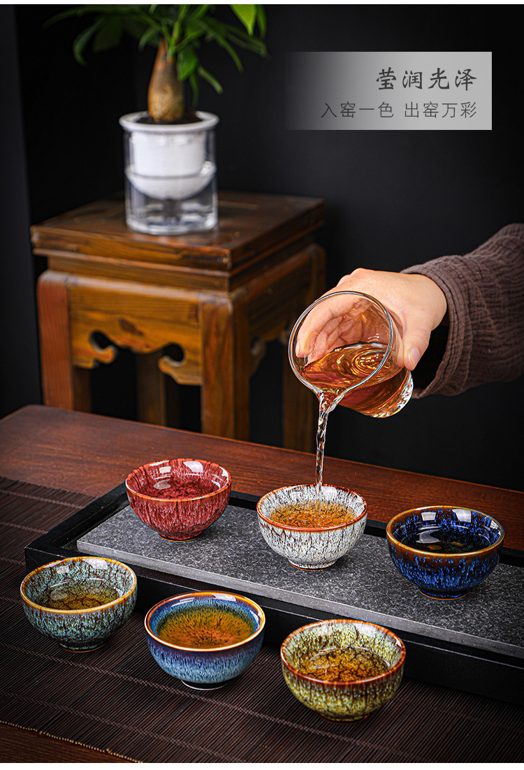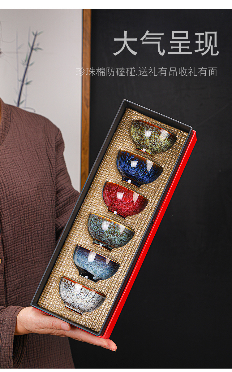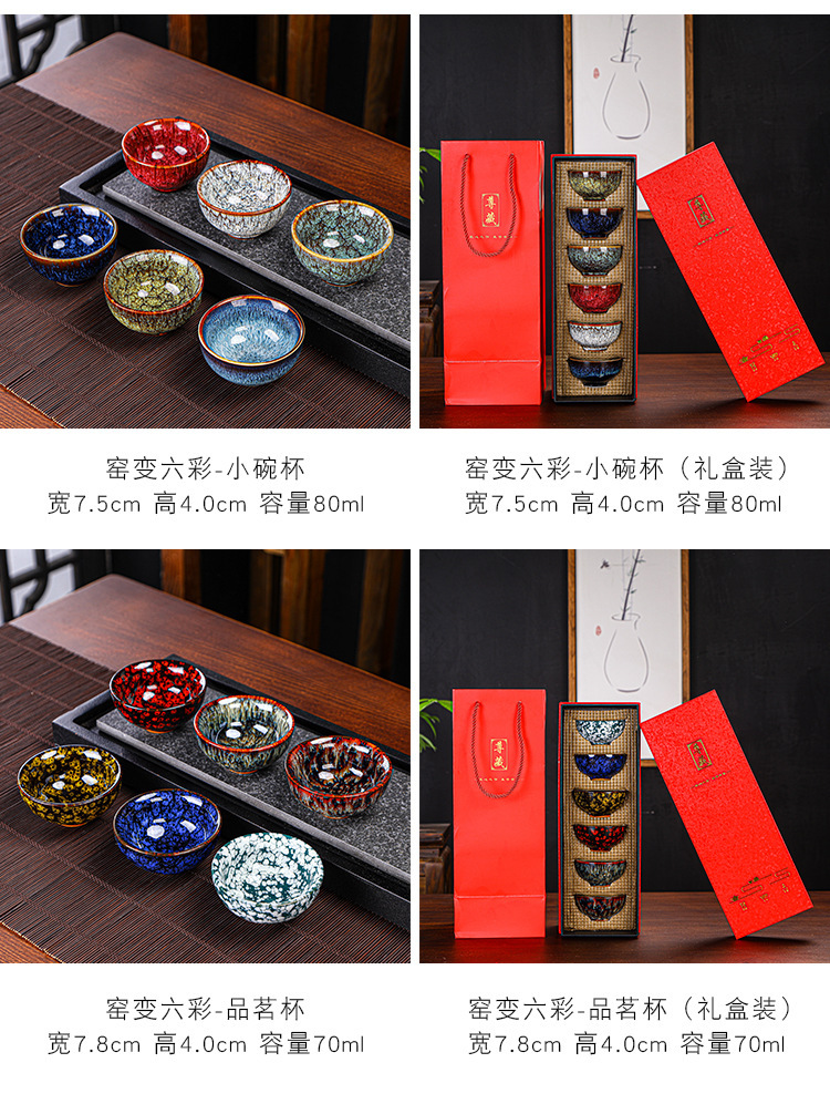 Tianmu 점 오븐에서 6개의 단일 찻잔으로 변환, 세라믹 다채로운 차 점, 6색 가정용 차 마시는 작은 차 그릇 선물 상자