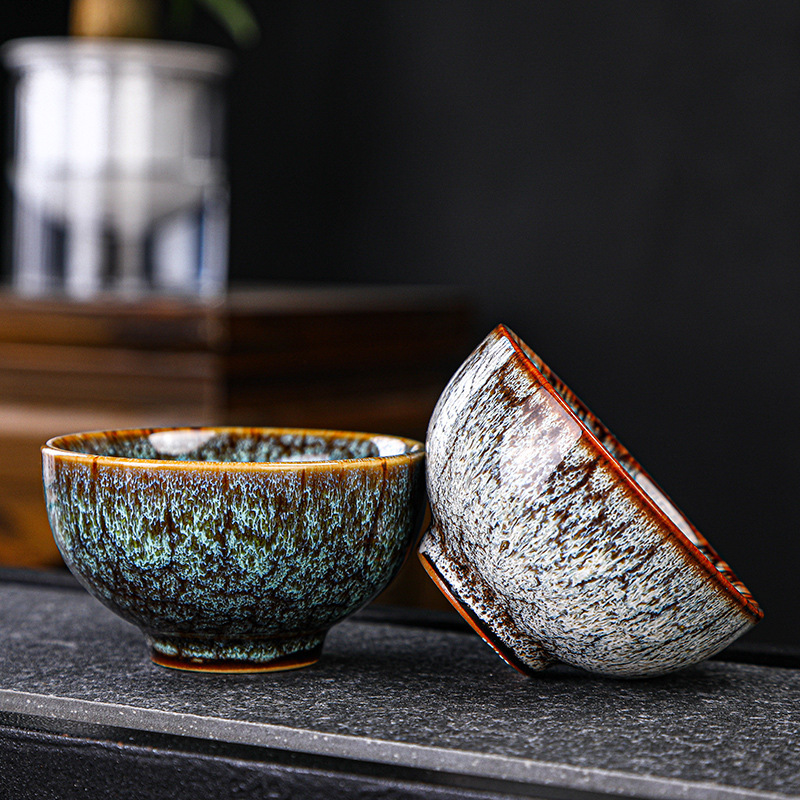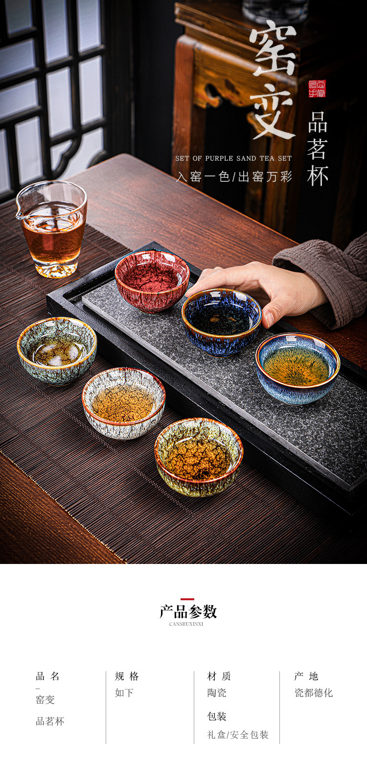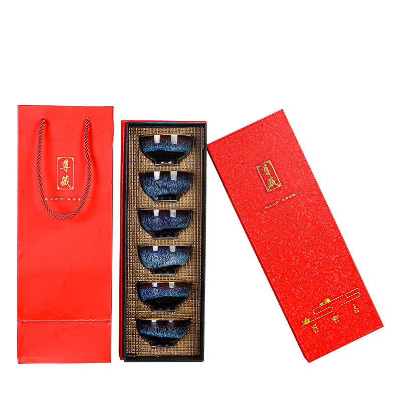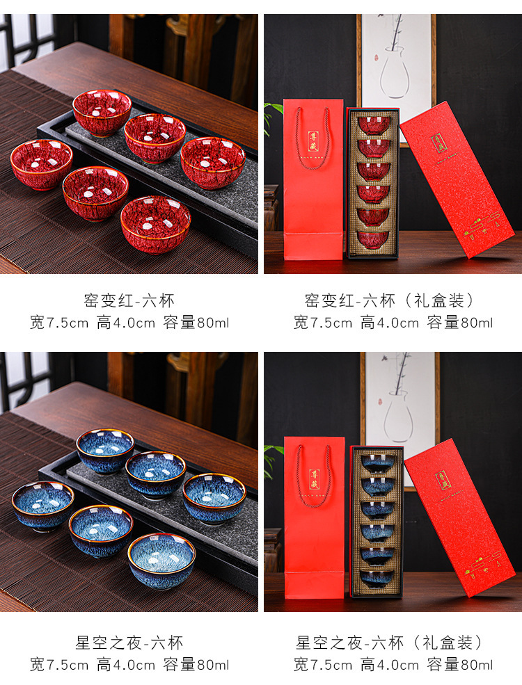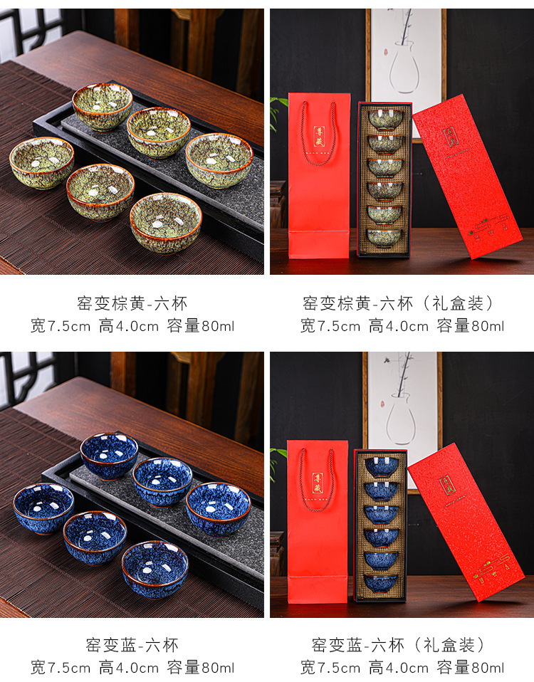 Tianmu 점 오븐에서 6개의 단일 찻잔으로 변환, 세라믹 다채로운 차 점, 6색 가정용 차 마시는 작은 차 그릇 선물 상자
