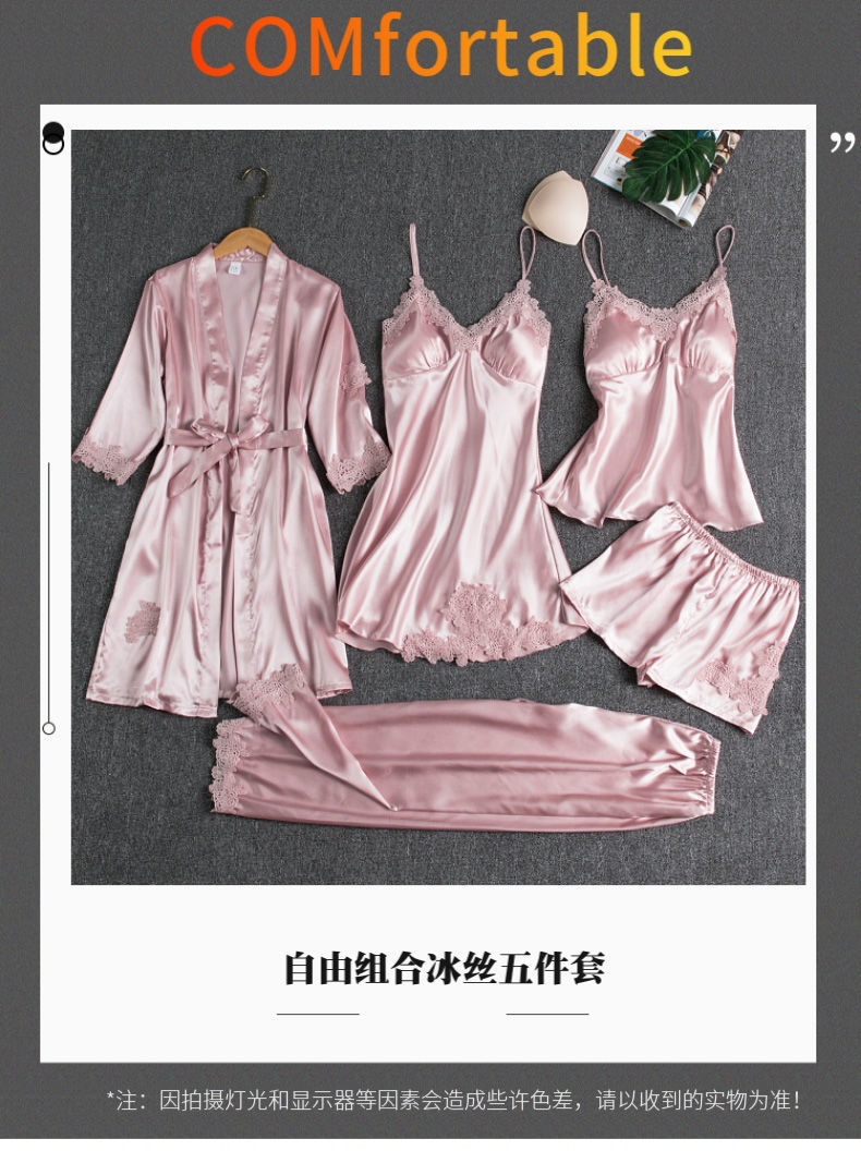 여성용 잠옷 여름 얼음 실크 섹시하고 뜨거운 성인 봄, 가을 긴팔 얇은 여성용 잠옷 5 피스 세트 멀티 컬러