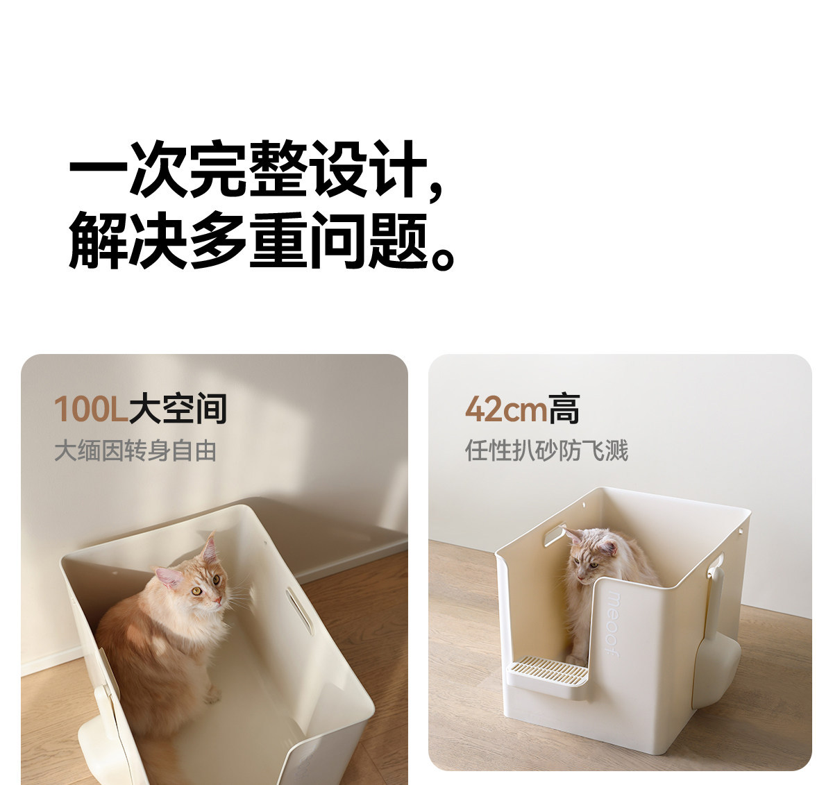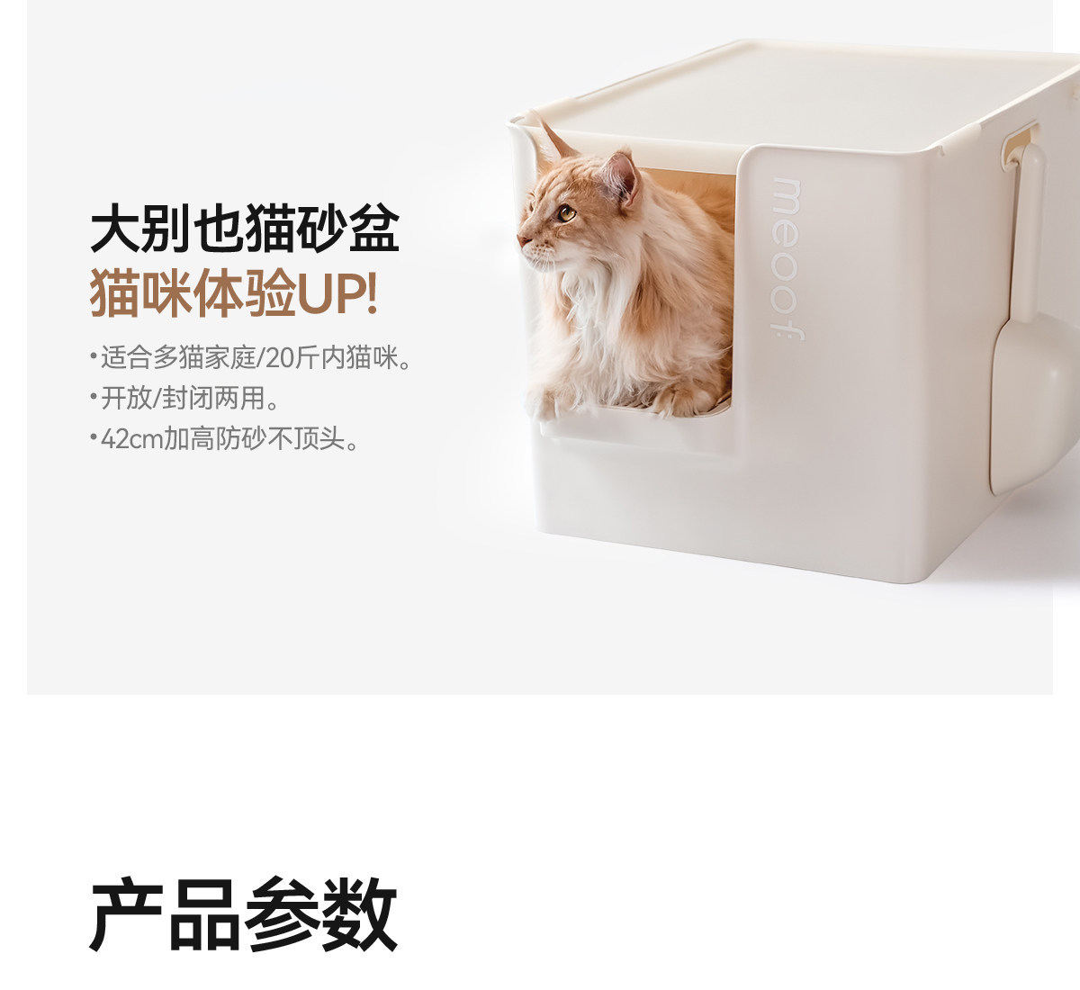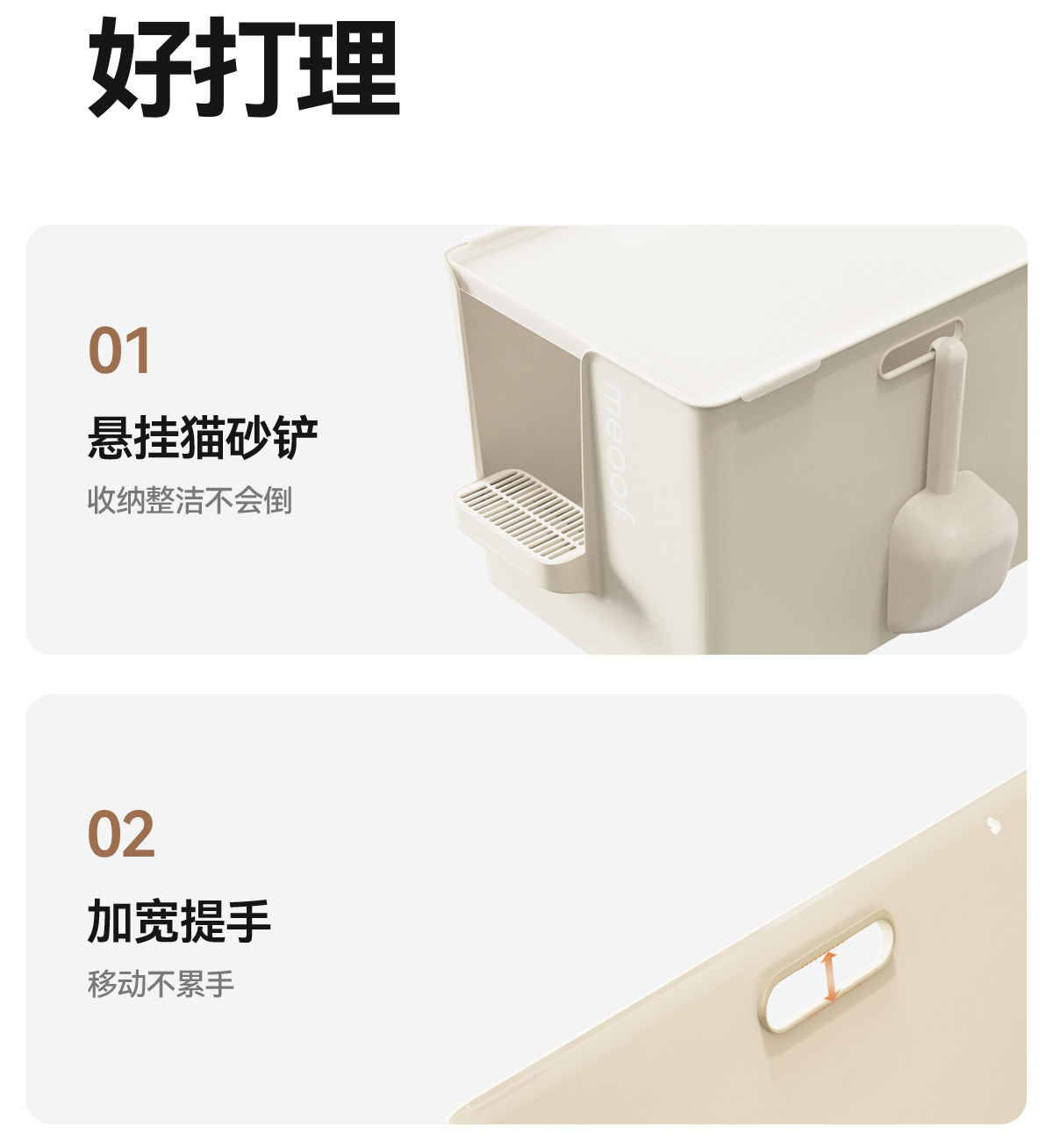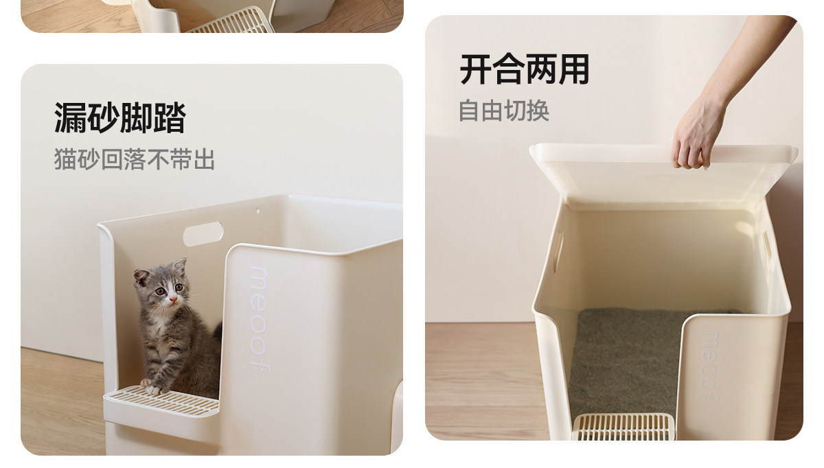 미오프 반밀폐형 초대형 고양이 화장실, 깊이가 큰 모래 흩날림 방지 고양이 화장실