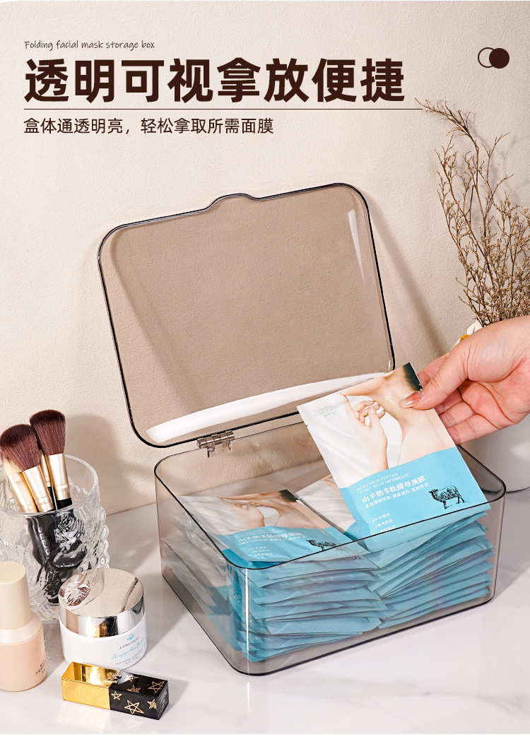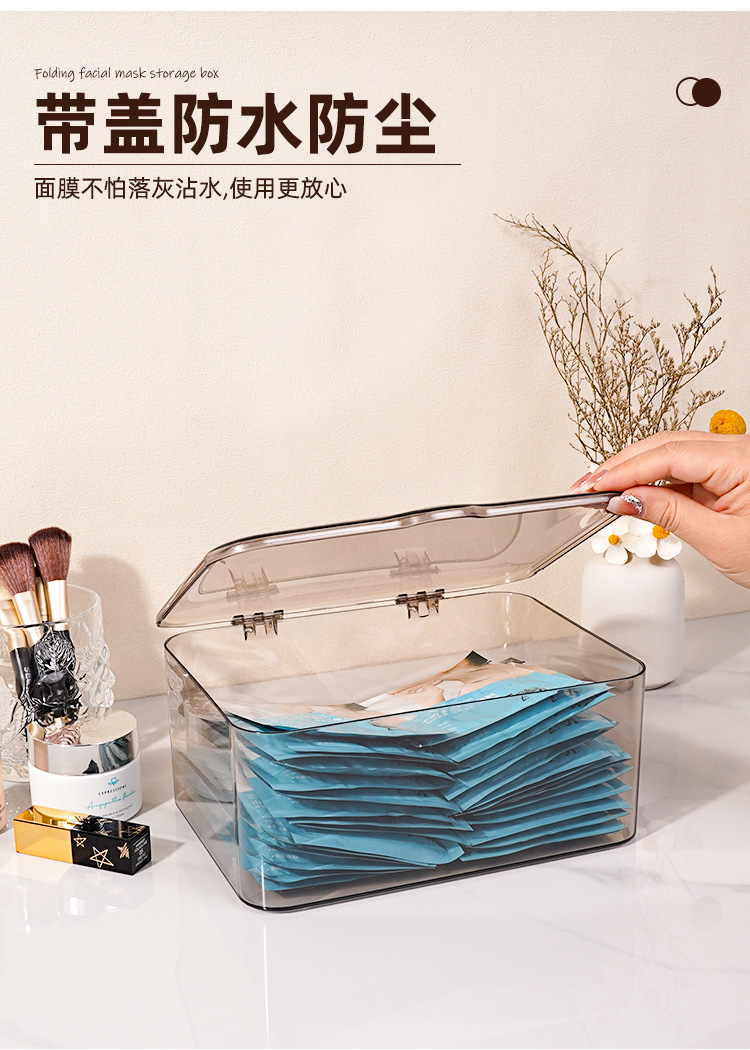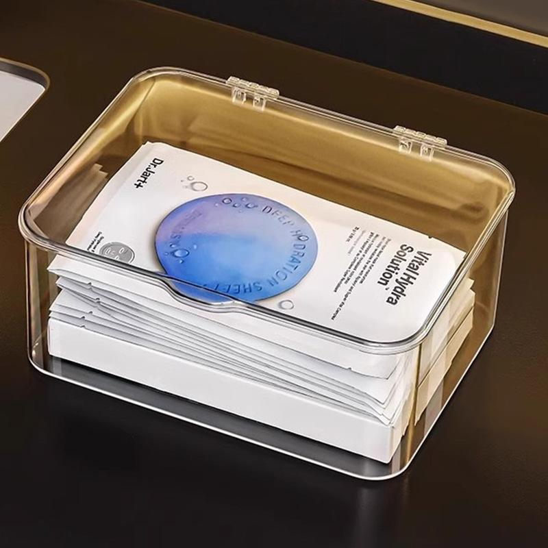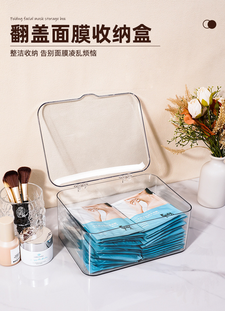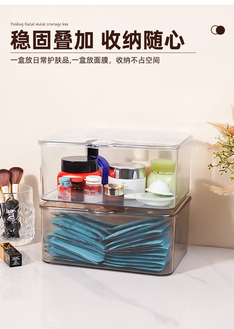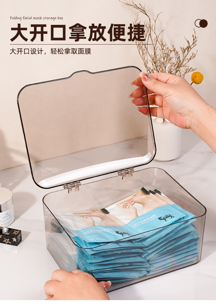 화장품 보관 상자 데스크탑 드레싱 테이블 정리 가정용 세면 용품 마스크 투명 대용량 보관 상자 (뚜껑 포함)