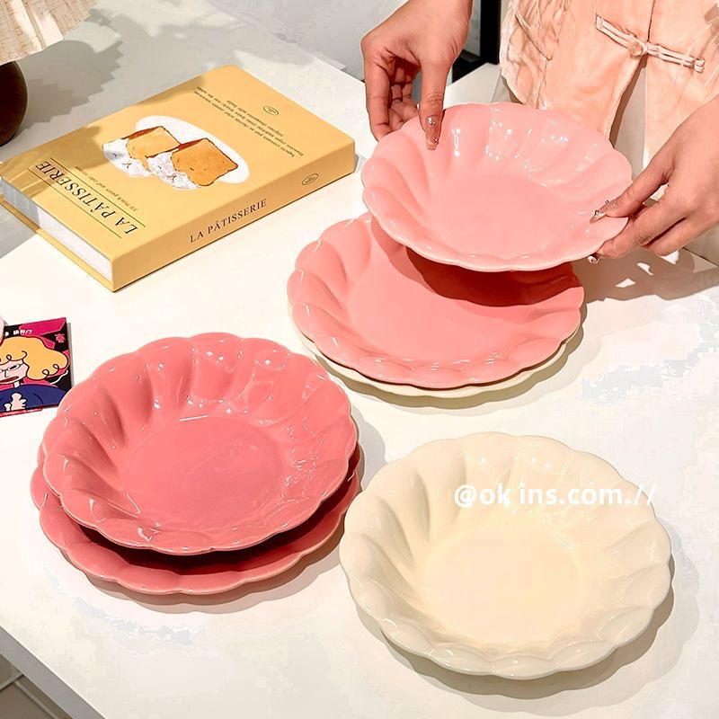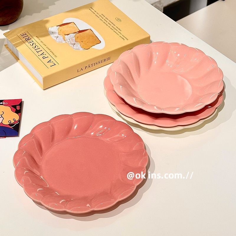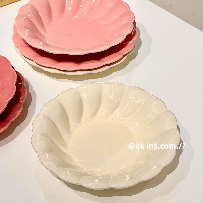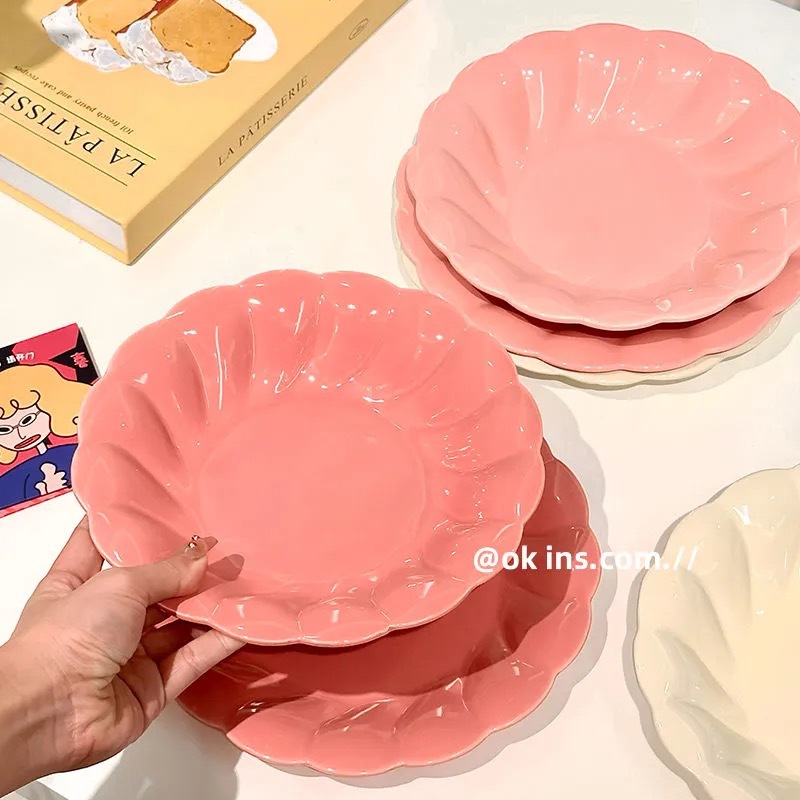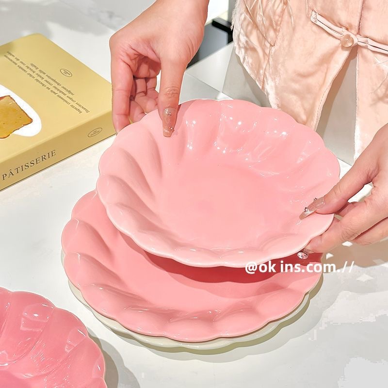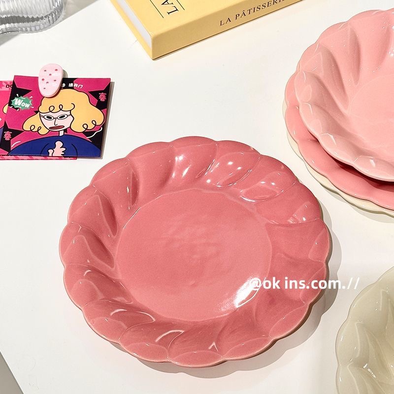 Ins 스타일 꽃 바람 소녀 하트 세라믹 식기 underglaze 컬러 가정용 접시 접시 저녁 식사 접시 8inch 핑크