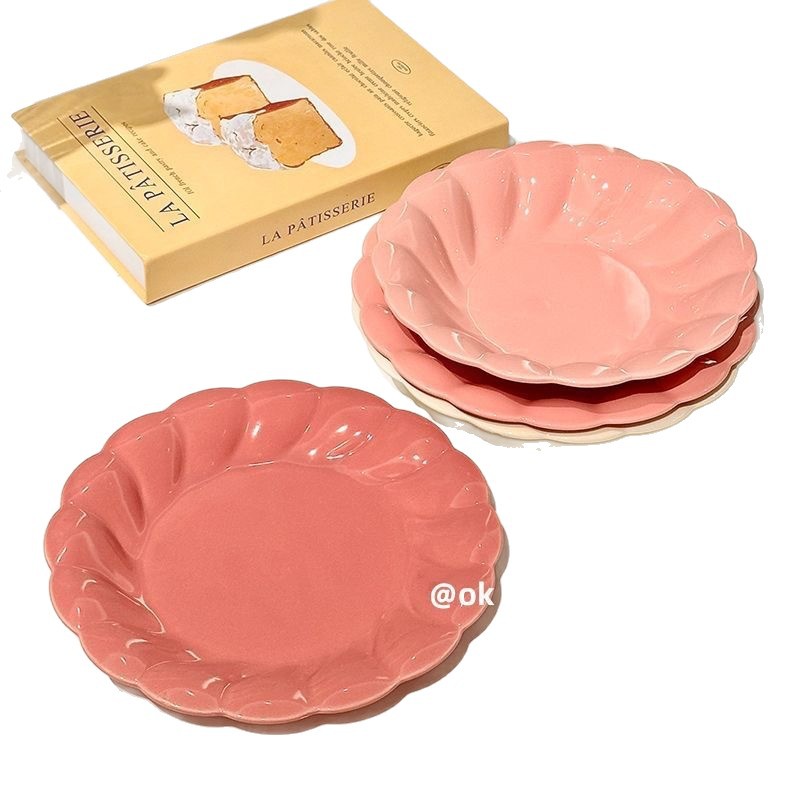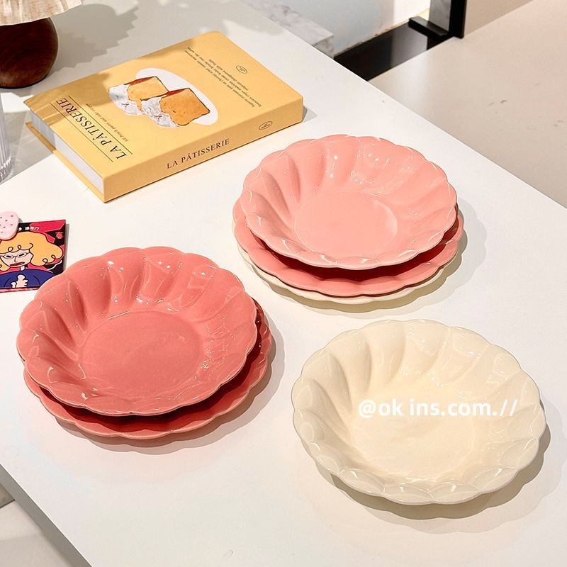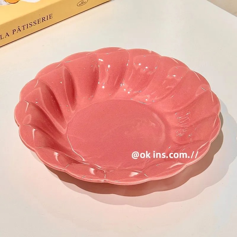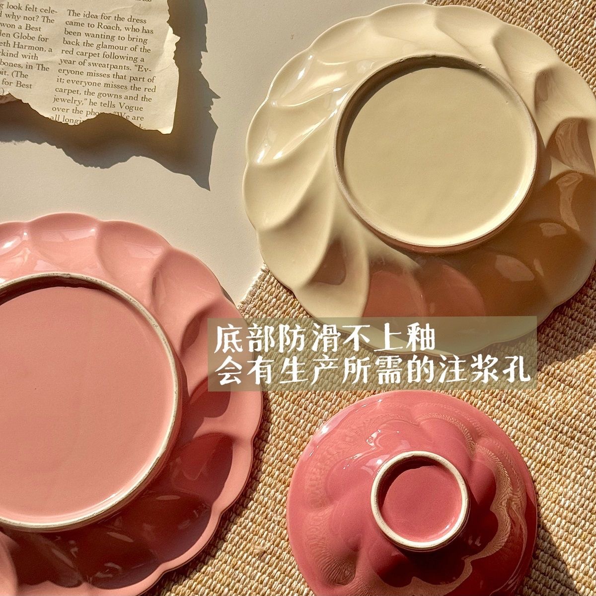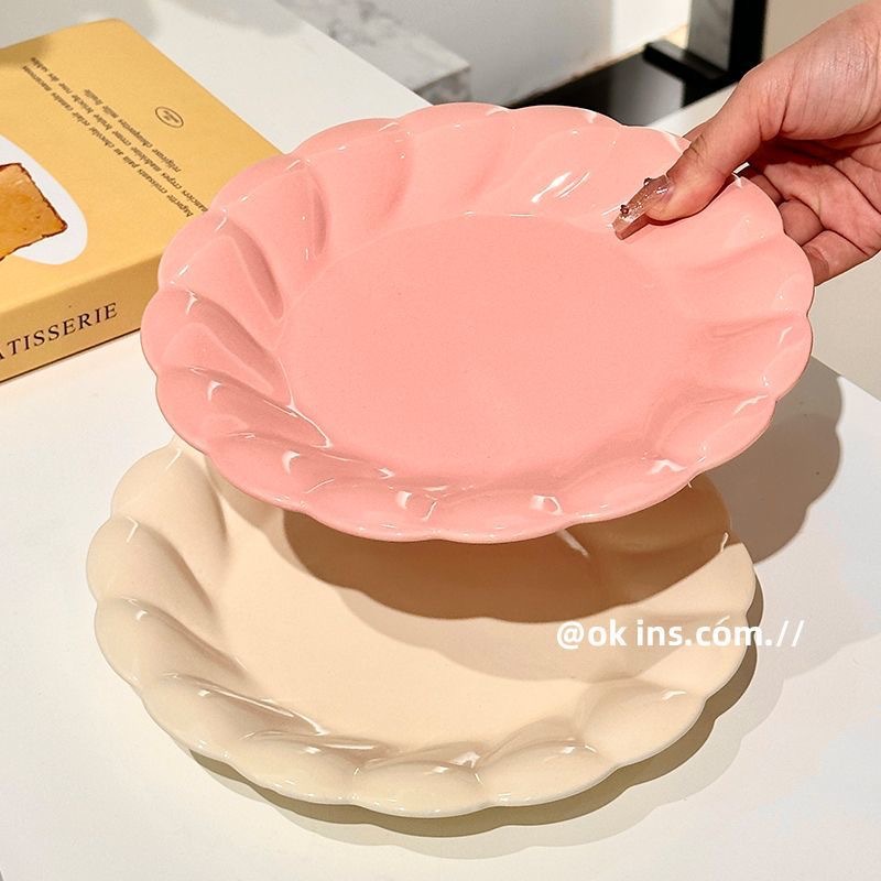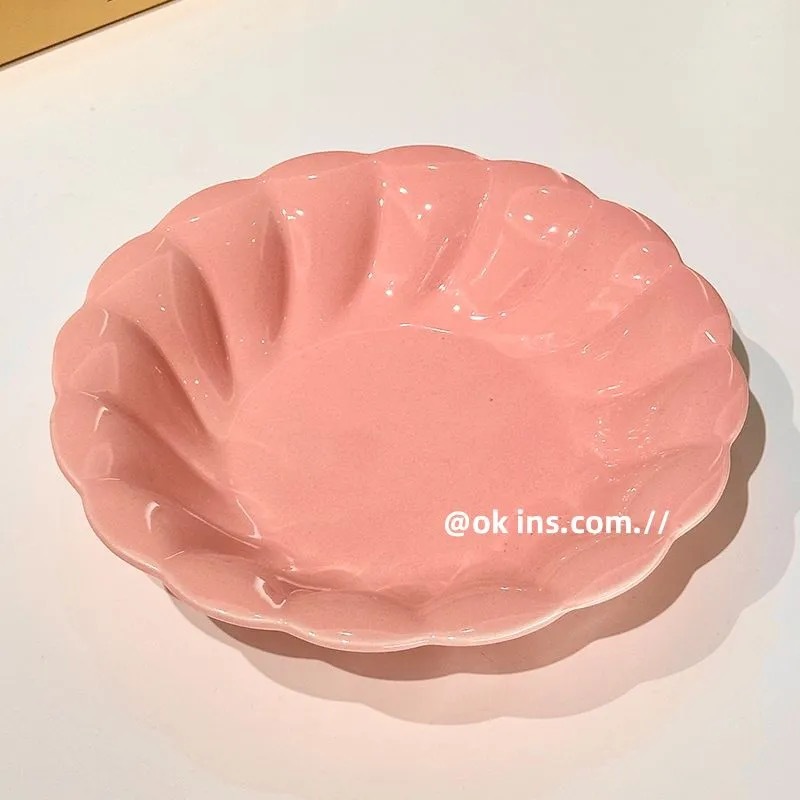 Ins 스타일 꽃 바람 소녀 하트 세라믹 식기 underglaze 컬러 가정용 접시 접시 저녁 식사 접시 8inch 핑크