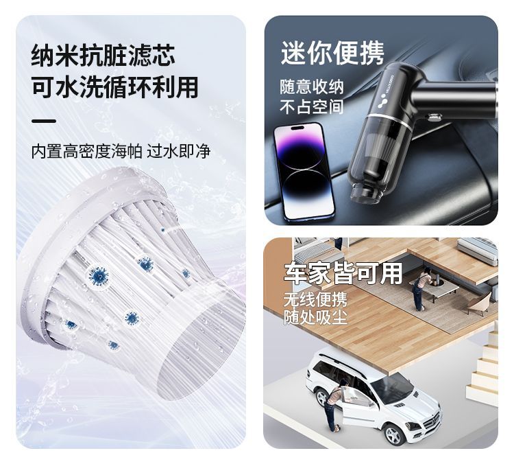 자동차 진공 청소기 집진기 무선 충전 자동차 자동차 자동차 작은 휴대용 고출력