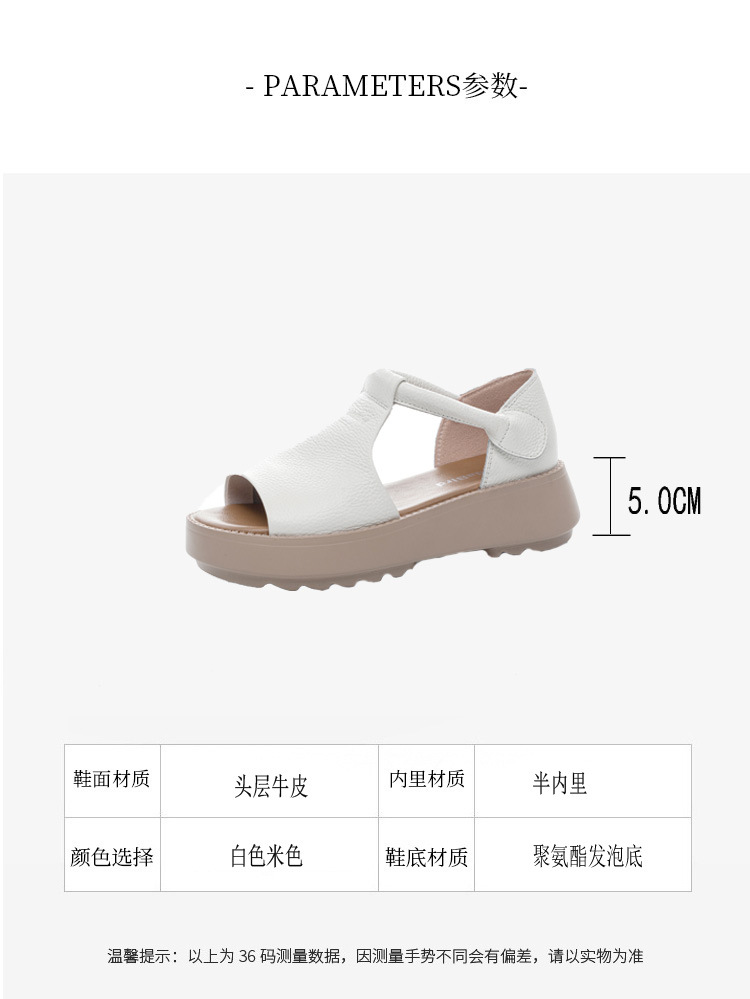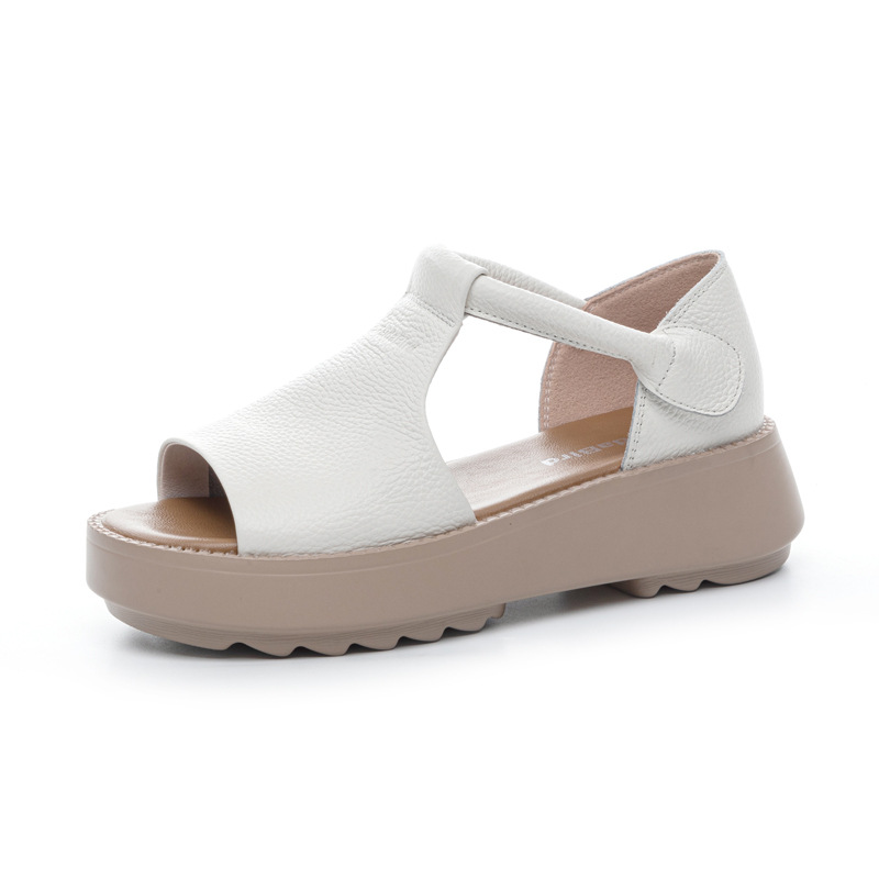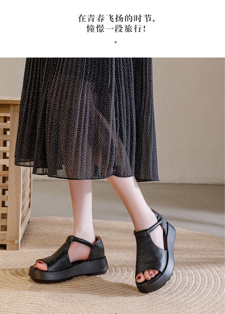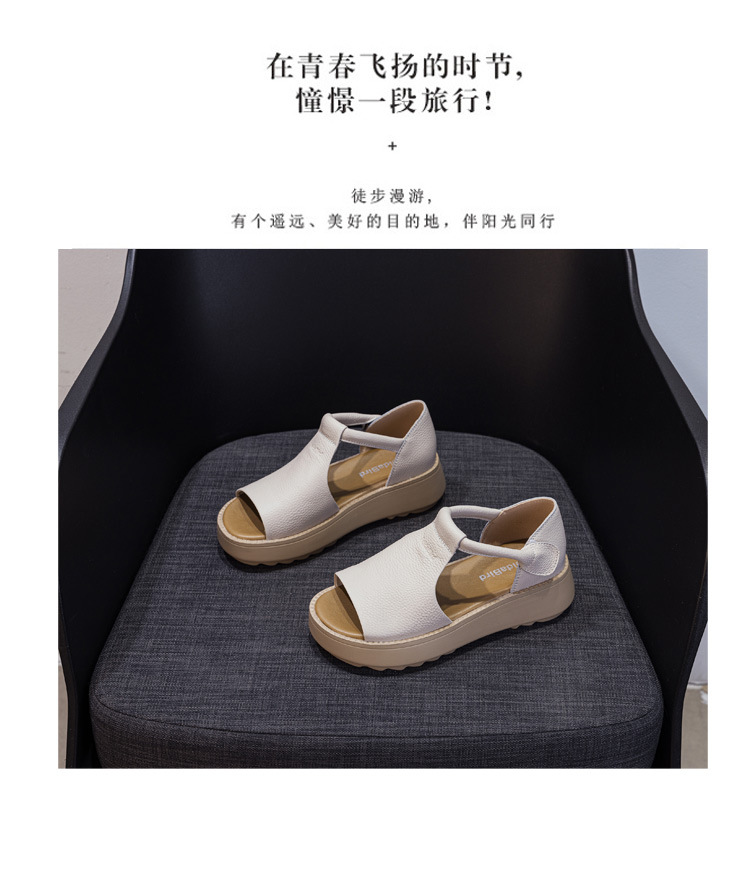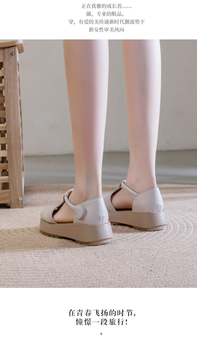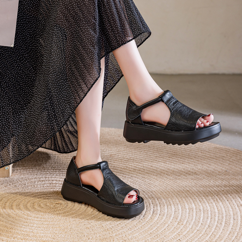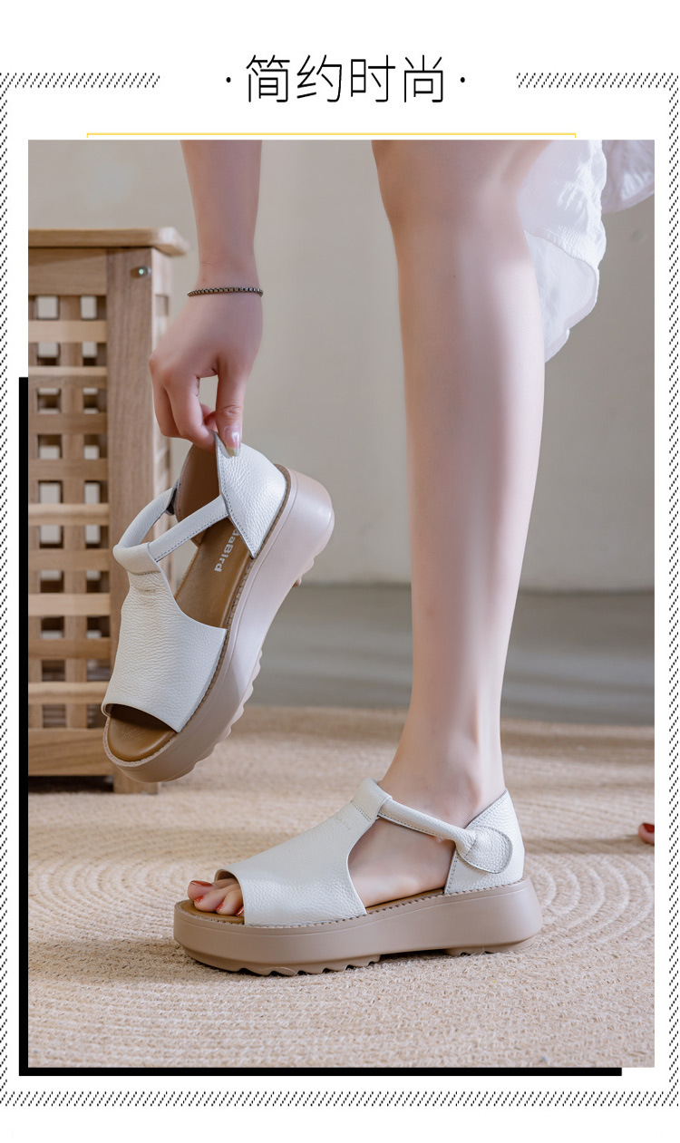 여성용 1층 소가죽 샌들 2026년 여름 신상 레트로 스타일 두꺼운 밑창 가벼운 웨이브토 가죽 키높이 샌들 아웃도어용