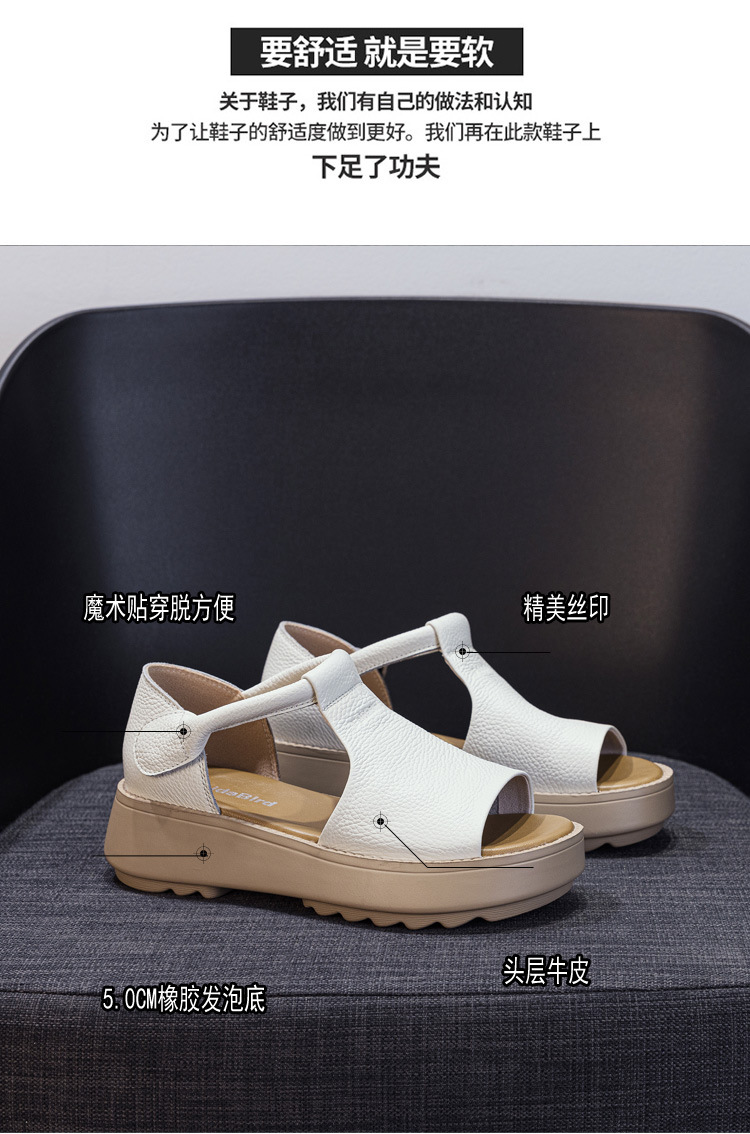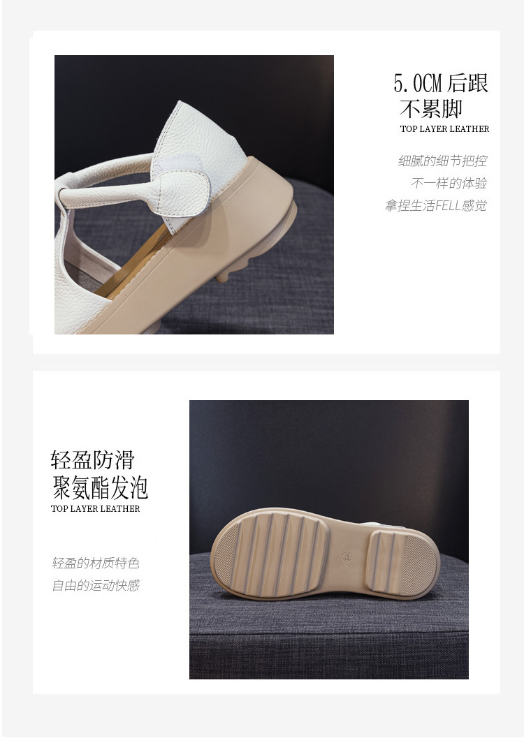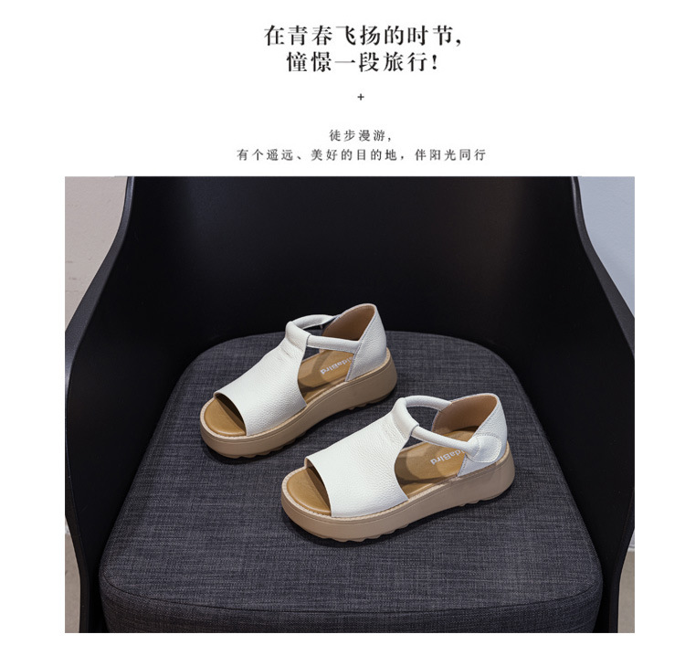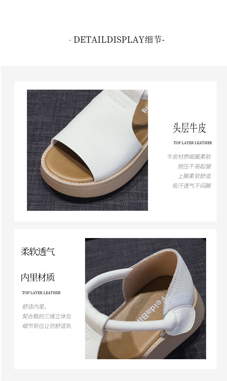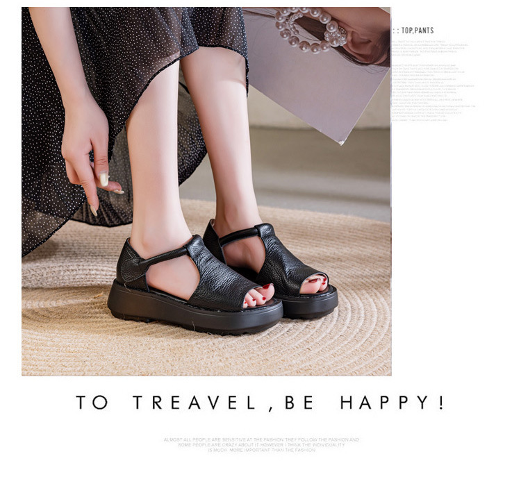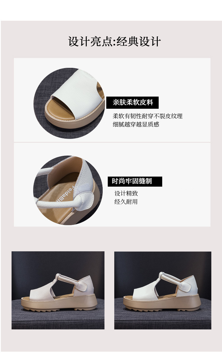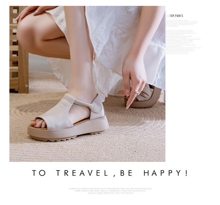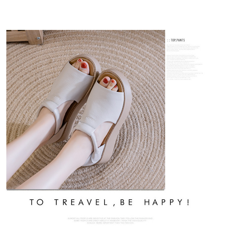 여성용 1층 소가죽 샌들 2026년 여름 신상 레트로 스타일 두꺼운 밑창 가벼운 웨이브토 가죽 키높이 샌들 아웃도어용