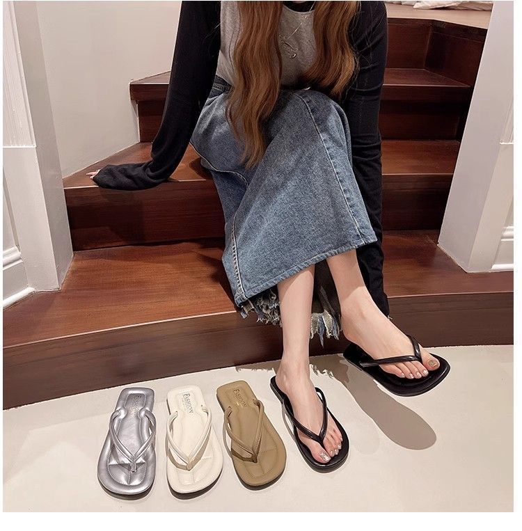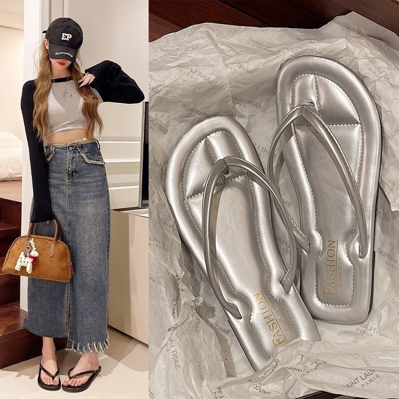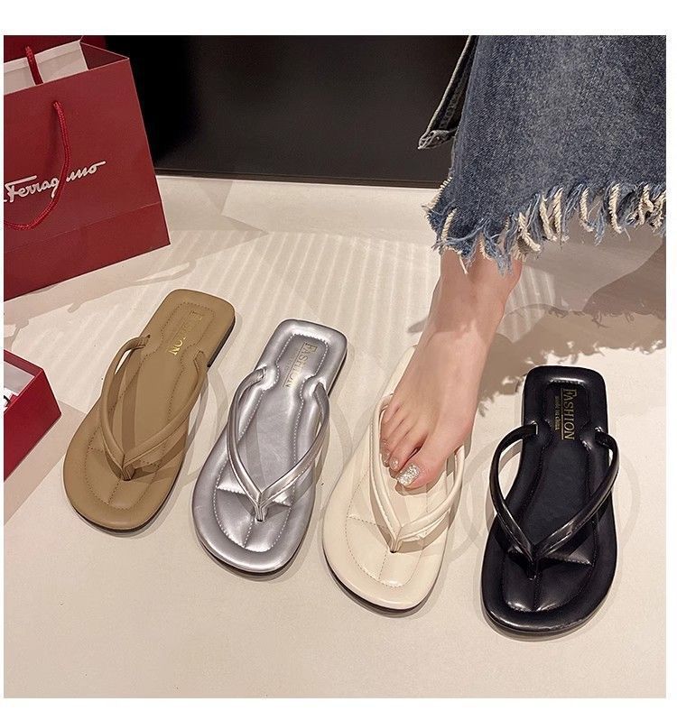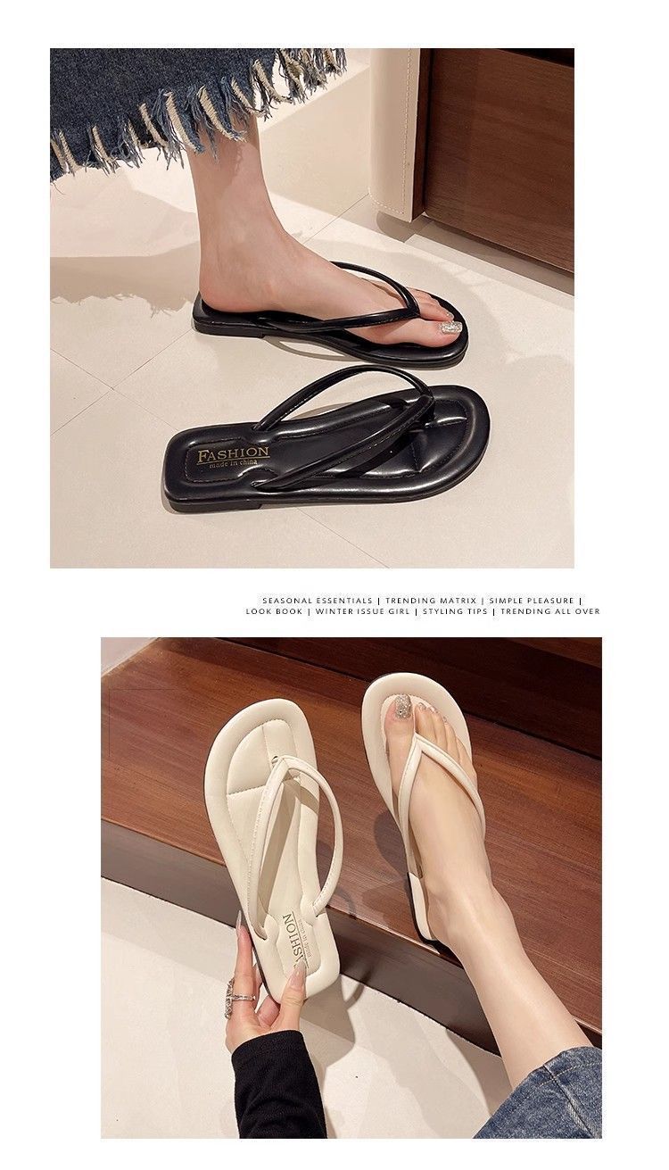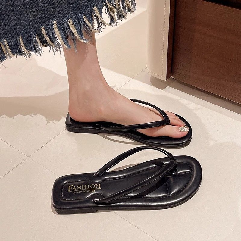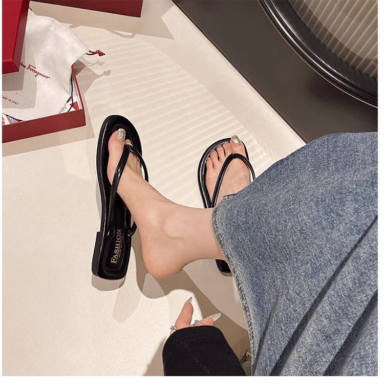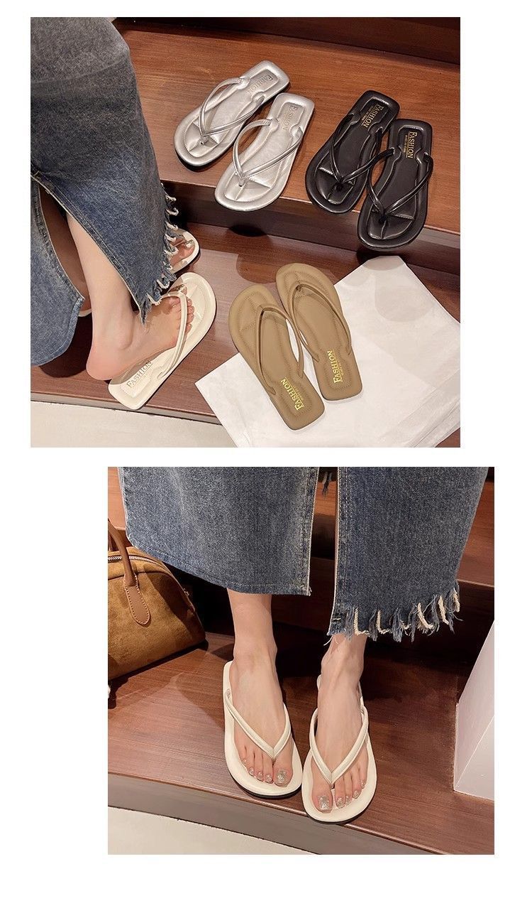 플립 플롭 여성 여름 야외 착용 패션 2025 새로운 평면 하단 클립 발가락 그물 빨간색 샌들 비치 슈즈