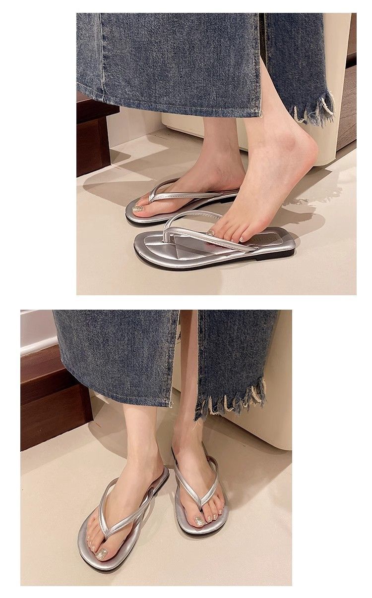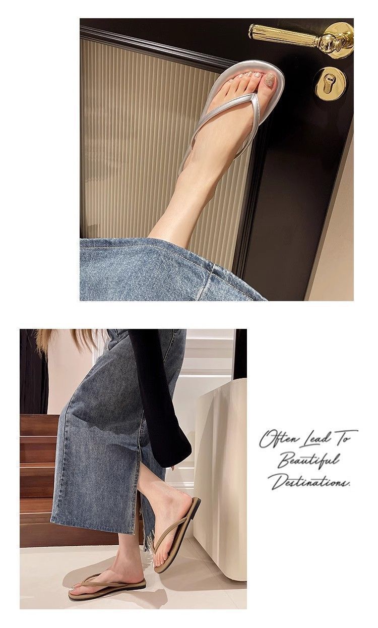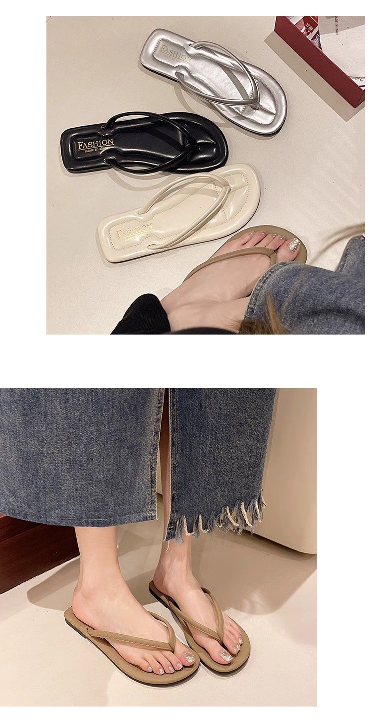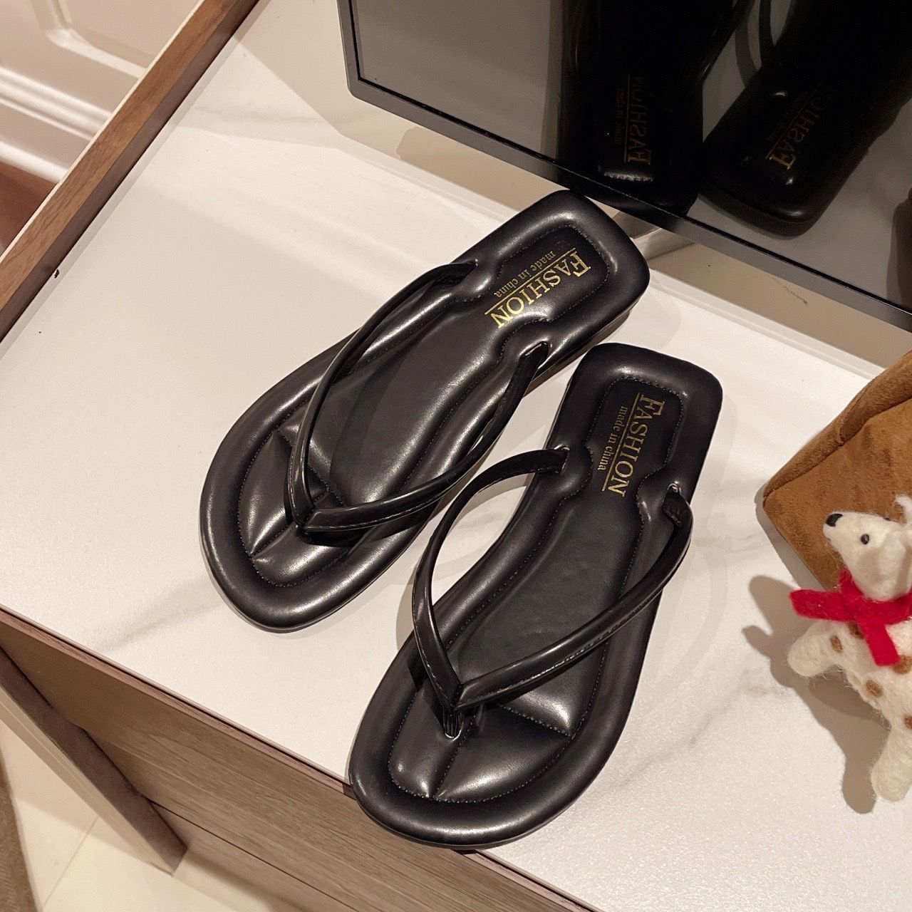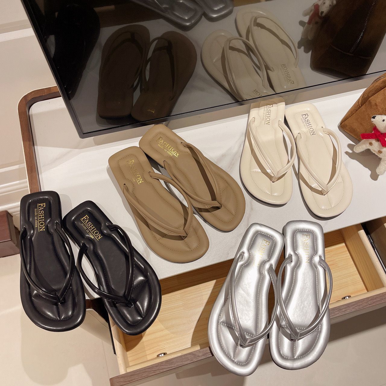 플립 플롭 여성 여름 야외 착용 패션 2025 새로운 평면 하단 클립 발가락 그물 빨간색 샌들 비치 슈즈