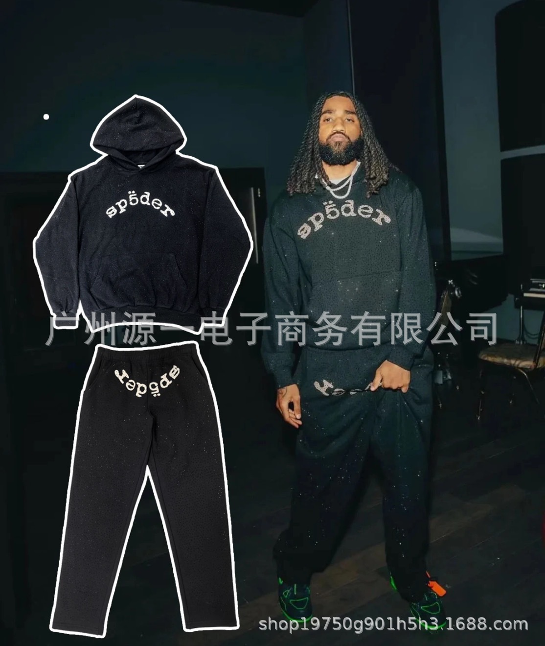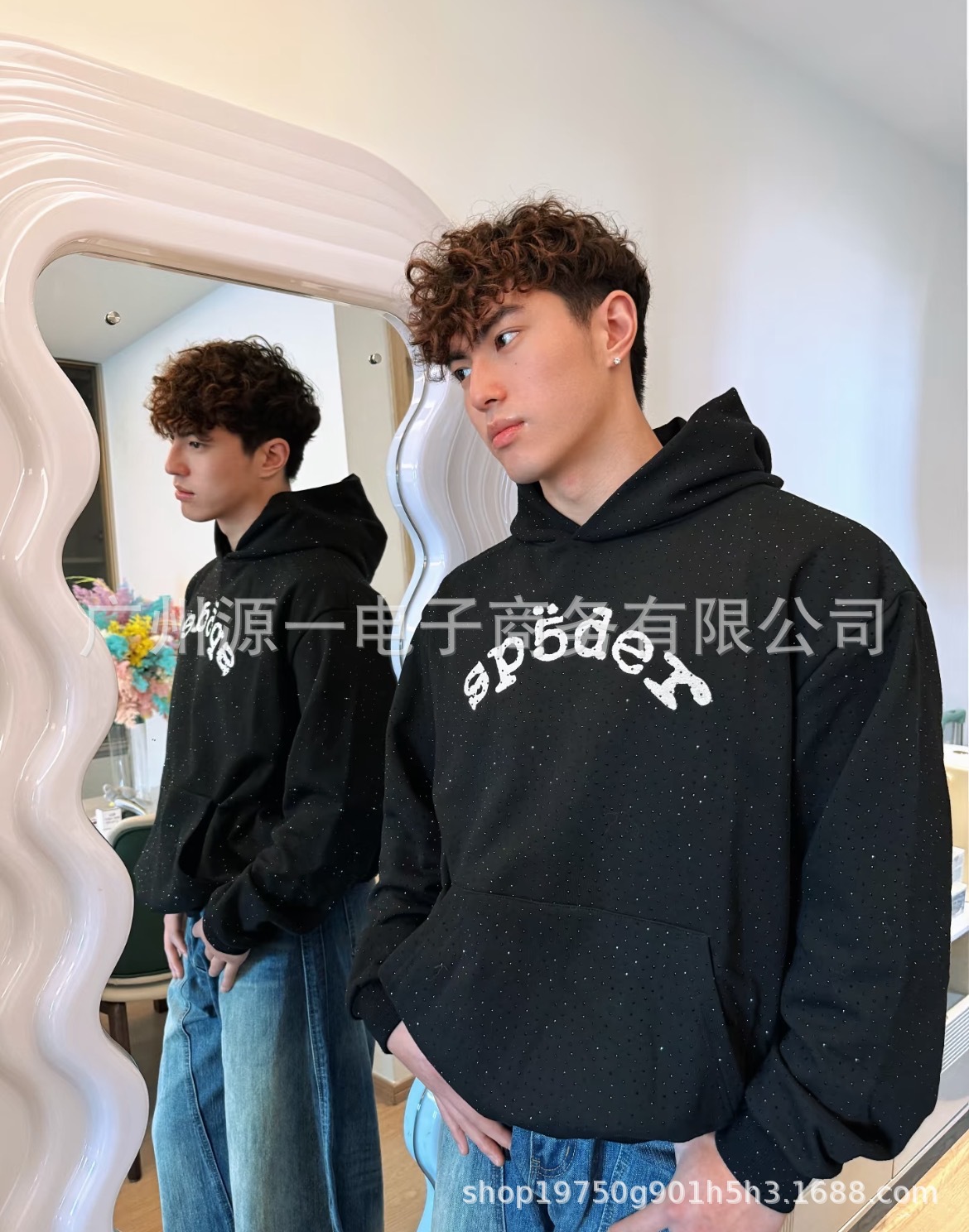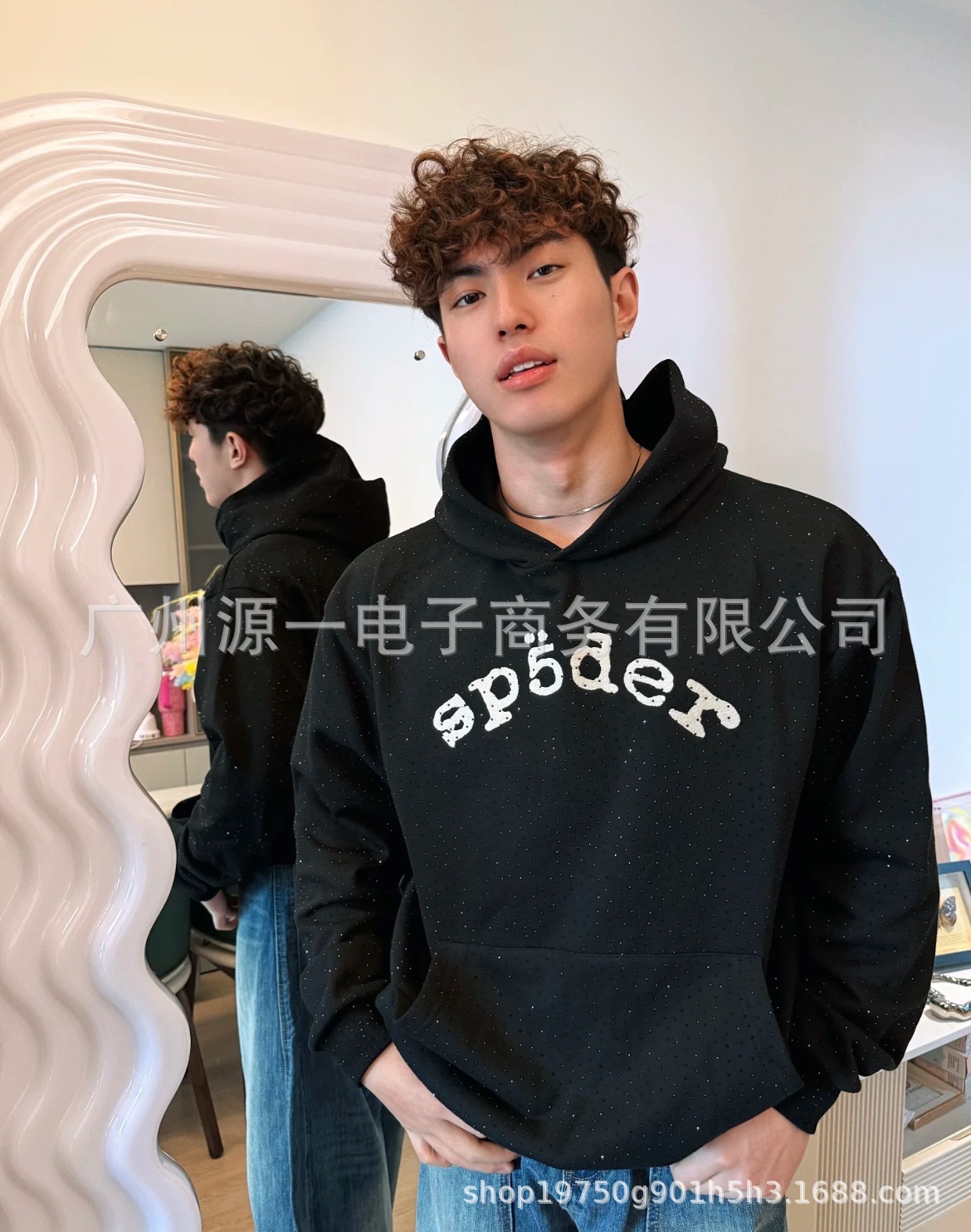 남성용 Sp5der 핫픽스 555 트렌디 420G 후드티 플리스 스웨트셔츠 남성용 오버사이즈