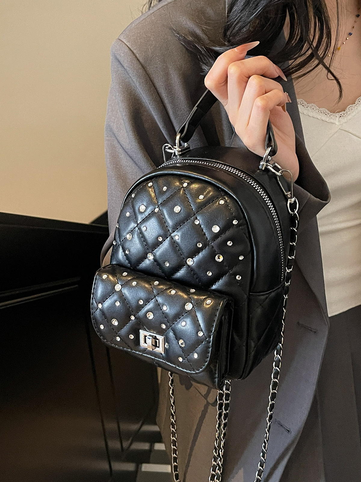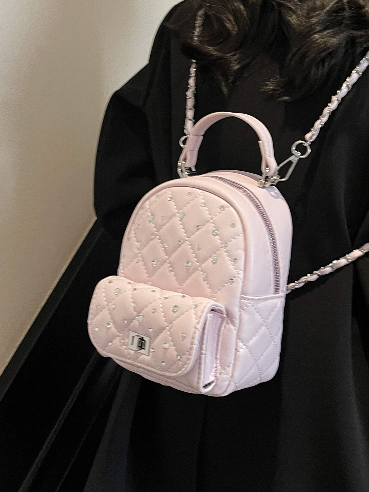 샤오샹풍 여성 백팩 2026 여름 신상 트렌디 패션 다이아몬드 체인백 다용도 여행용 미니 백팩